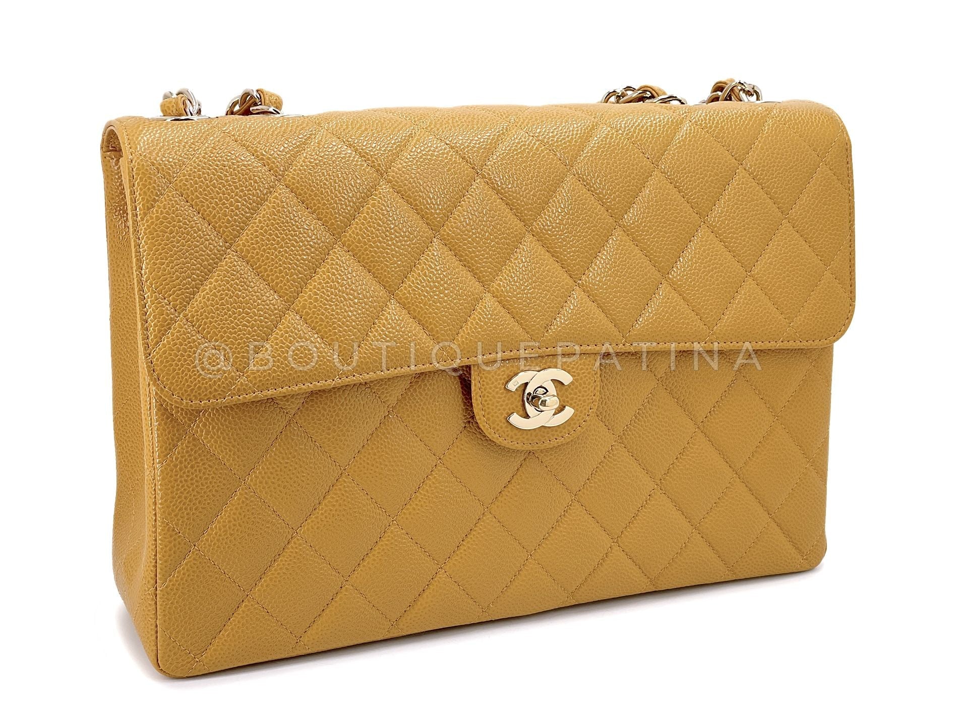 Chanel Beige Caviar Jumbo Flap Bag 2002 Vintage Classic 24k GHW JP8