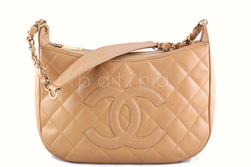 Lightweight Beige caviar hobo shopper bag perfect for day or night, and in the luxurious yet classic quilted caviar that Chanel is known so famously for!