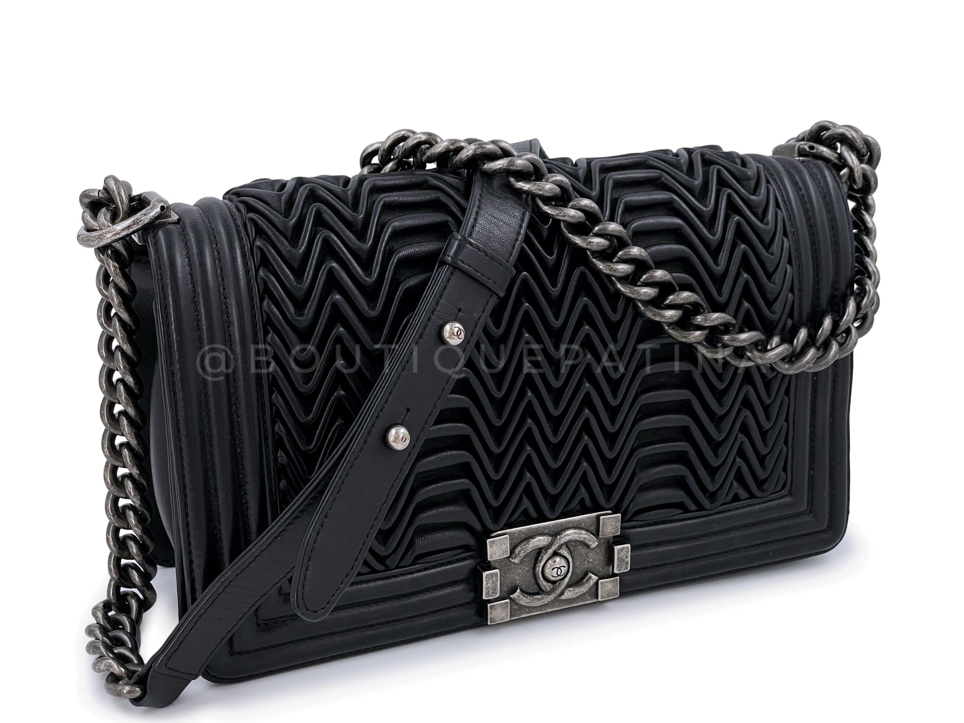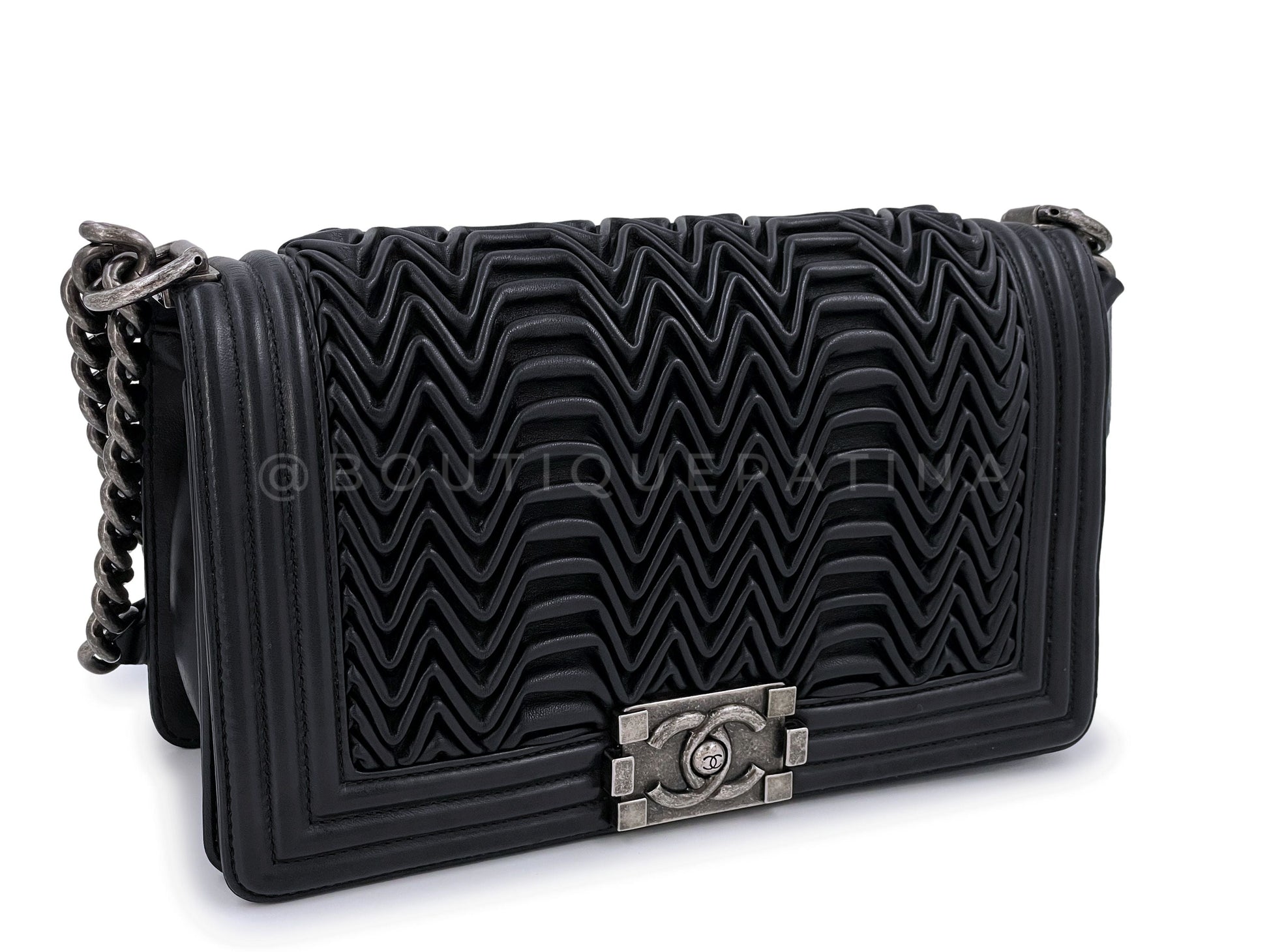 Chanel Black 3D Pleated Boy Flap Bag Medium Lambskin