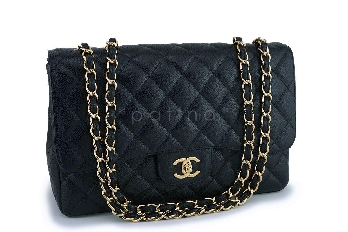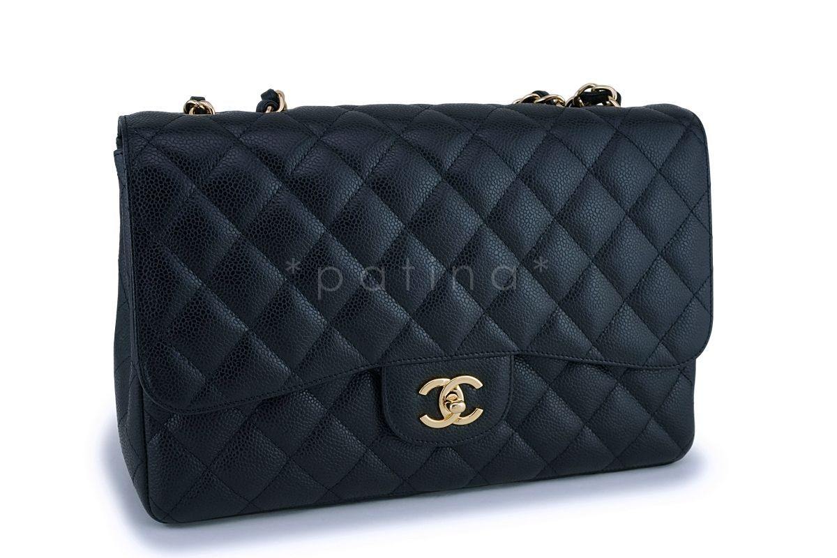 Chanel Black Caviar Classic Jumbo Flap Bag GHW