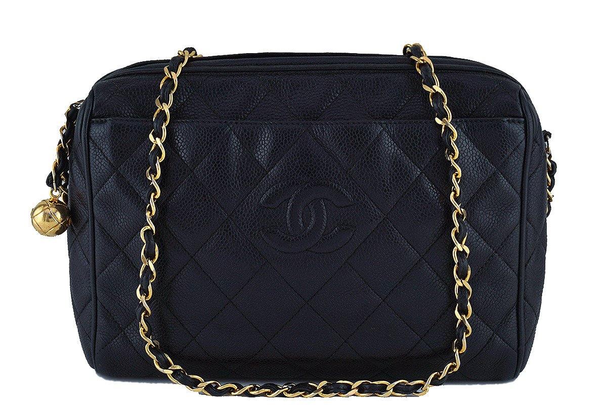 Chanel Vintage Black Caviar Classic Quilted Camera Case w Pocket Bag