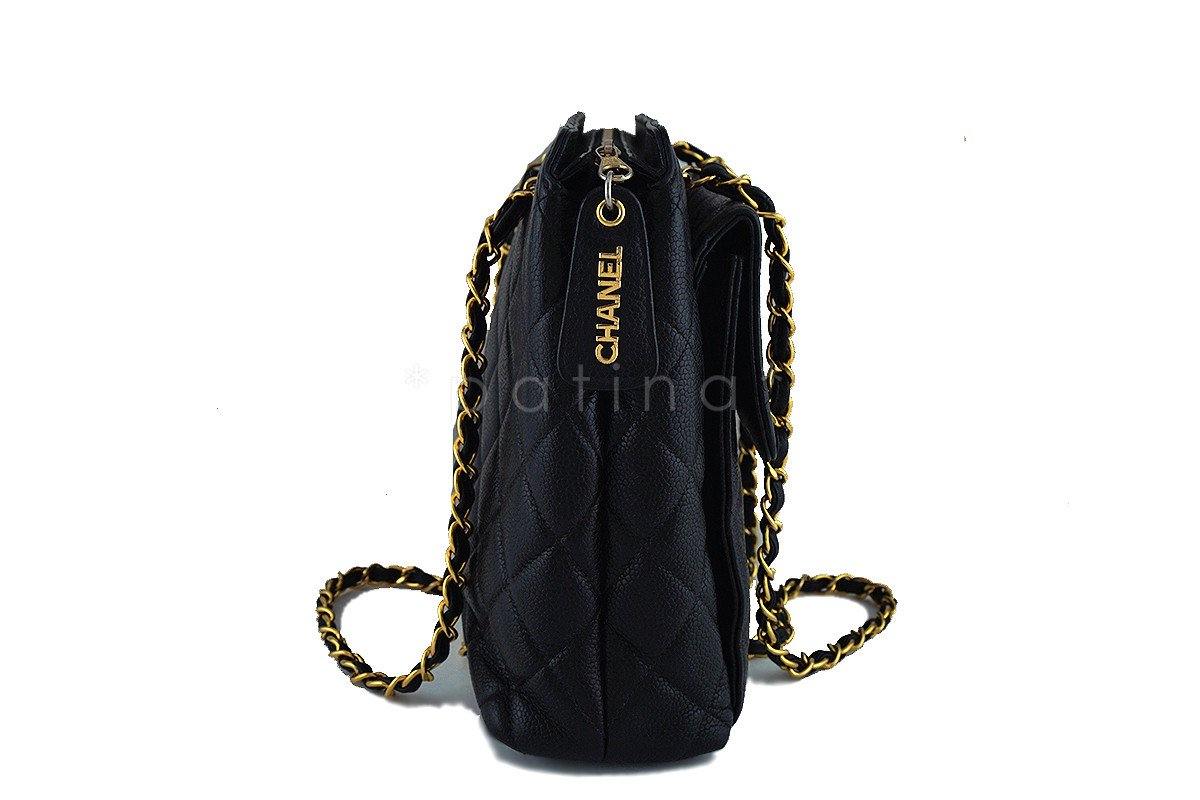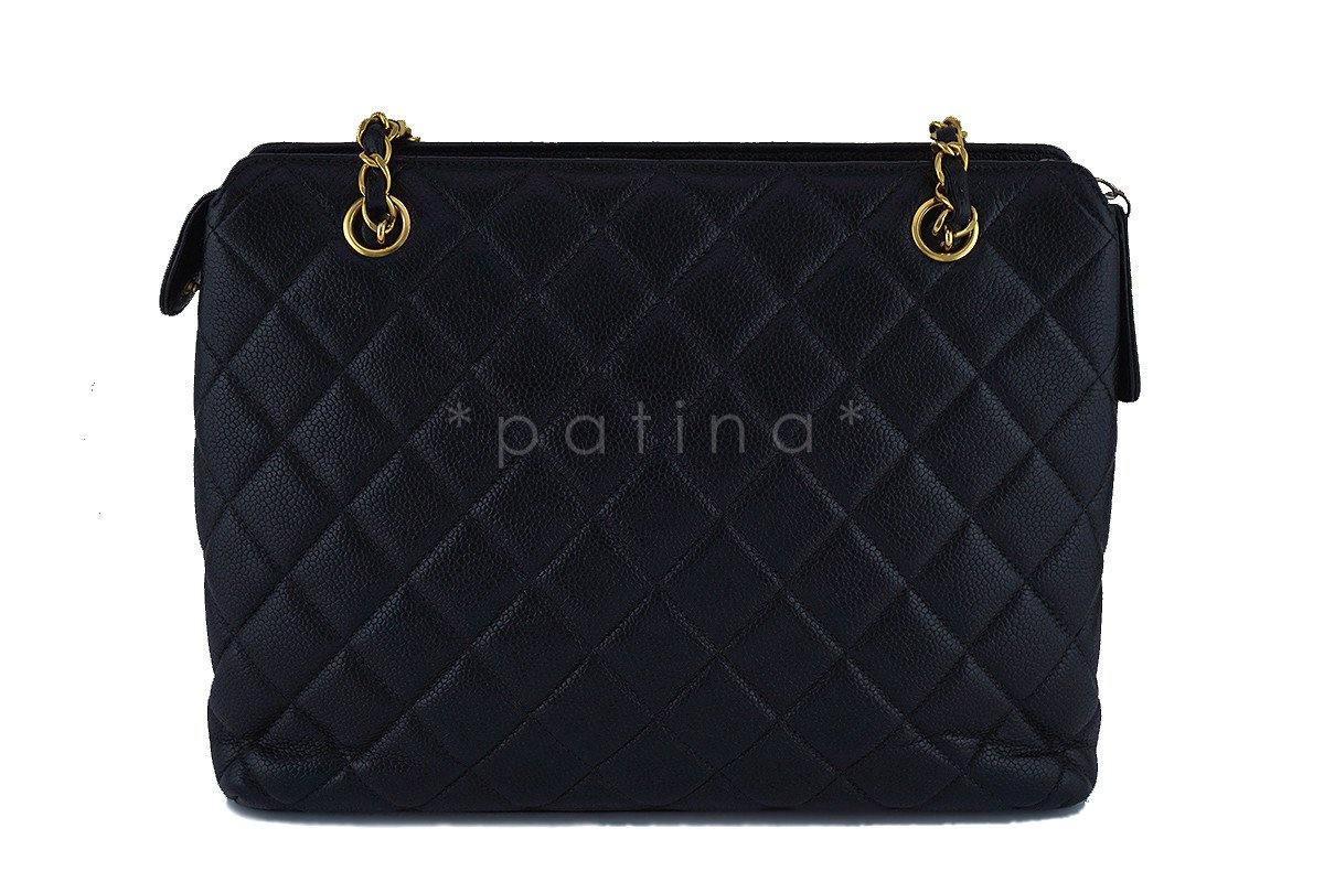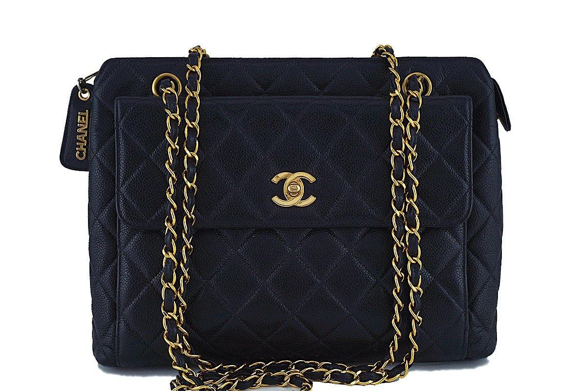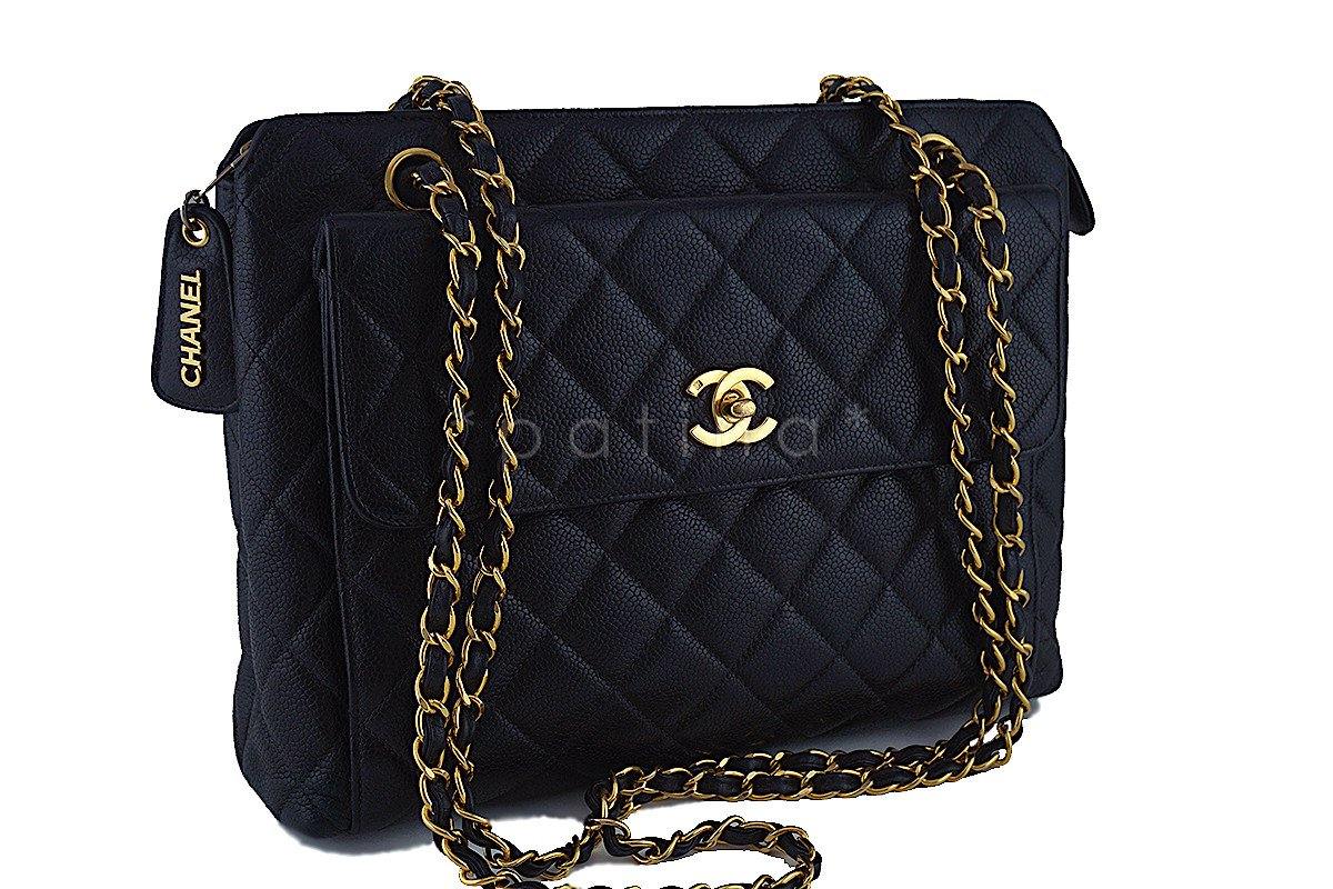 Chanel Black Caviar Classic Quilted Flap Shopper Tote Bag