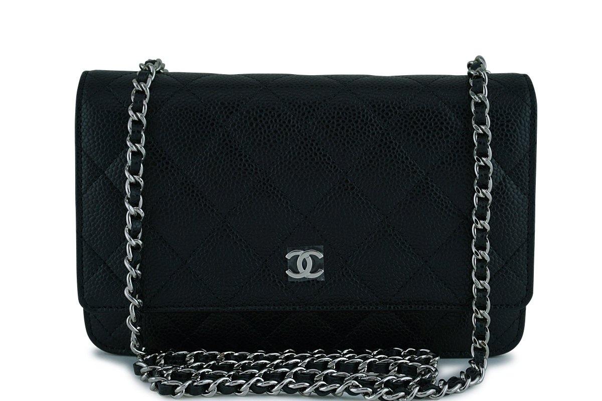 Chanel Black Caviar Classic Quilted WOC Wallet on Chain Flap Bag SHW