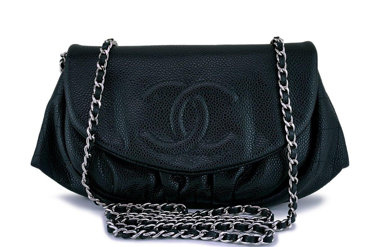 Chanel Black Caviar Half Moon WOC Wallet Chain Bag SHW