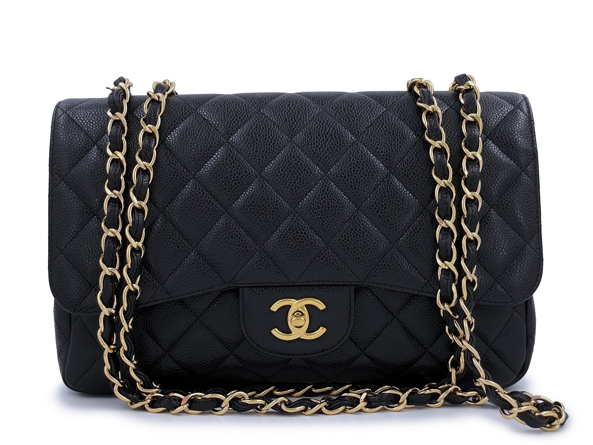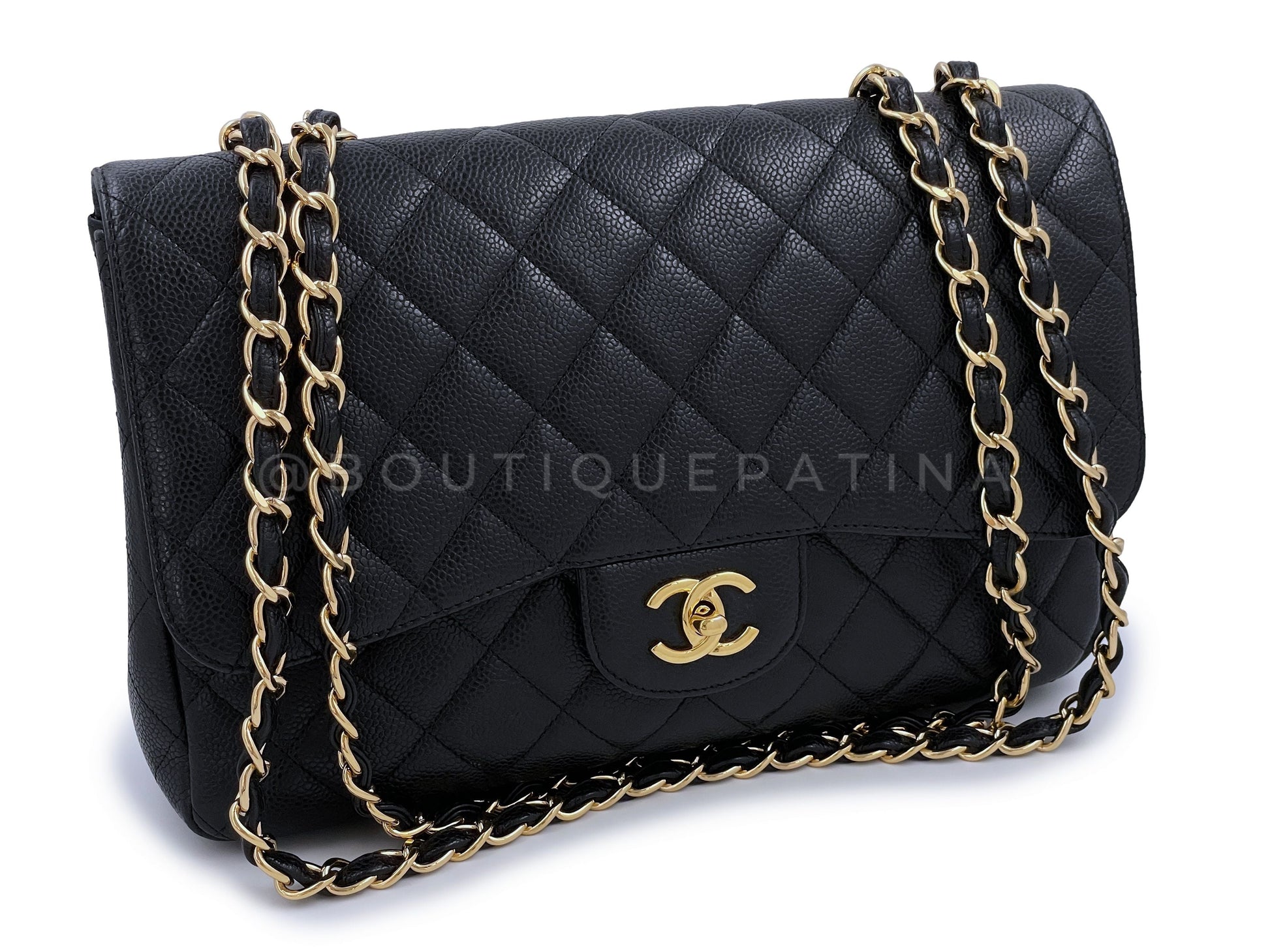 Chanel Black Caviar Jumbo Classic Flap Bag GHW Single