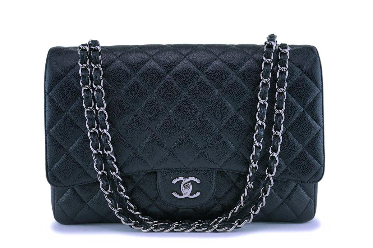 Chanel Black Caviar Maxi Classic Flap Bag SHW
