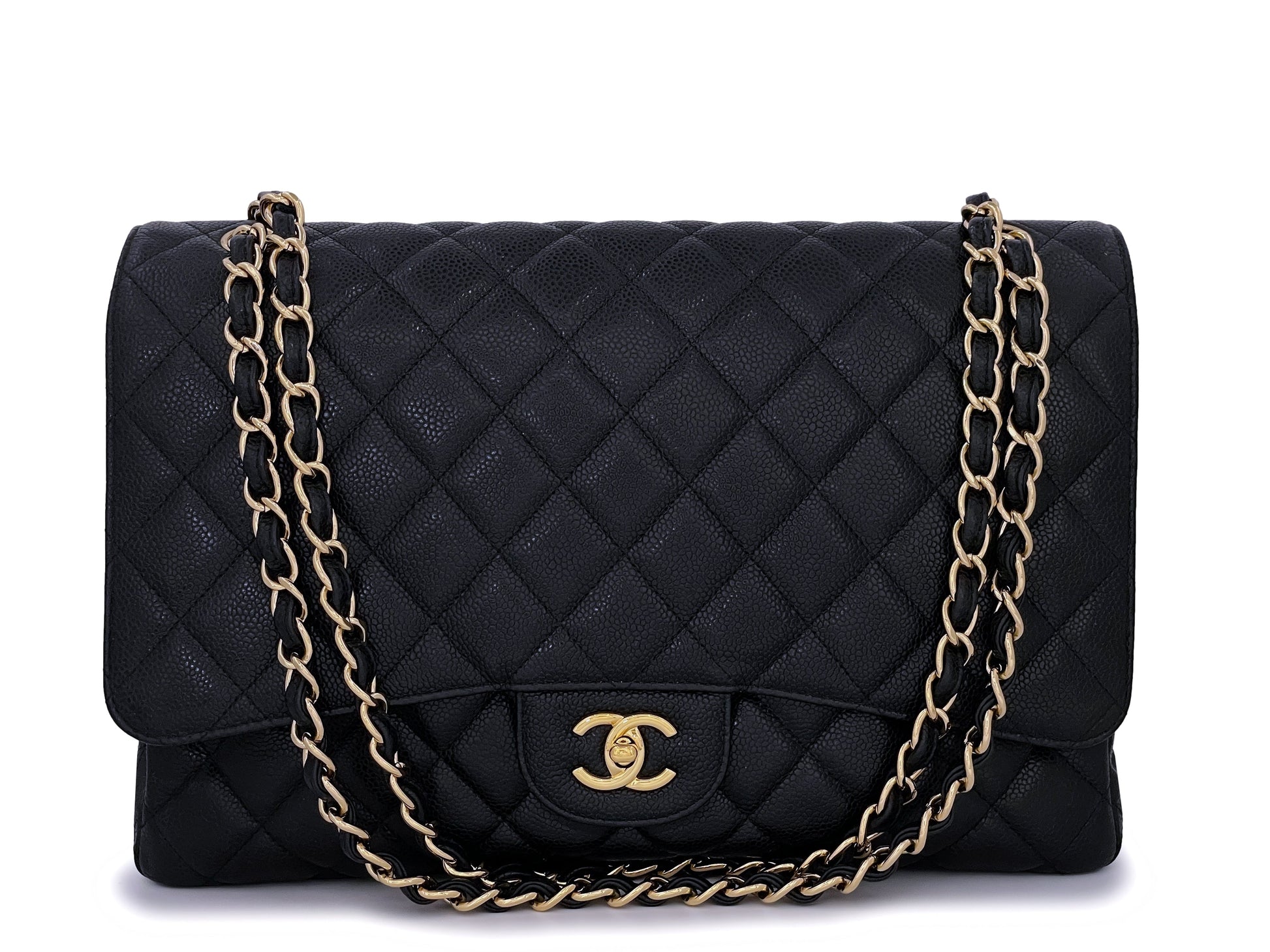 Chanel Black Caviar Maxi Classic Single Flap Bag GHW