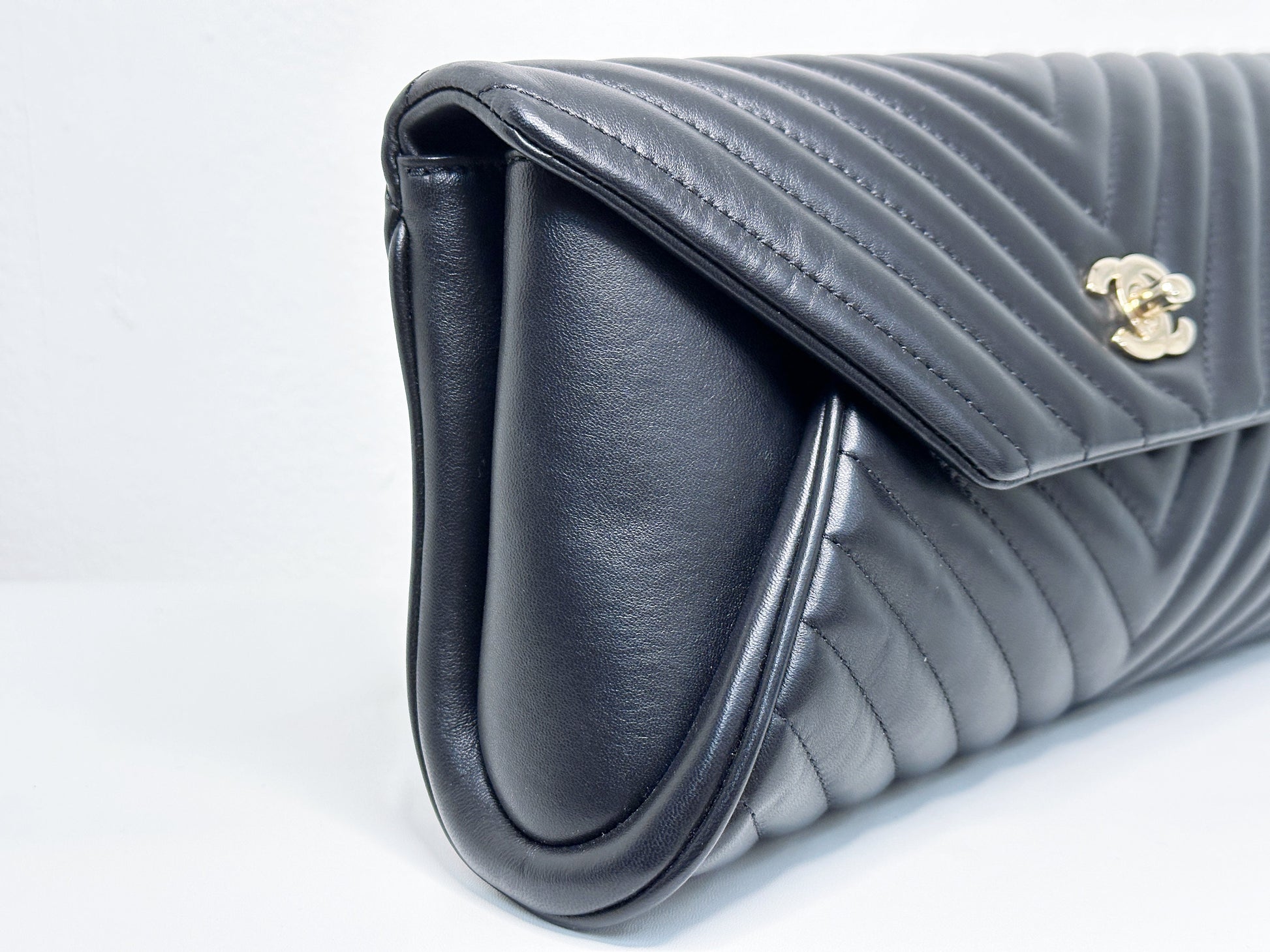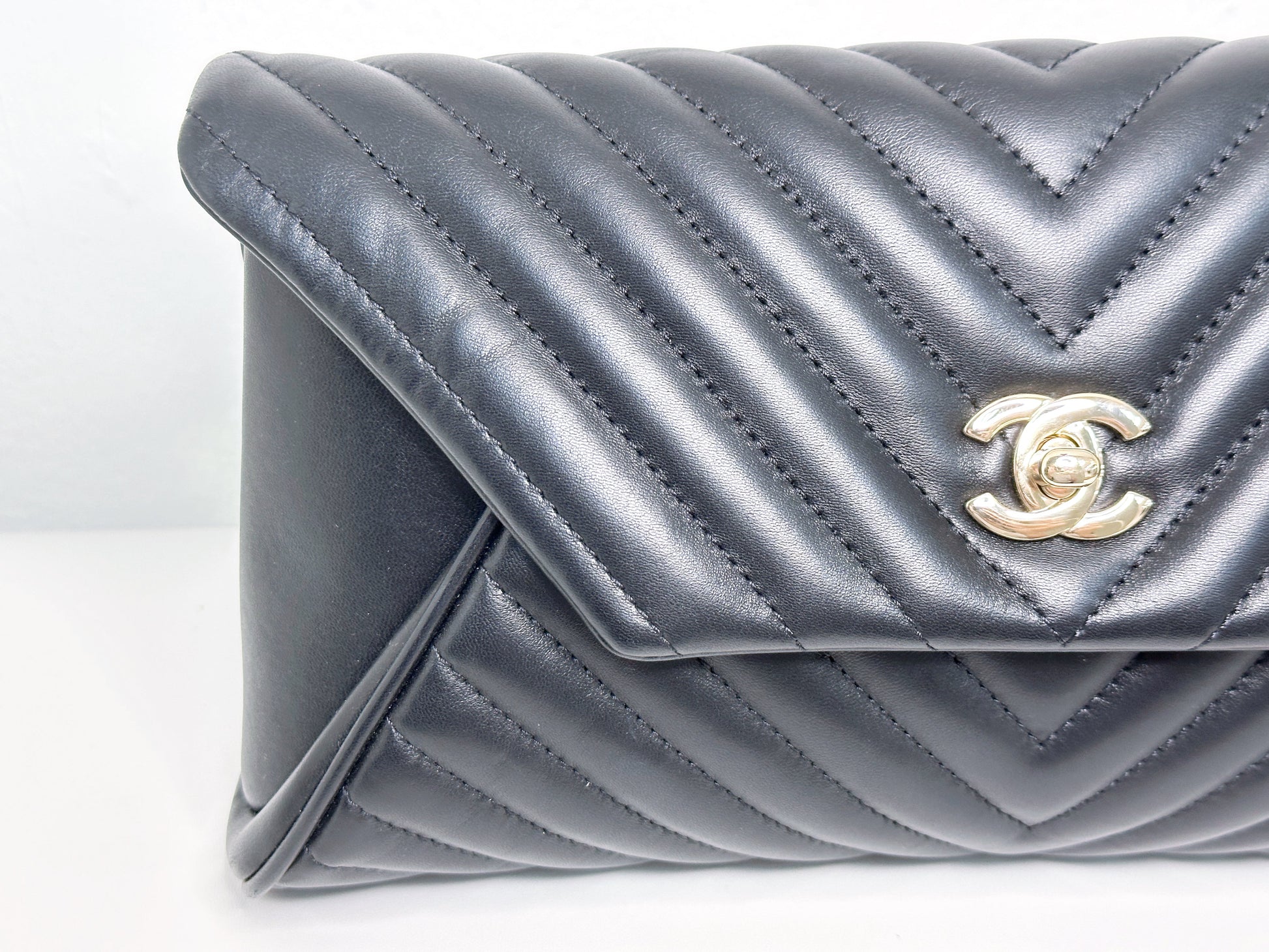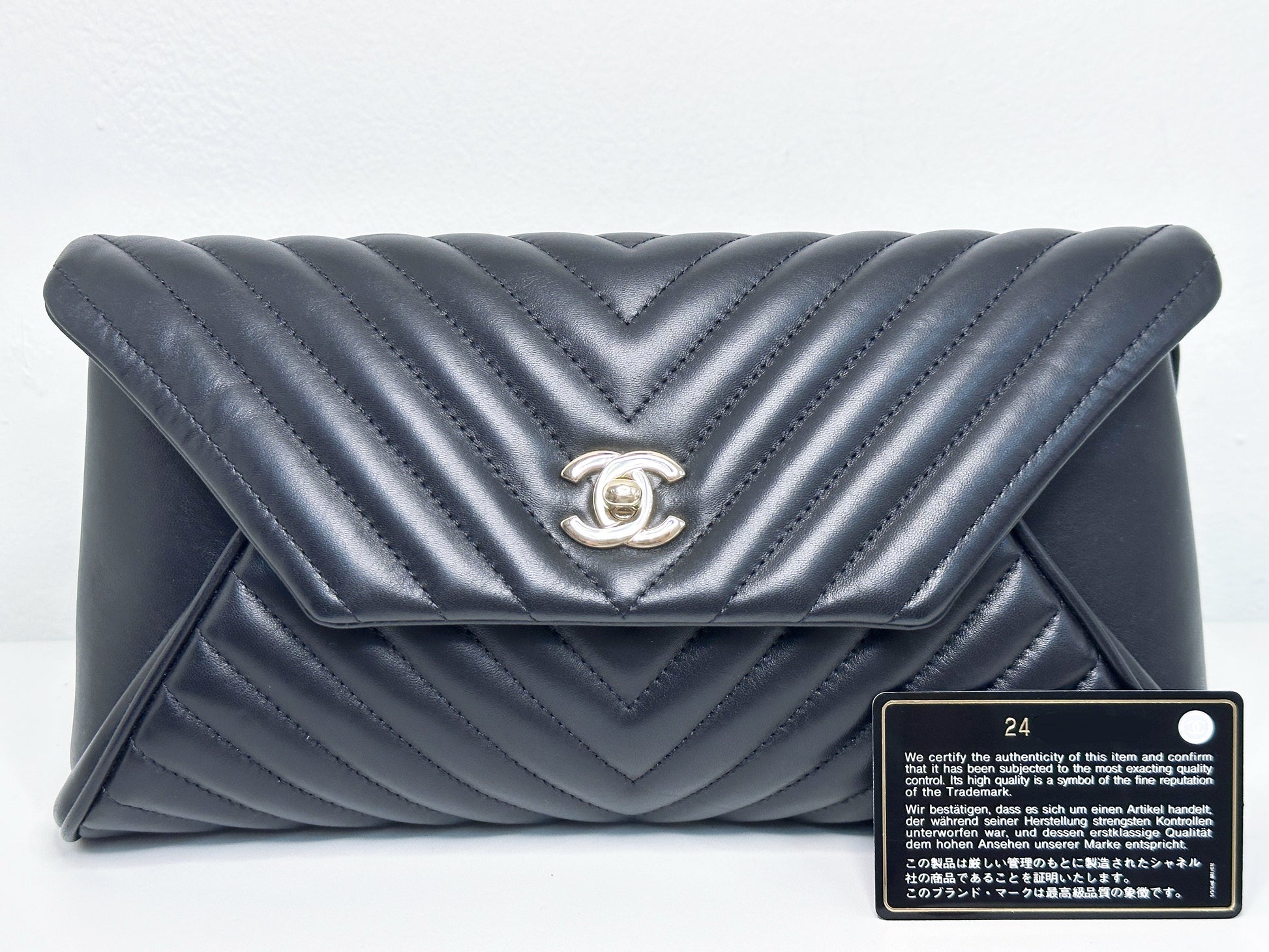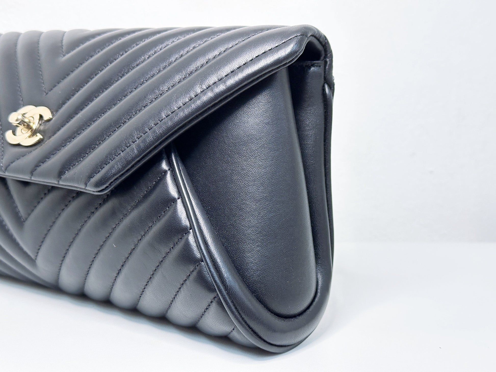 Chanel Black Chevron Lambskin Fold Up Again Clutch 2432 holo card