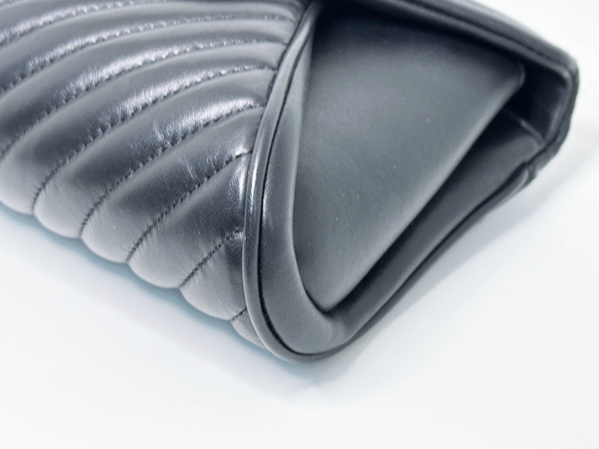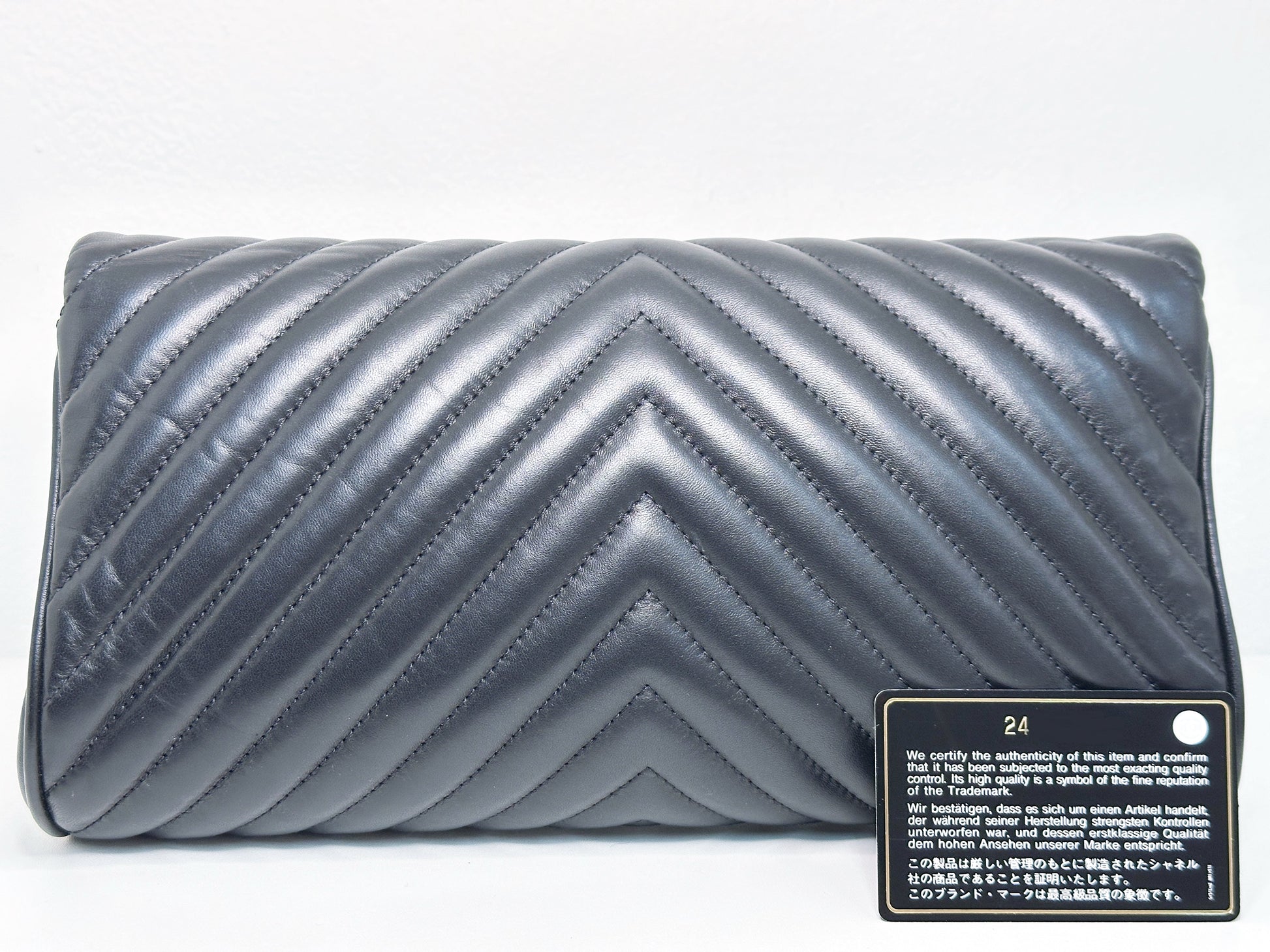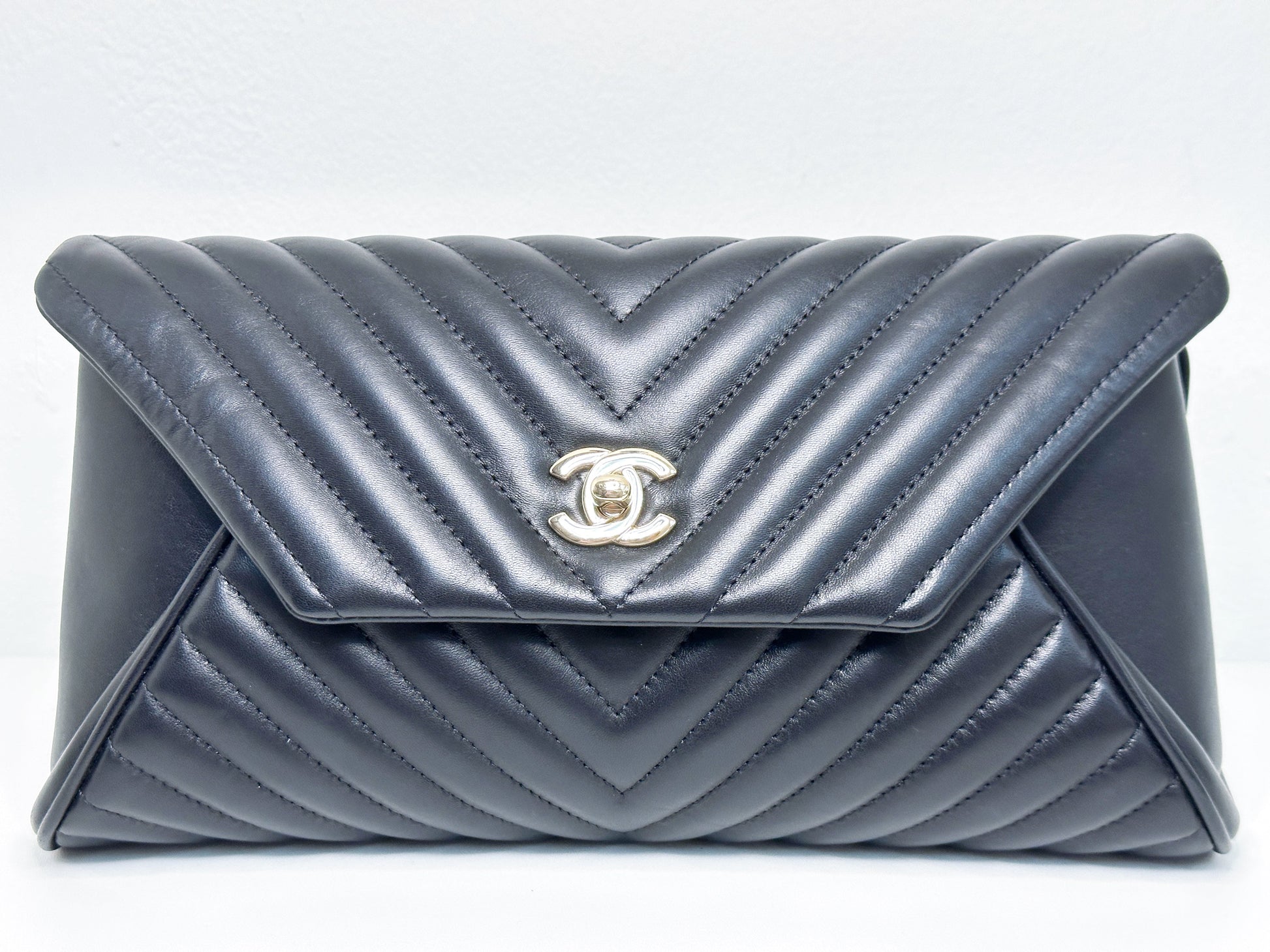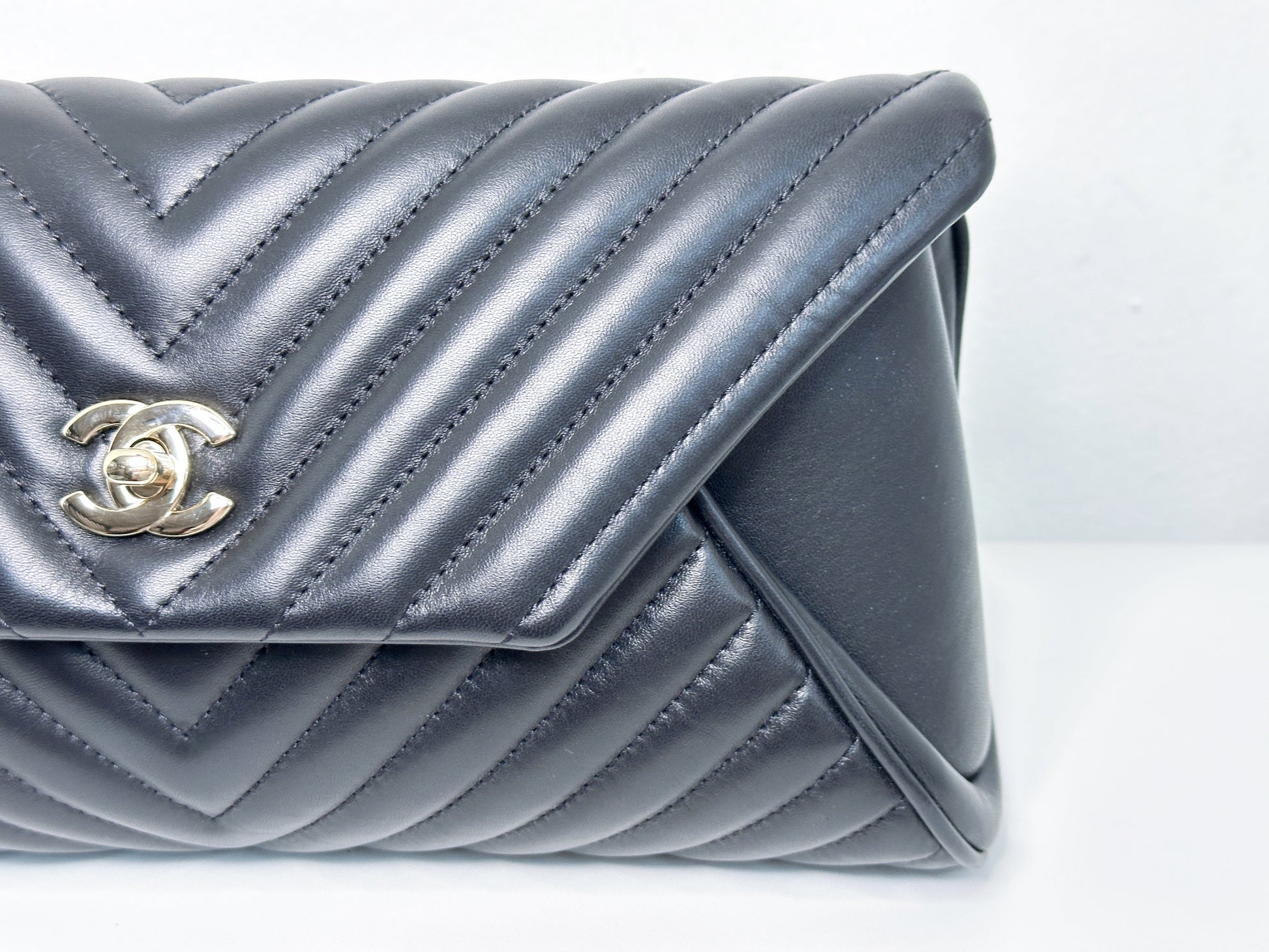 Chanel Black Chevron Lambskin Fold Up Again Clutch 2432 holo card