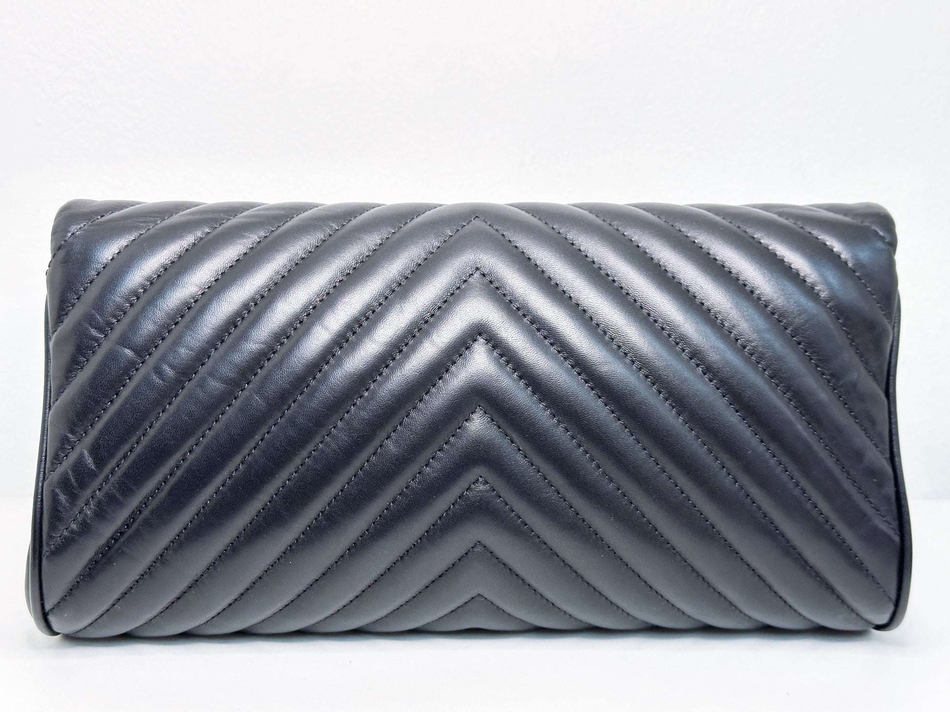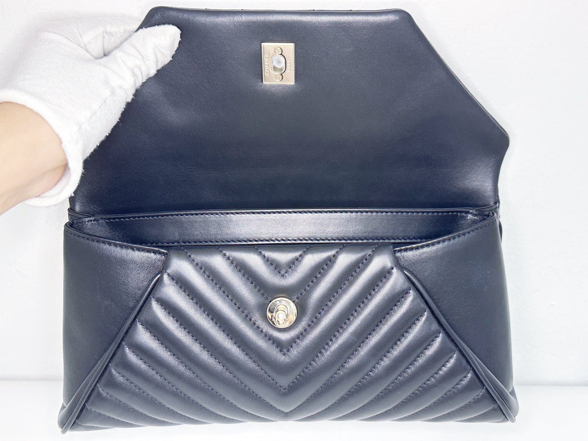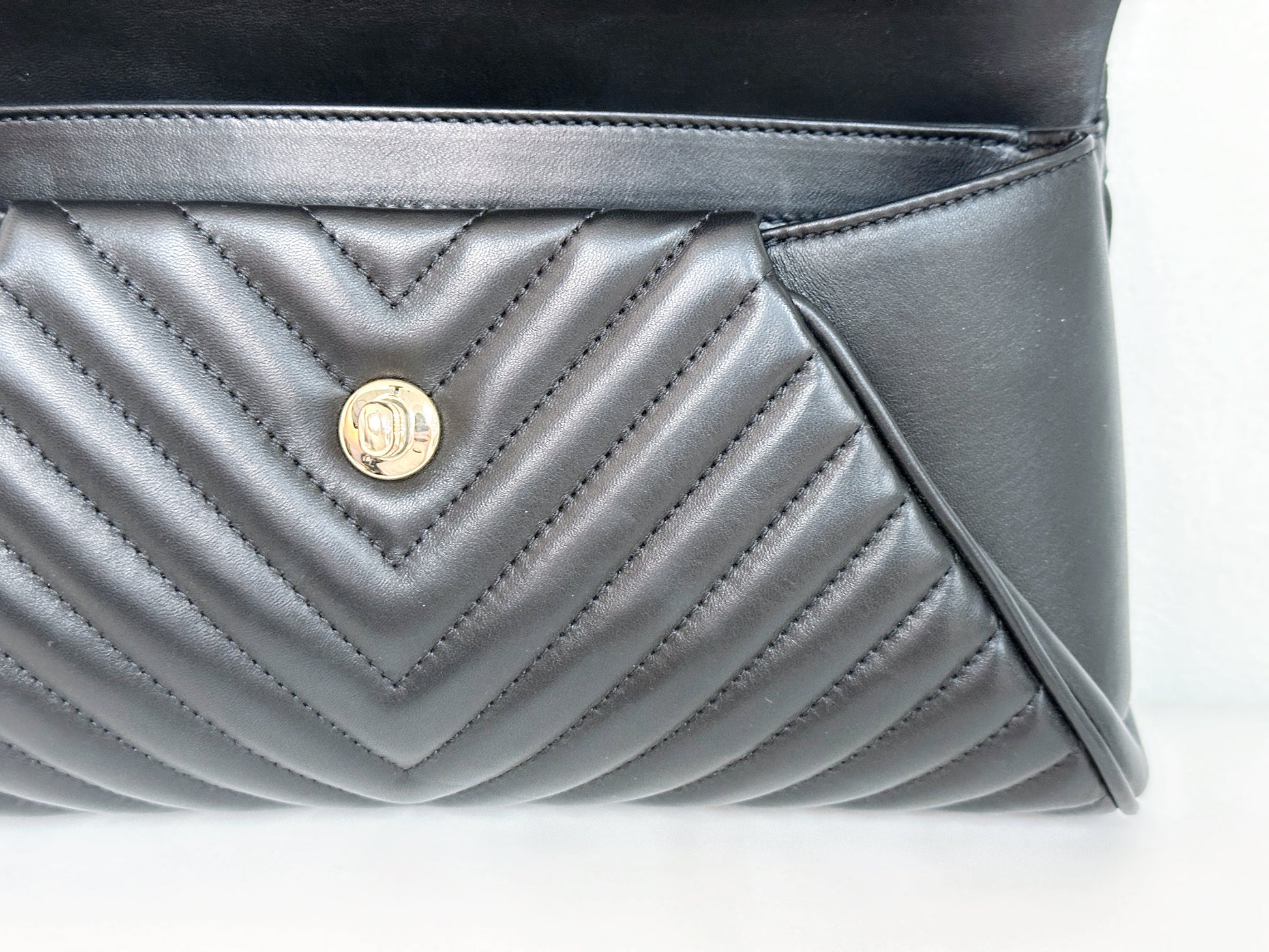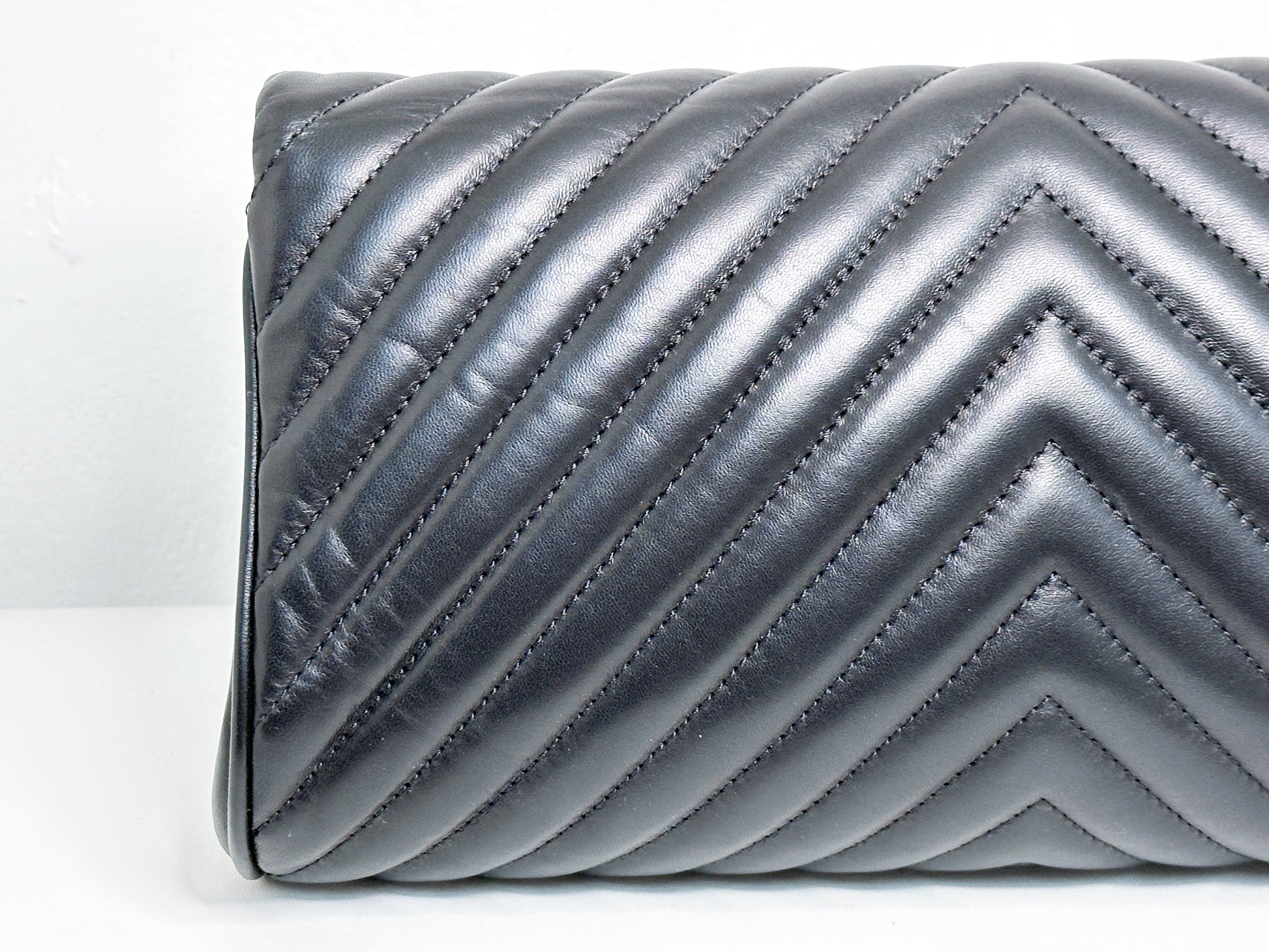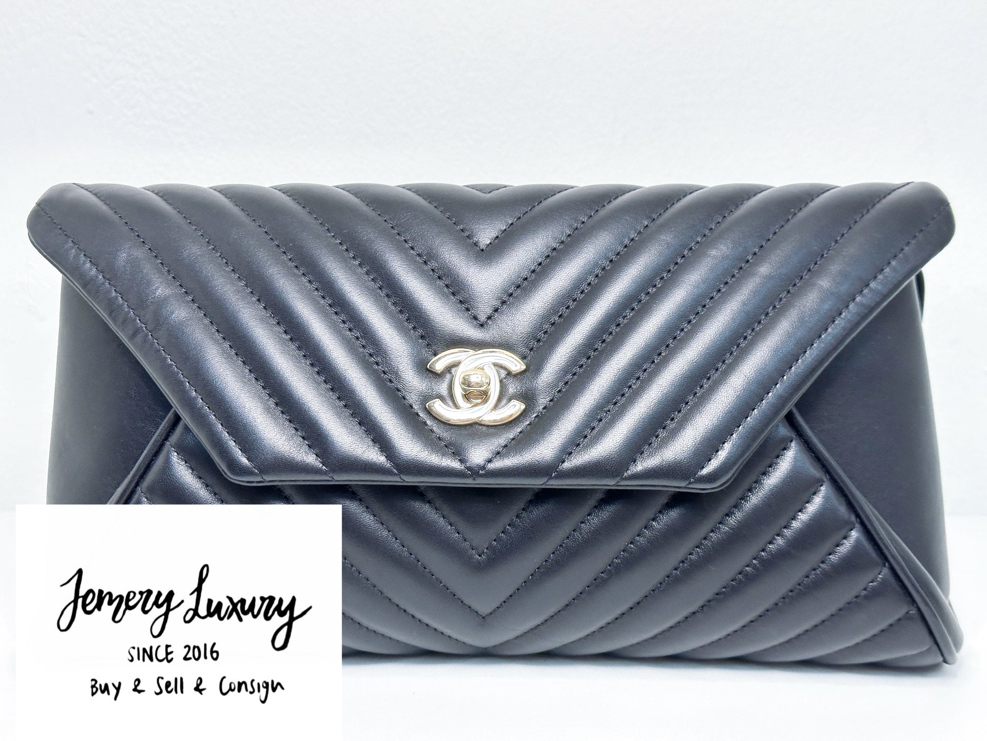 Chanel Black Chevron Lambskin Fold Up Again Clutch 2432 holo card