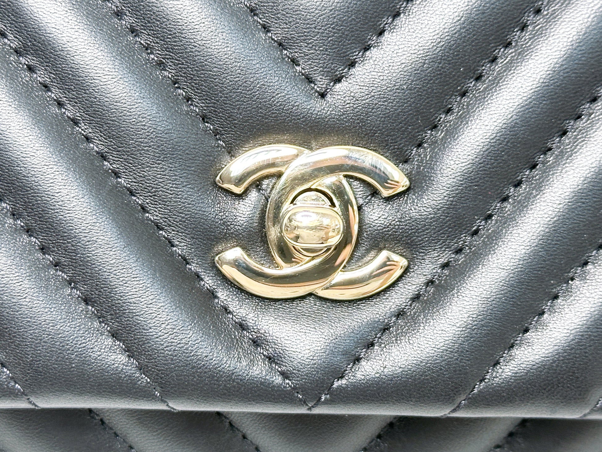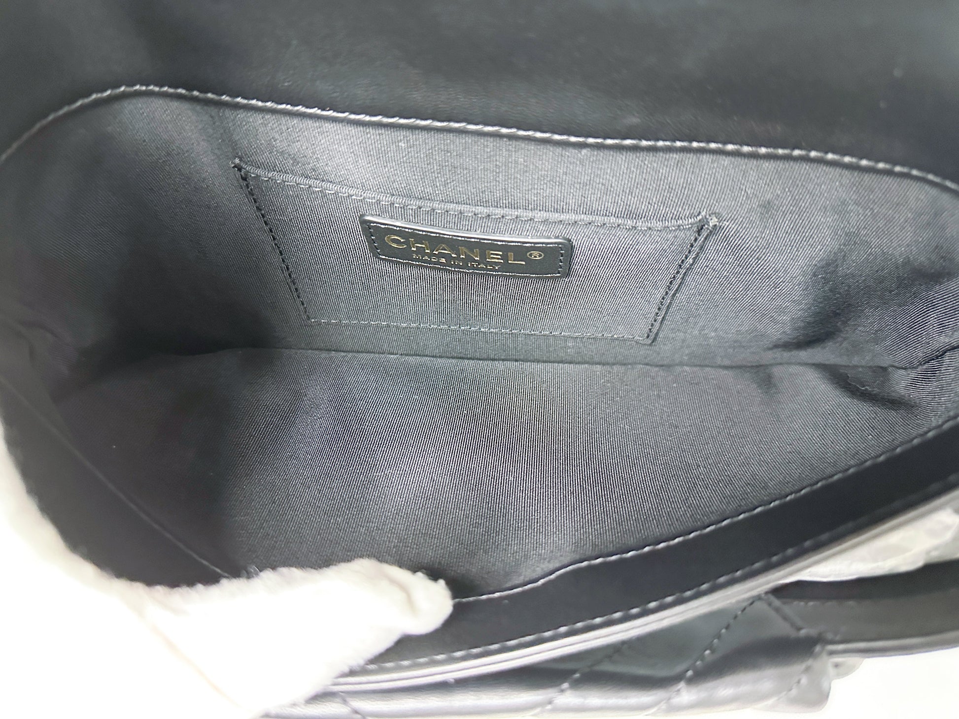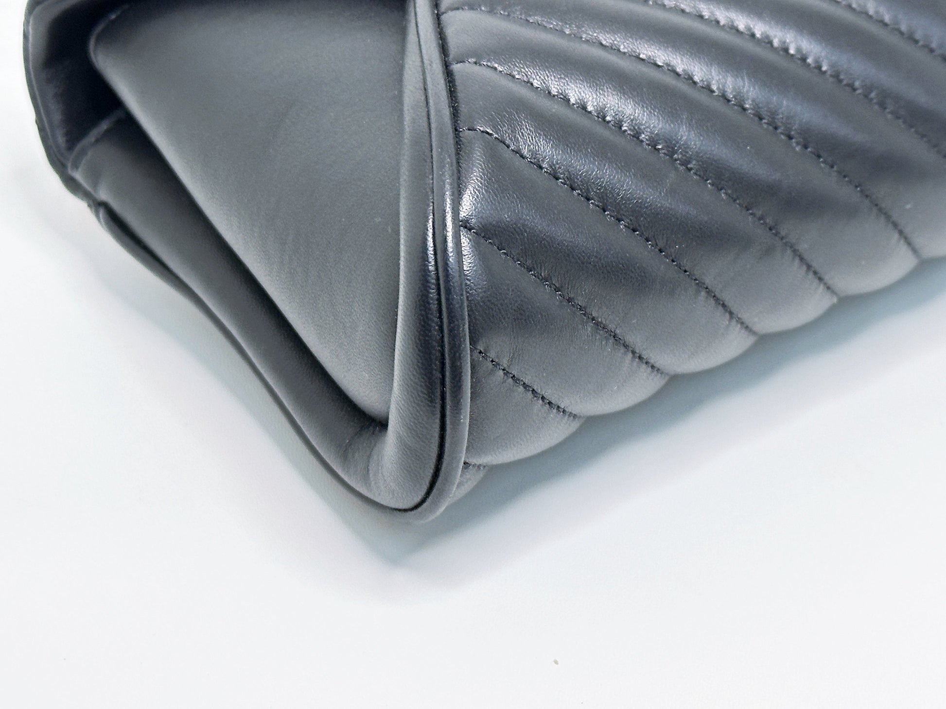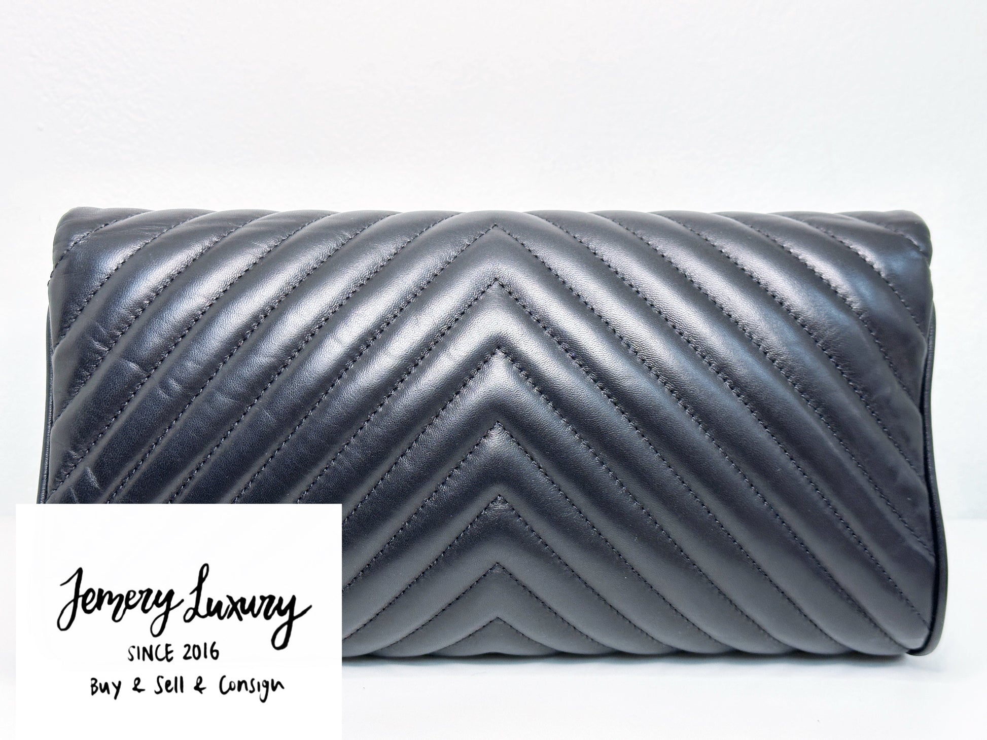 Chanel Black Chevron Lambskin Fold Up Again Clutch 2432 holo card