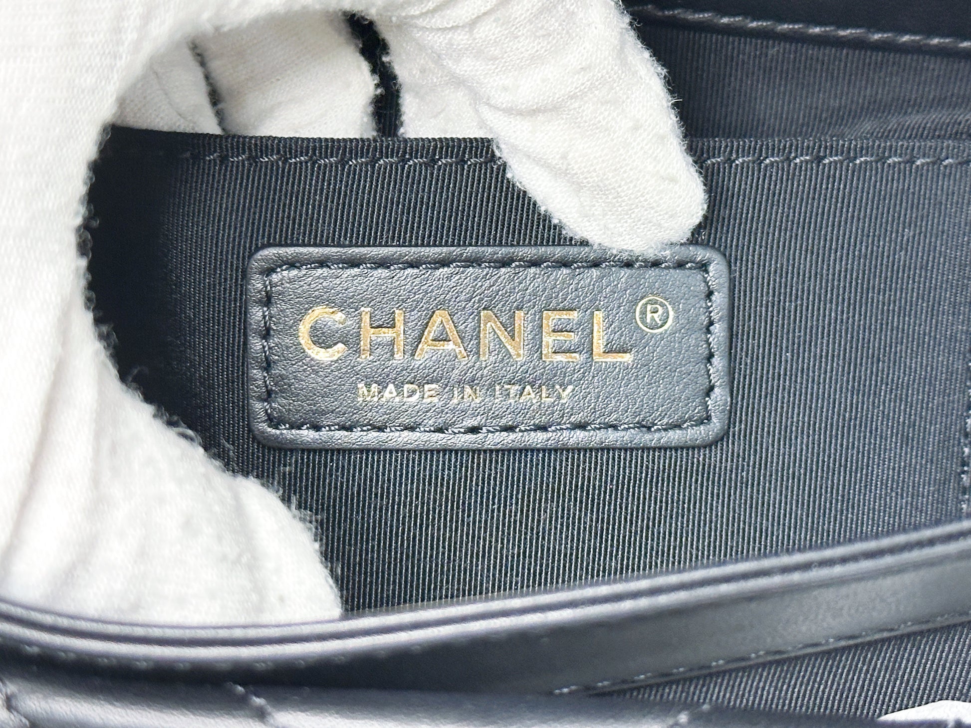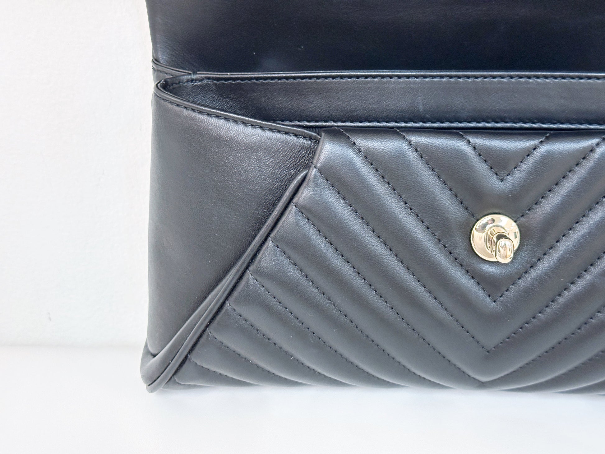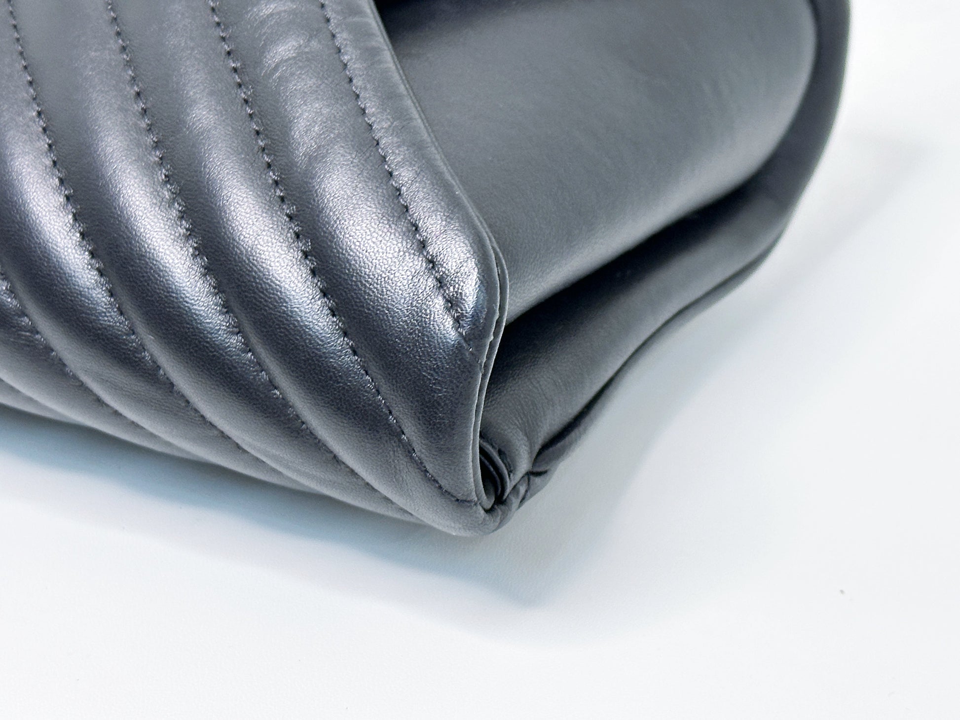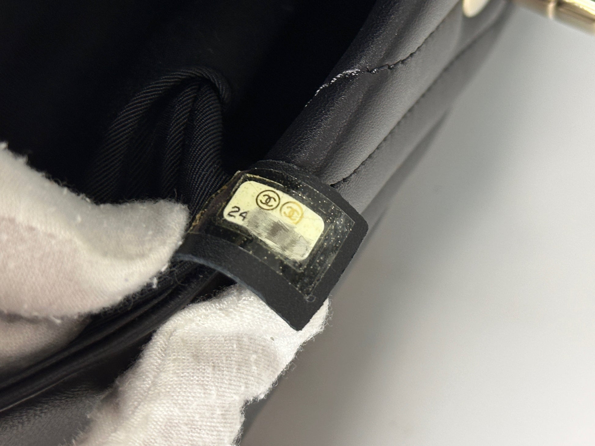 Chanel Black Chevron Lambskin Fold Up Again Clutch 2432 holo card