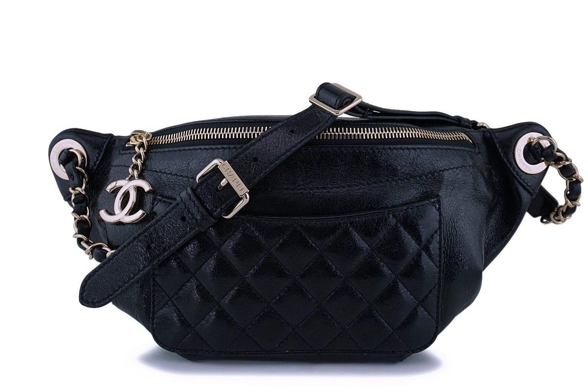 Chanel Black Glazed Calfskin "Pocket" Banane Fanny Pack Belt Bum Bag GHW