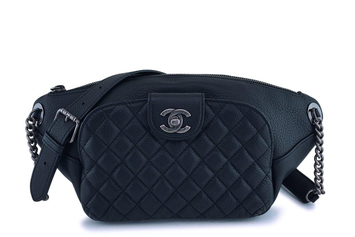 Chanel Black Grained Calfskin Quilted Classic Fanny Pack Bag RHW