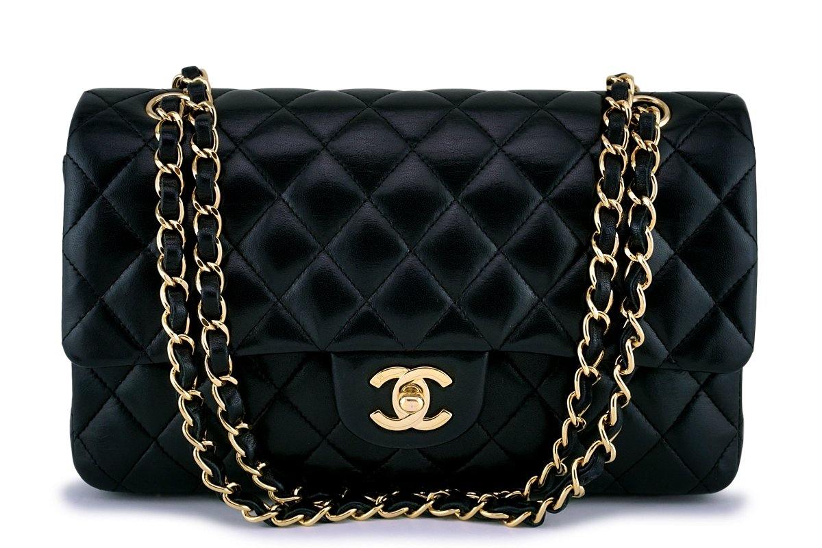 In black lambskin leather and 24k gold plated hardware. In lambskin leather, the original classic flap in all its glory with its petal soft quilts, true luxury.
