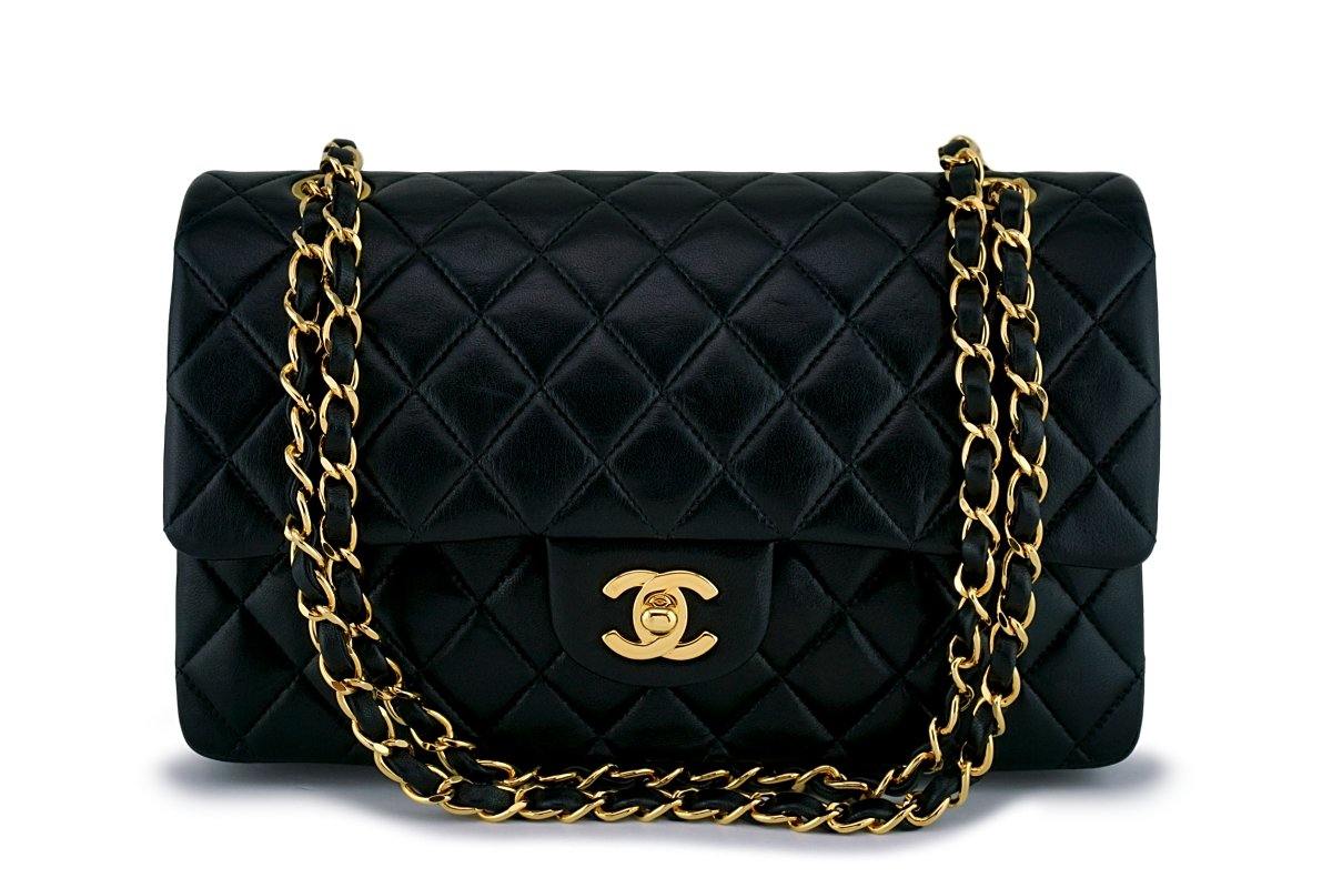 Chanel Black Lambskin Medium Classic Double Flap Bag 24k GHW