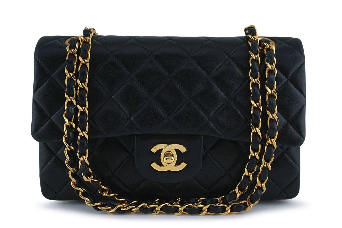 The classic 2.55 Chanel flap features a back pocket, and interior "double" flap with a compartment behind the flap, a zipper compartment on the side. The double woven signature Chanel chain can be worn as a single or double strap. This is the 9 inch classic small flap. It is identical to the medium double flap but for the fact that it is 1 inch shorter in width. Many prefer this size because it's right in between the medium and the mini, and is less susceptible to creasing.