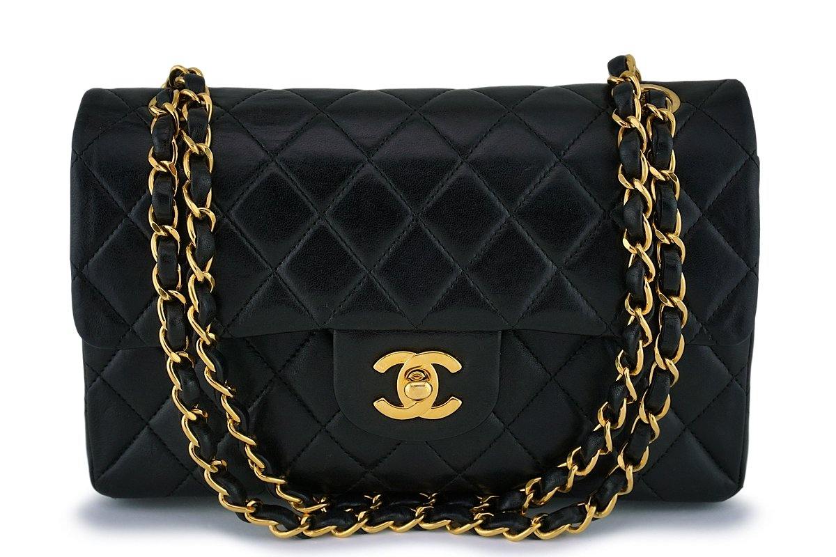 The small size of the classic double flap is very rare and hard to find -- at 9 inches wide, right in between the medium and the rectangular mini, it's the smaller size of the medium flap.