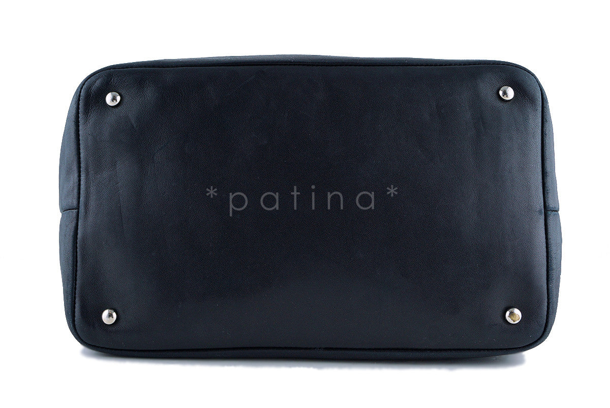 - Chanel soft lambskin leather in Black with white contrast stitching
