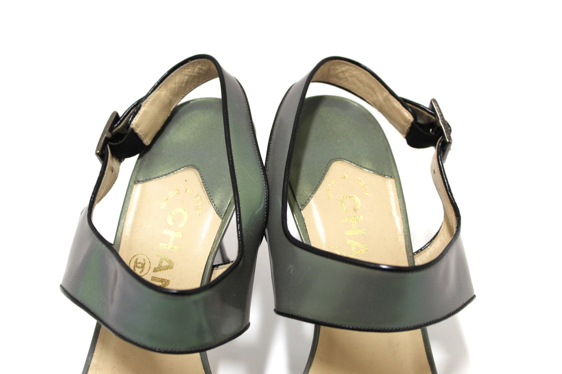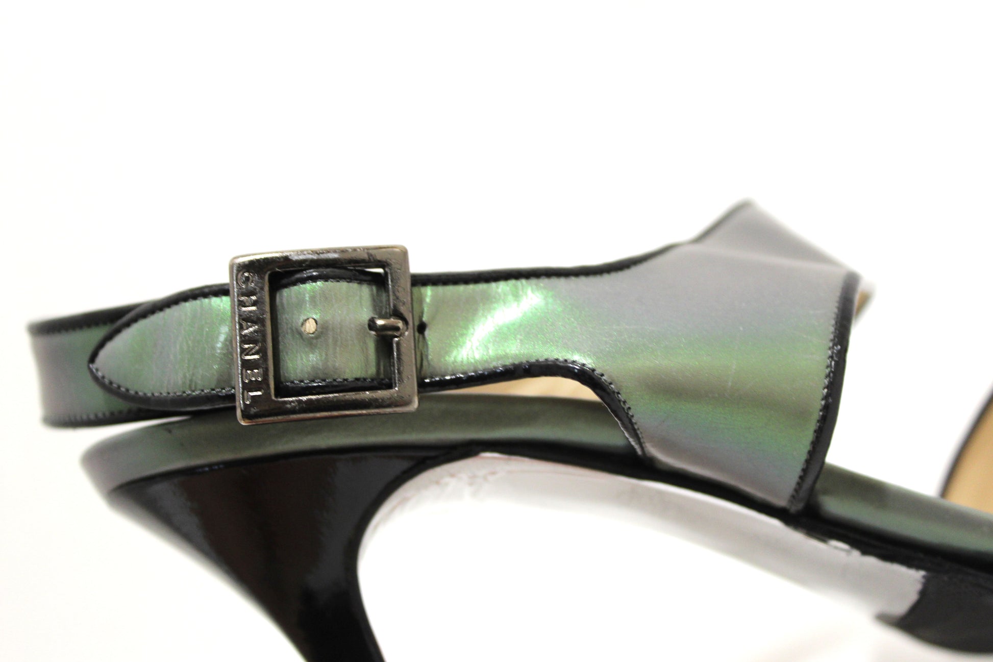 Chanel Black Leather Classic Cap Toe Heels Shoes with Chain Ankle Strap Size 38