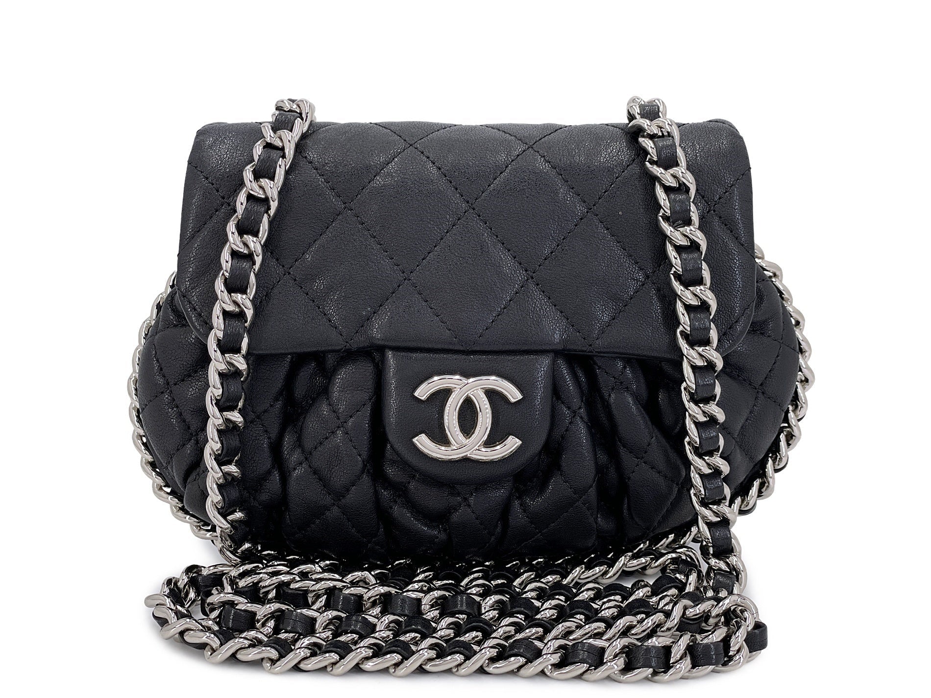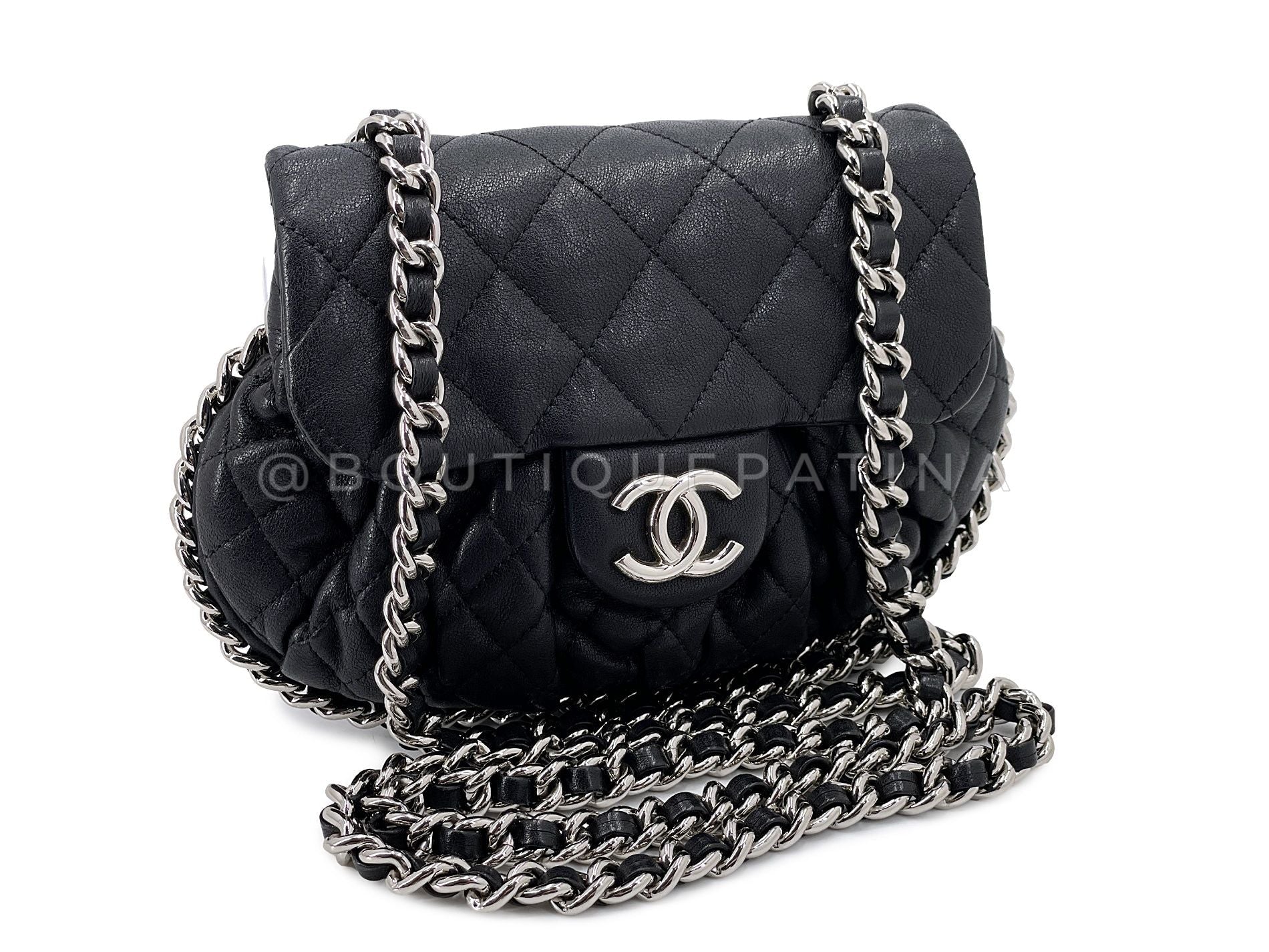 Chanel Black Mini Chain Around Flap Crossbody Messenger Bag SHW