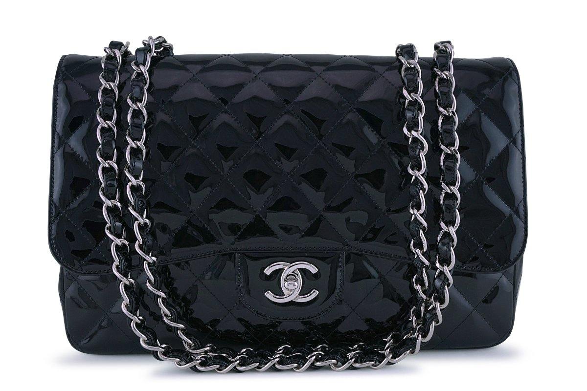 Chanel Black Patent Jumbo 2.55 Classic Flap Bag SHW