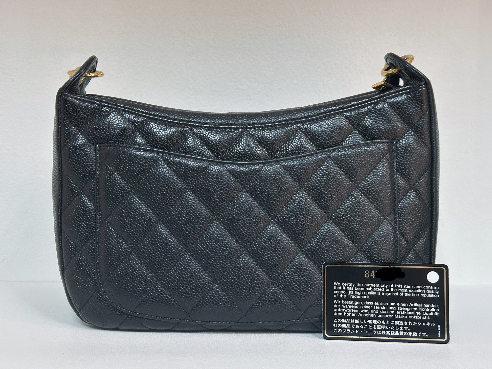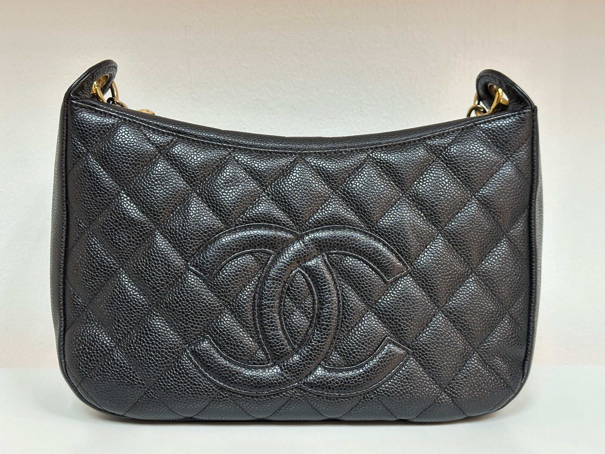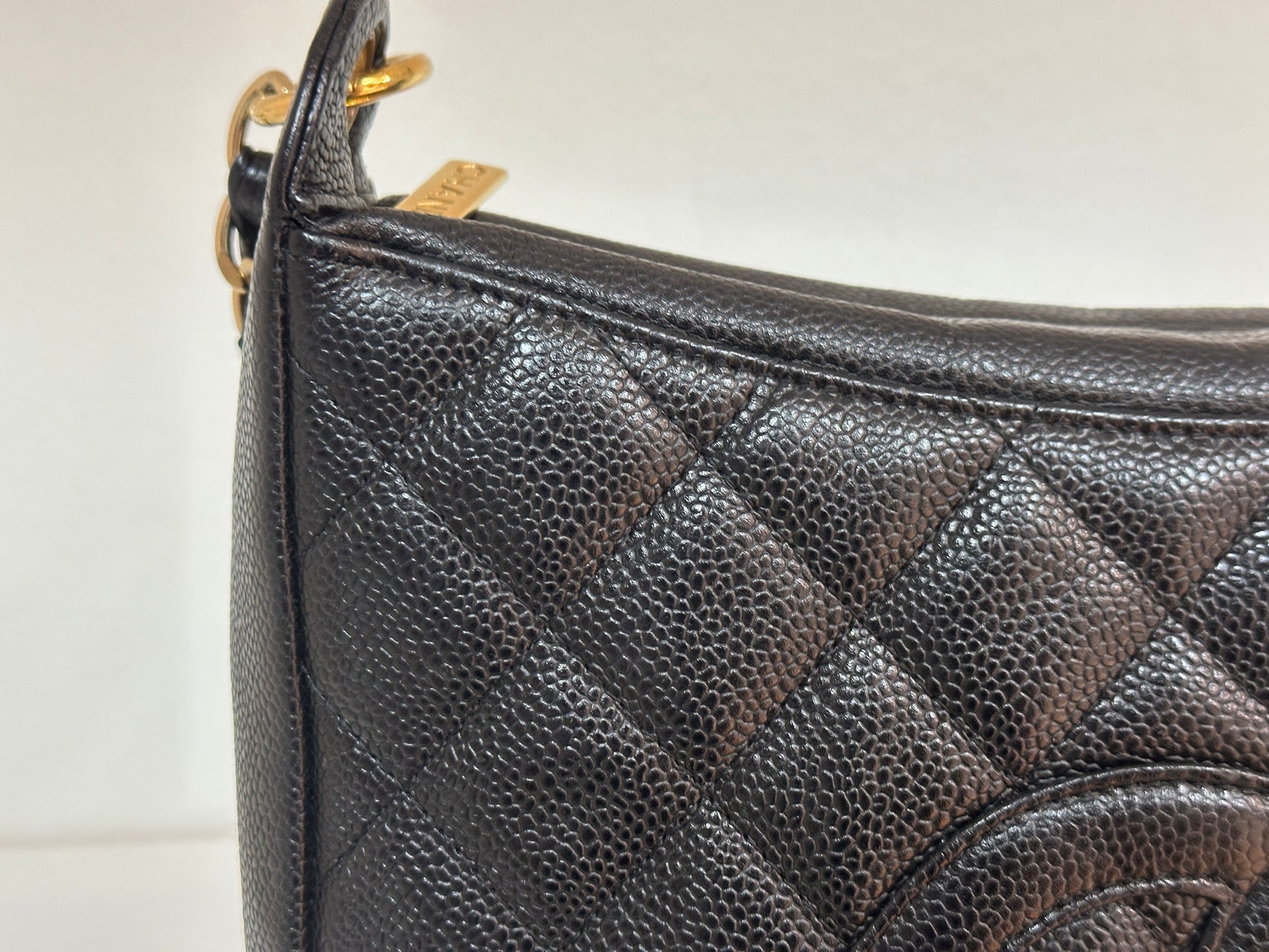 Chanel Black Quilted Caviar CC Logo Chain Shoulder Bag holo 8438