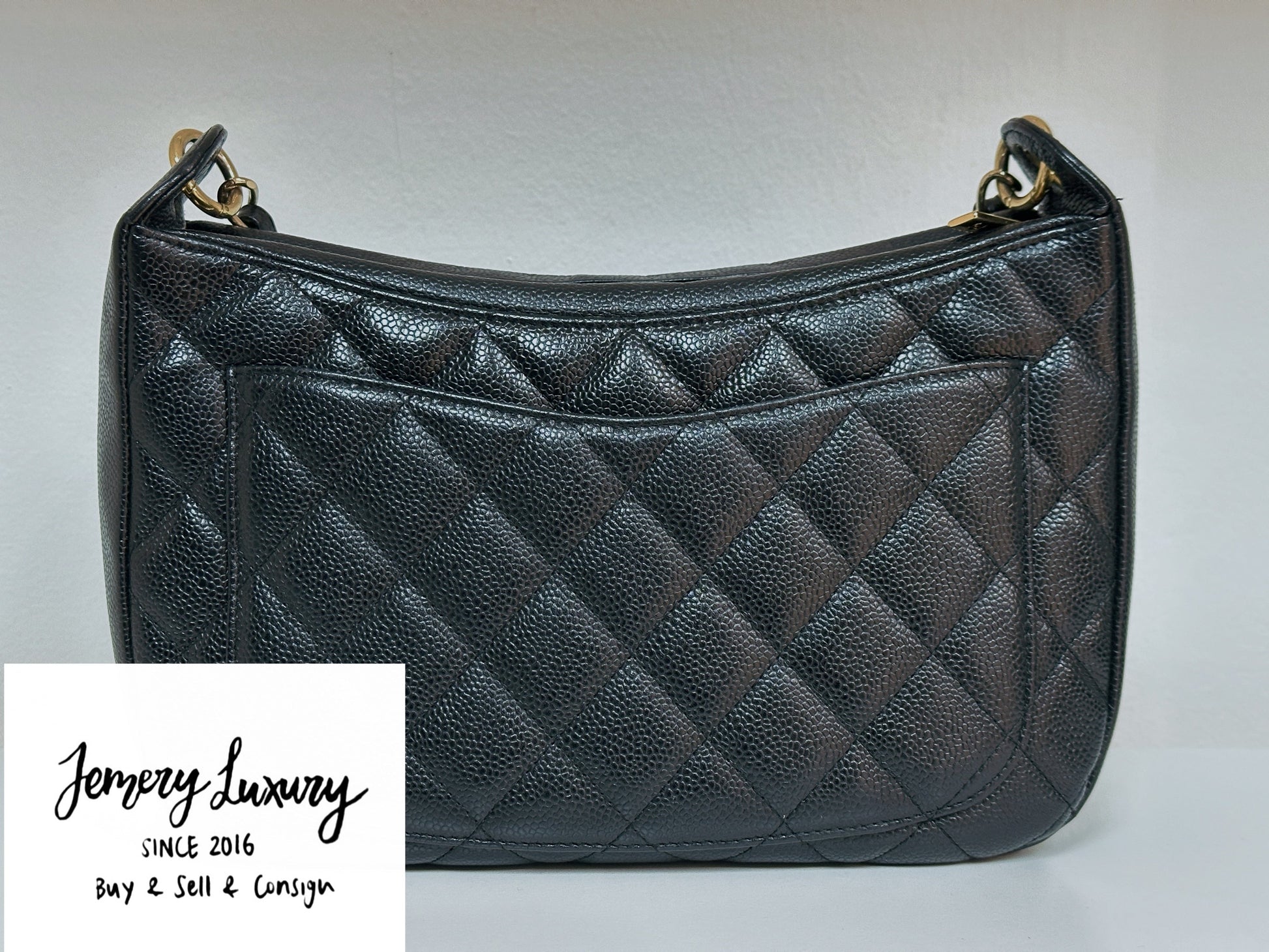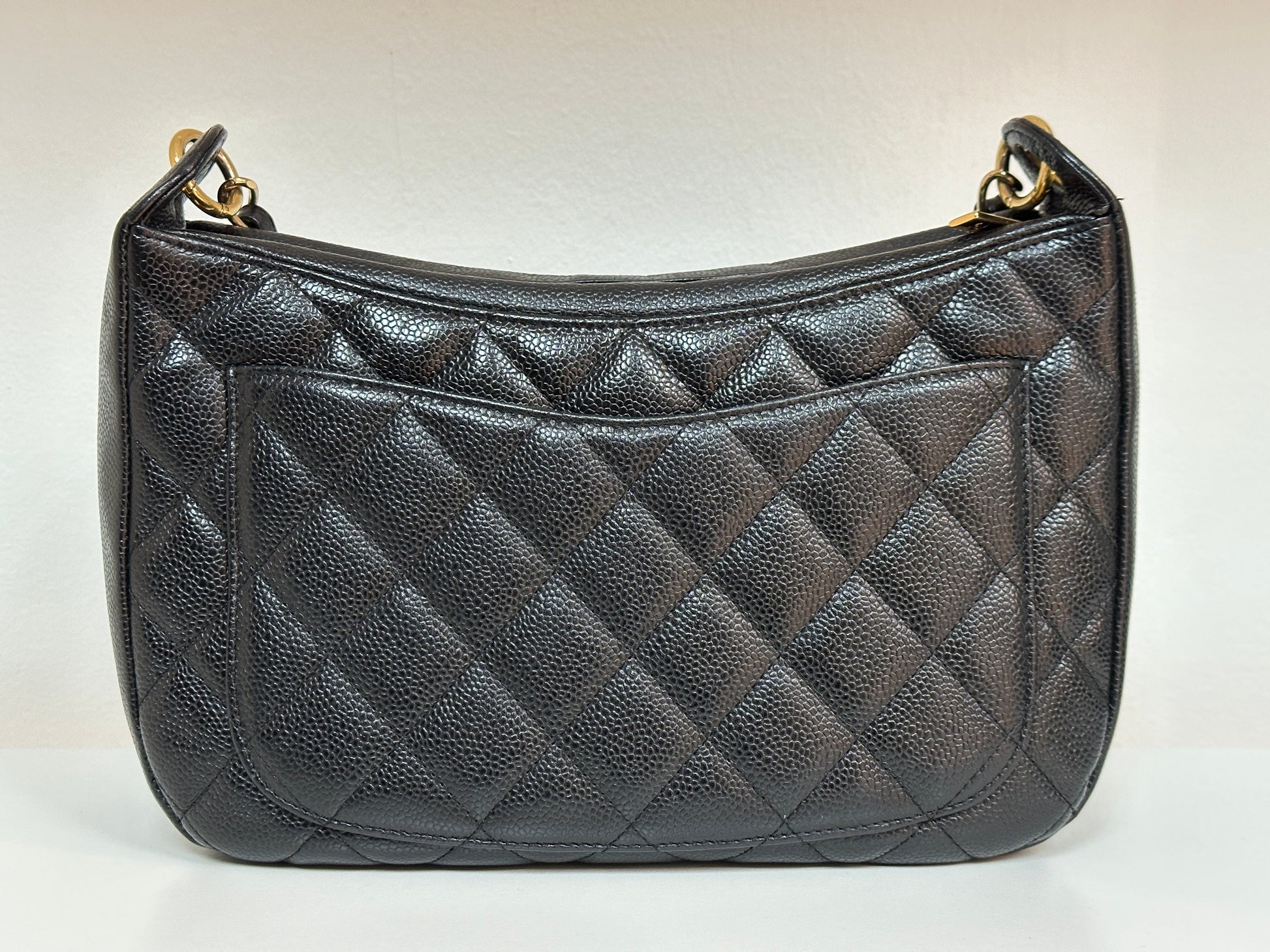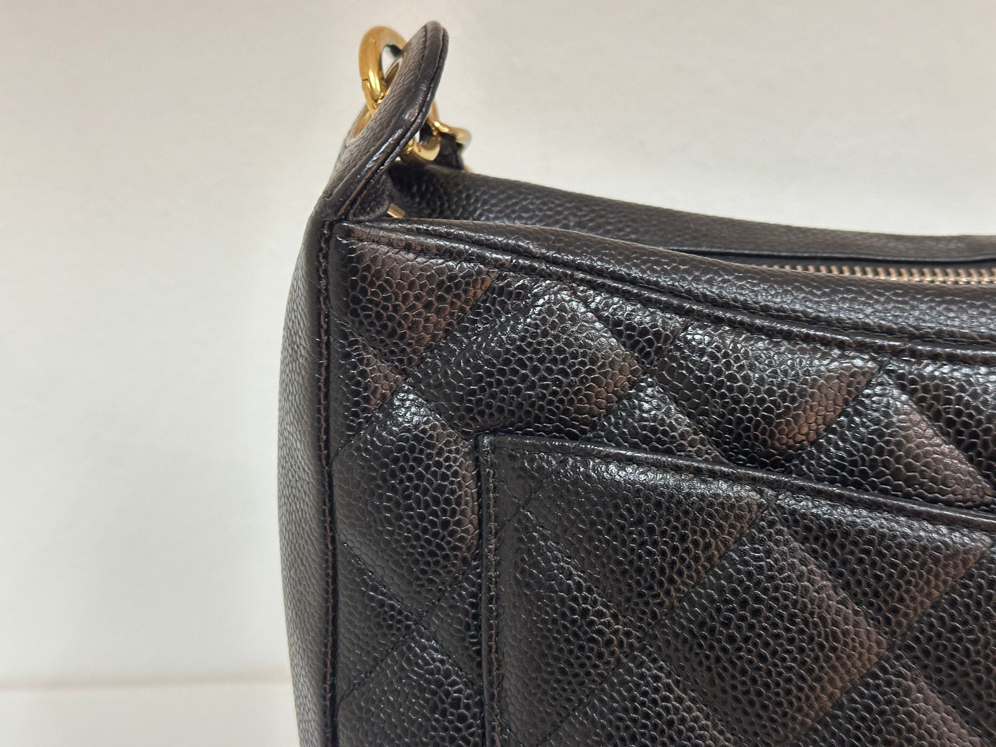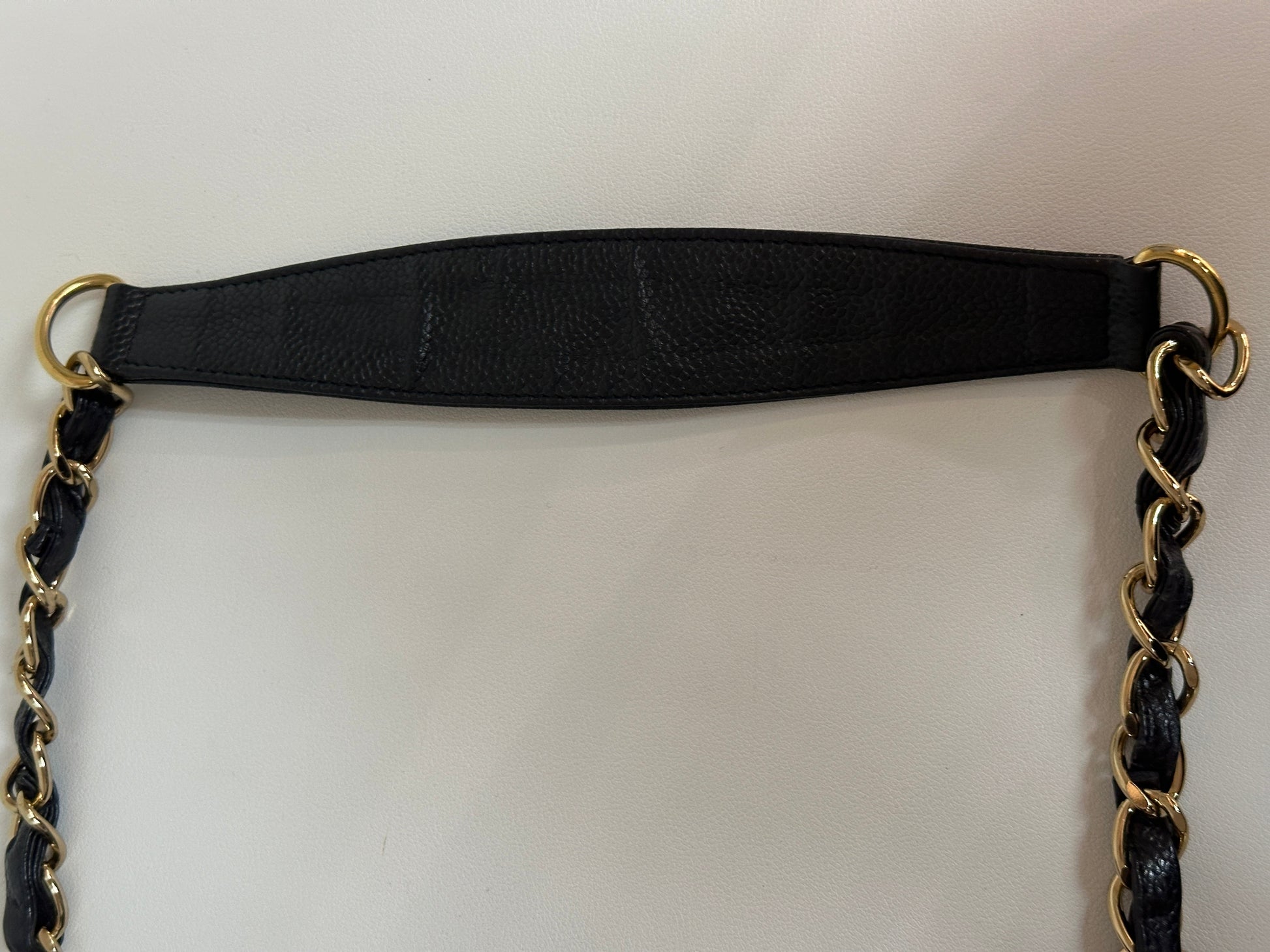 Chanel Black Quilted Caviar CC Logo Chain Shoulder Bag holo 8438