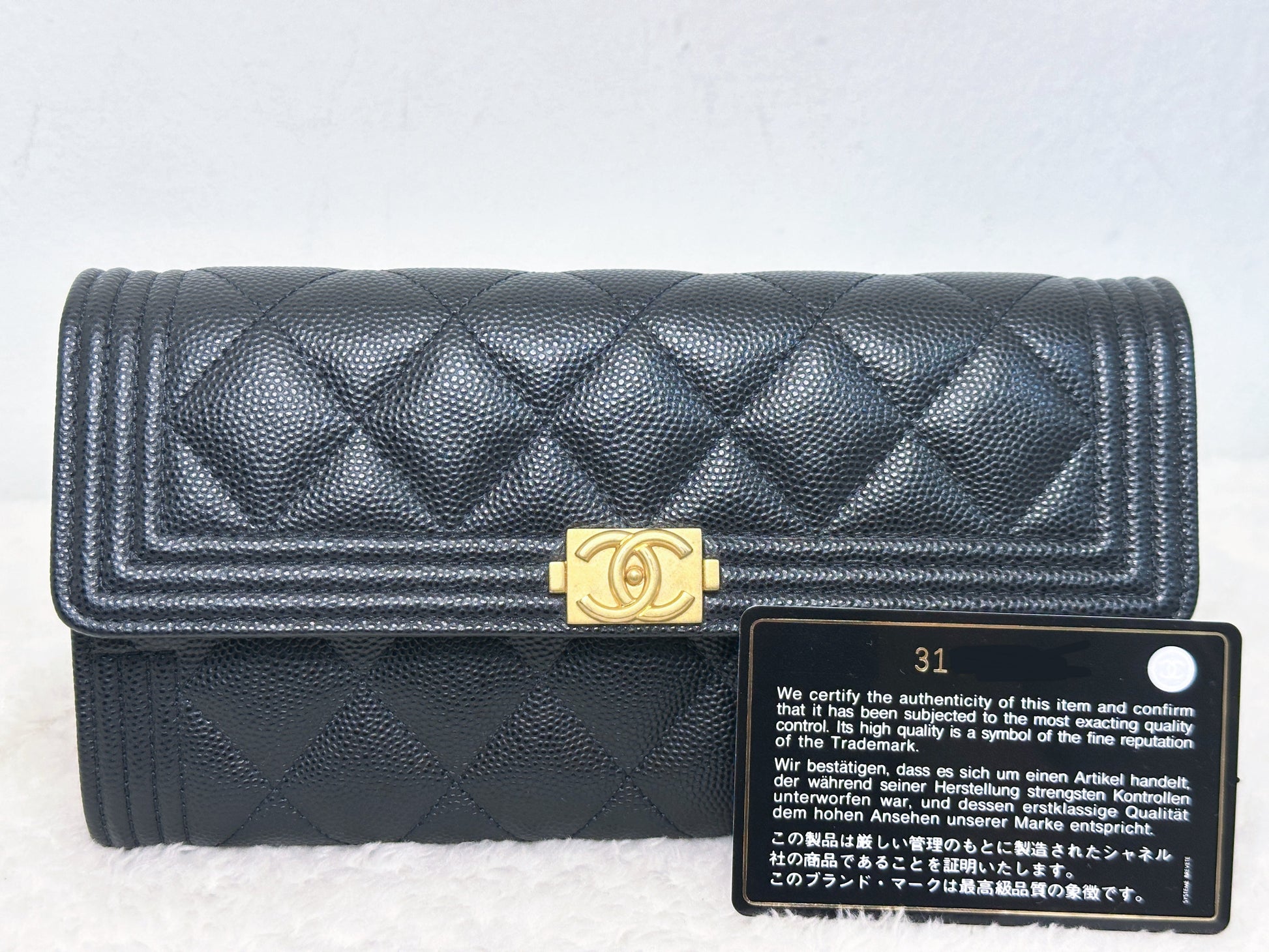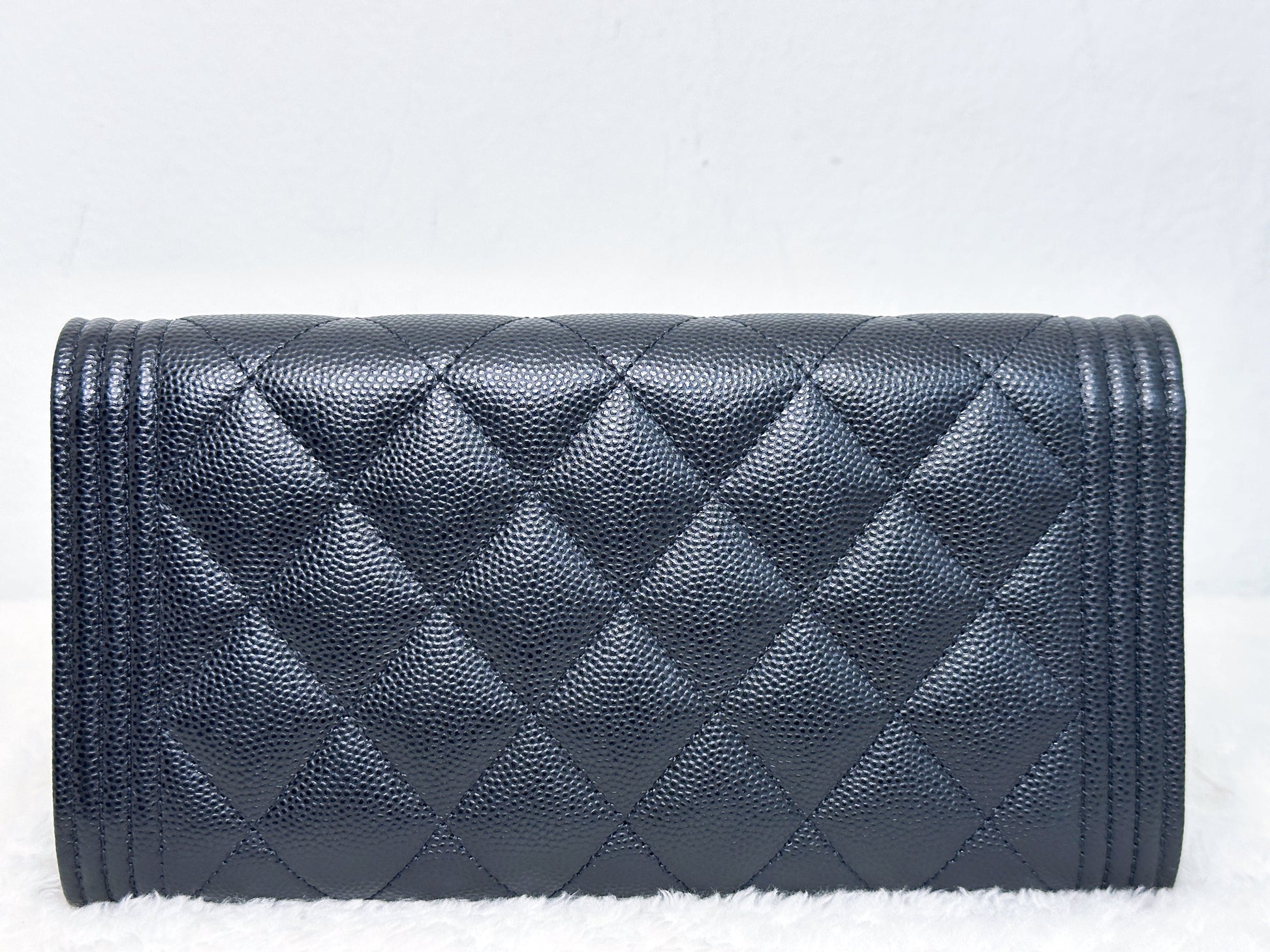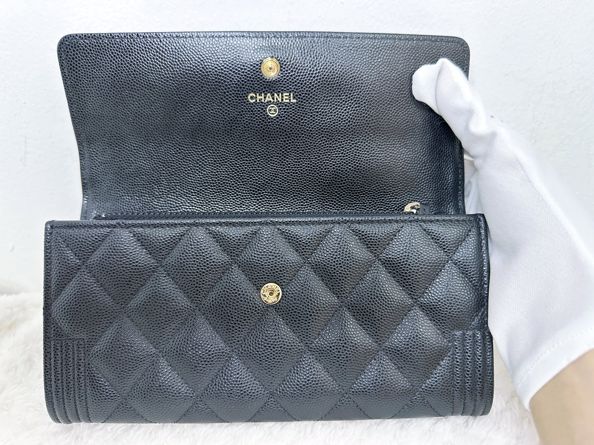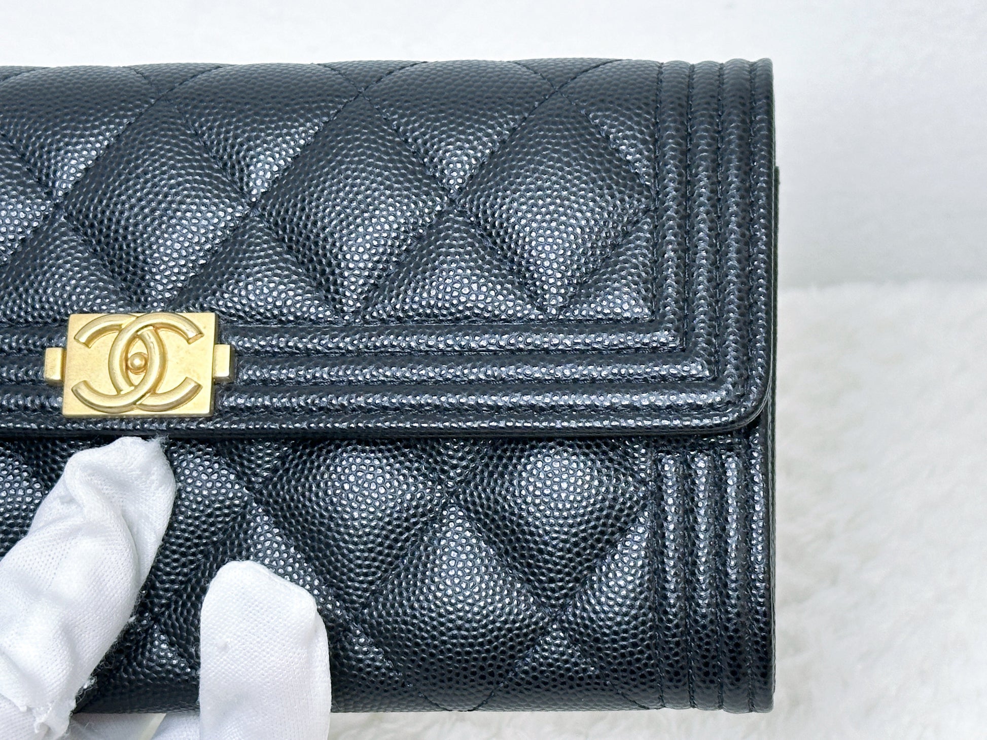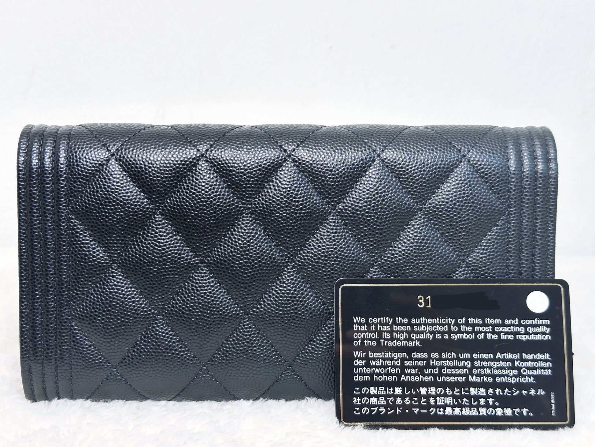 CHANEL Black Quilted Caviar Large Boy Gusset Flap Wallet 3199 holo card