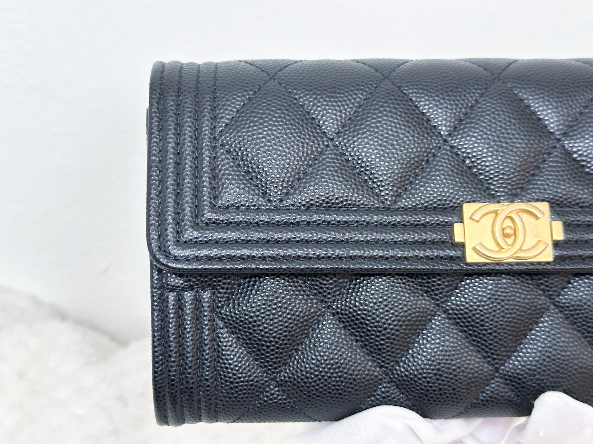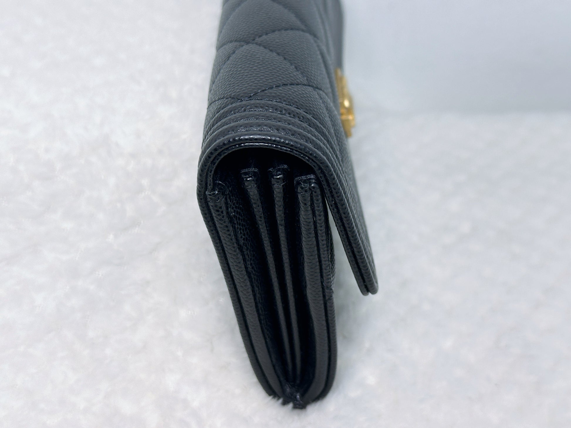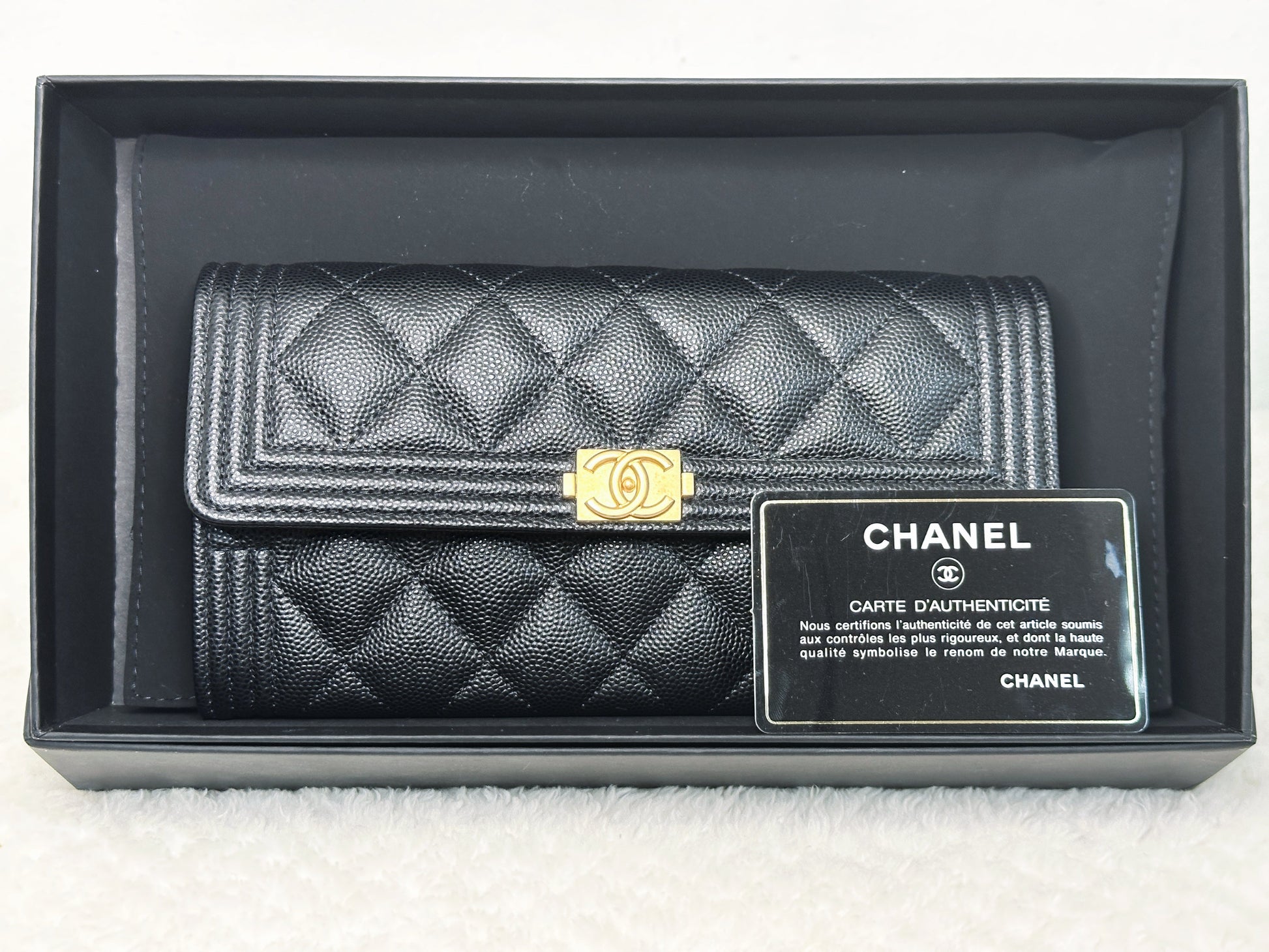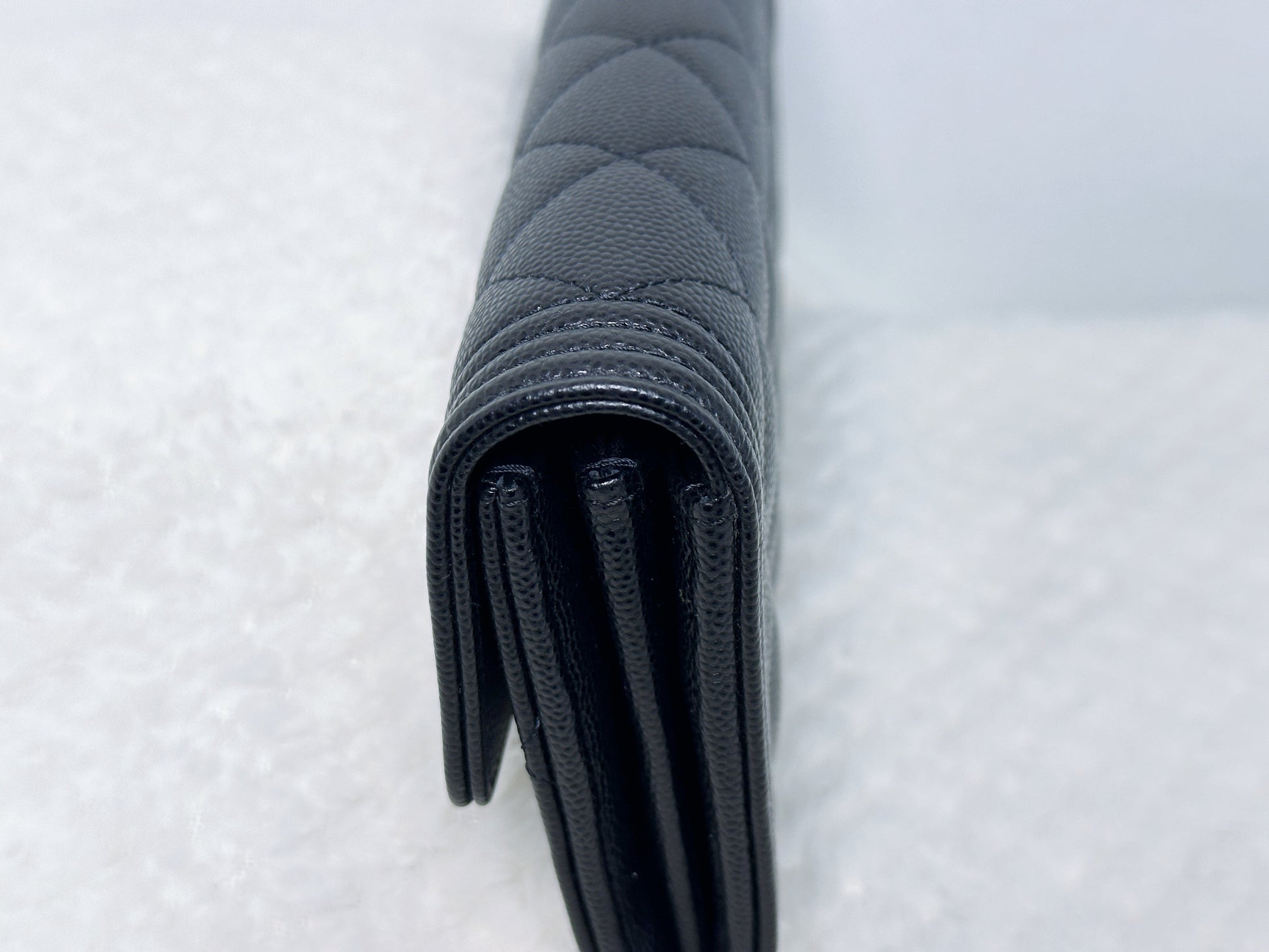 CHANEL Black Quilted Caviar Large Boy Gusset Flap Wallet 3199 holo card