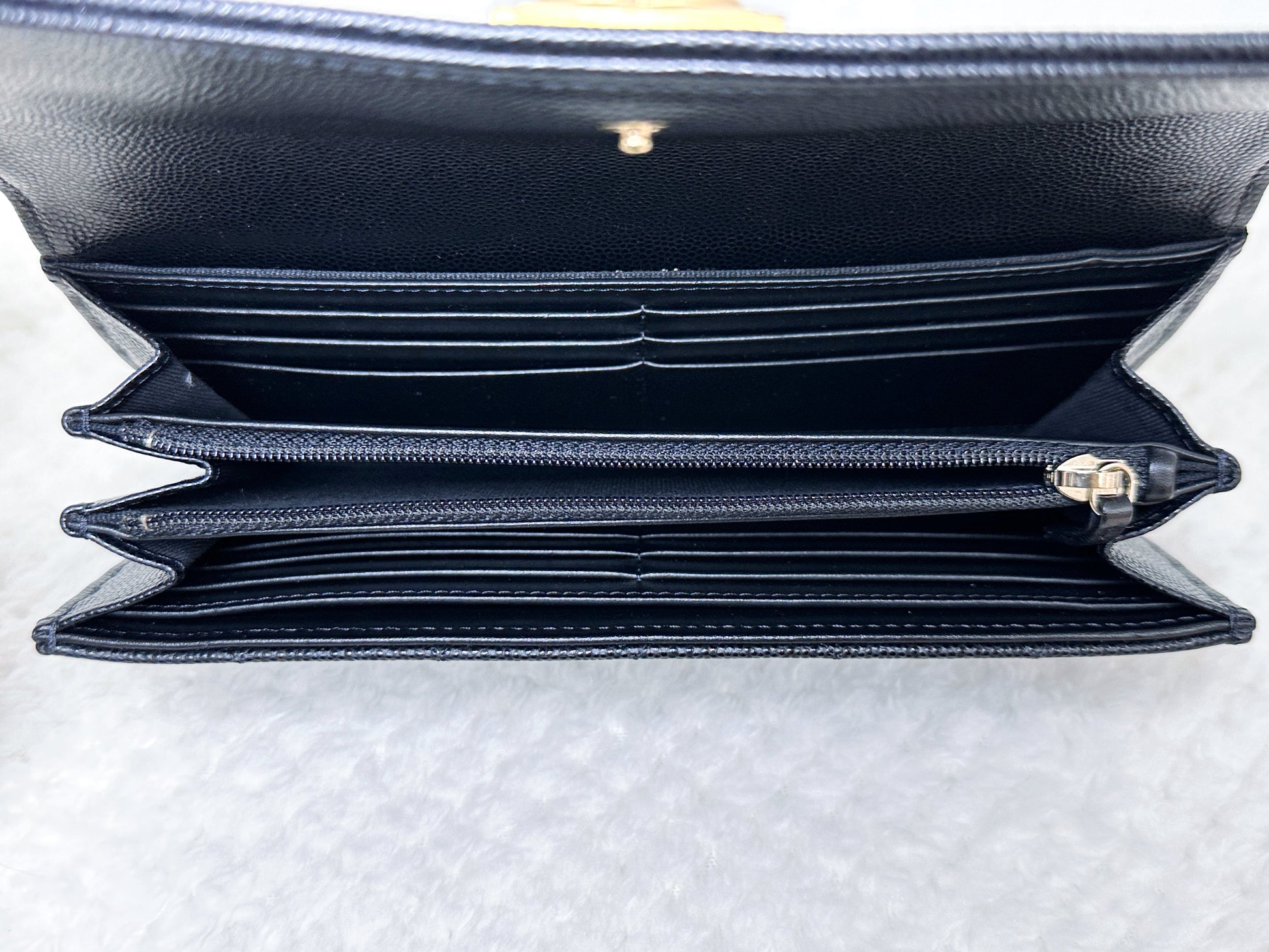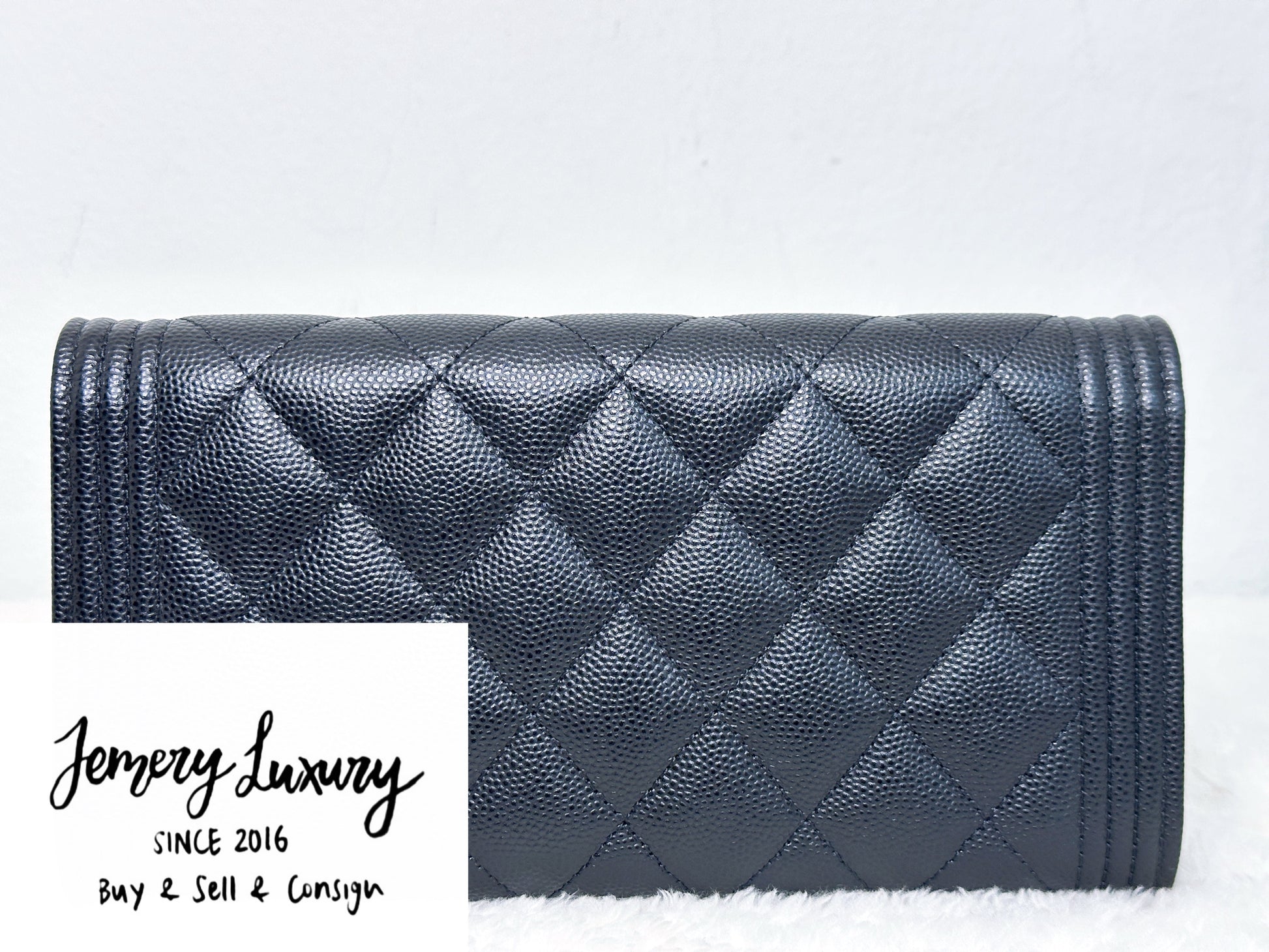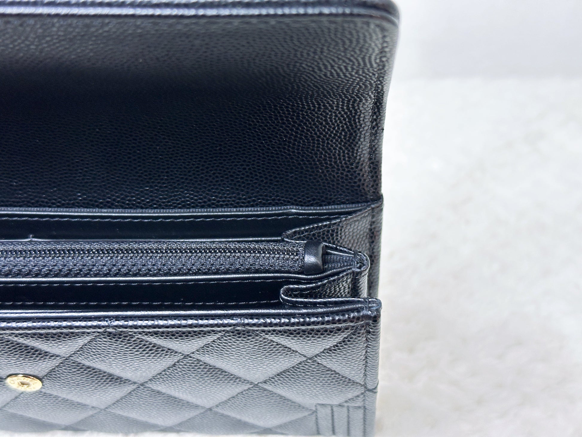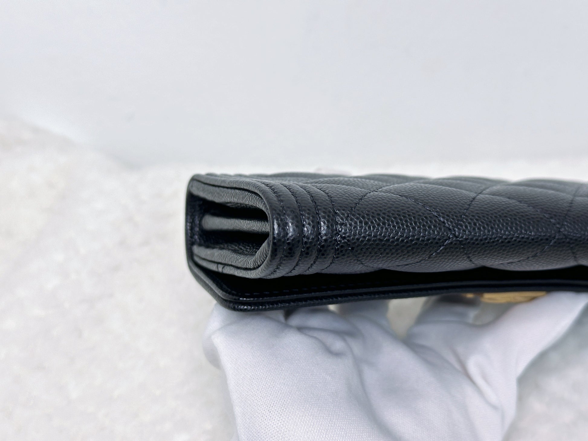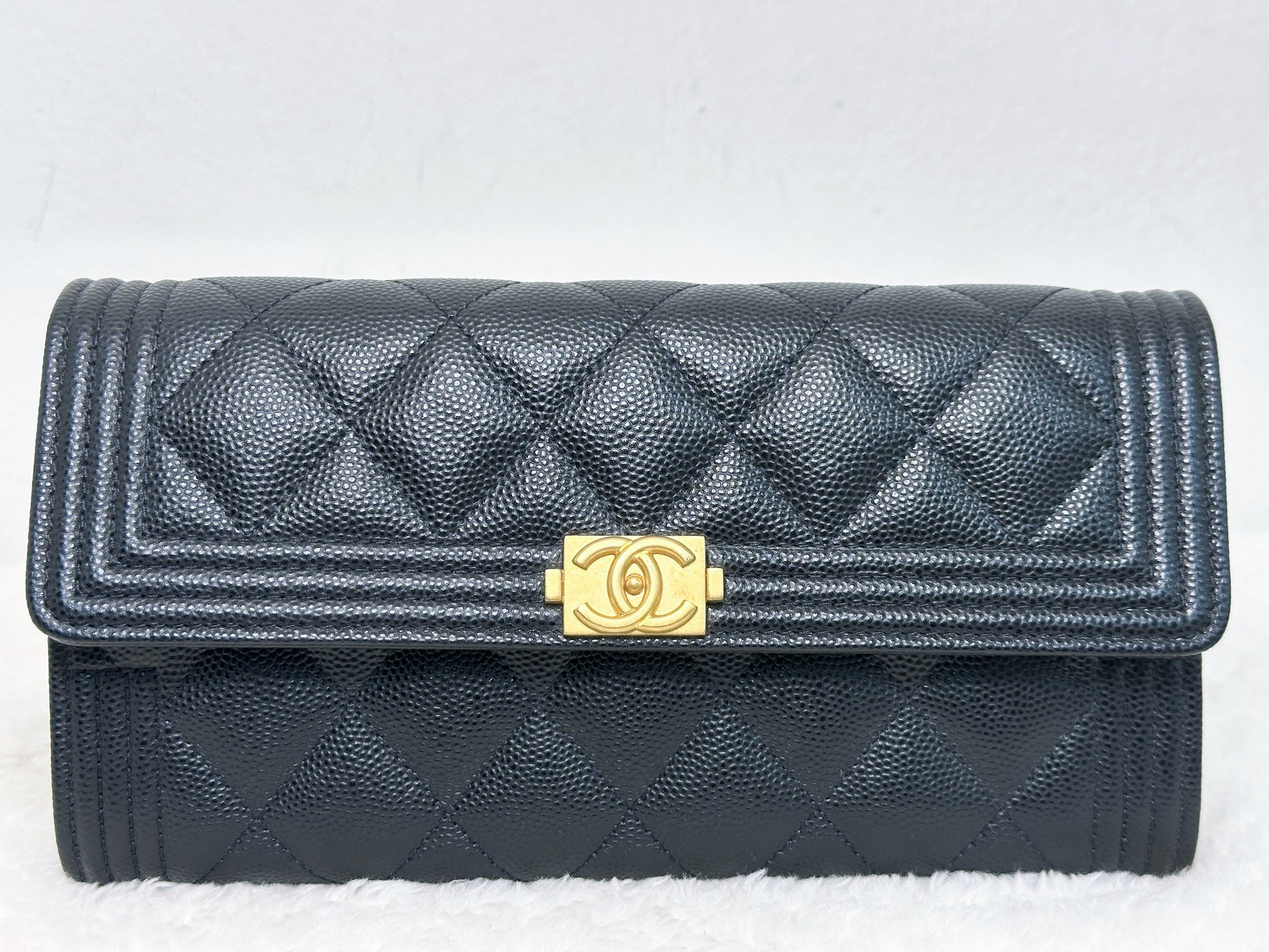 CHANEL Black Quilted Caviar Large Boy Gusset Flap Wallet 3199 holo card