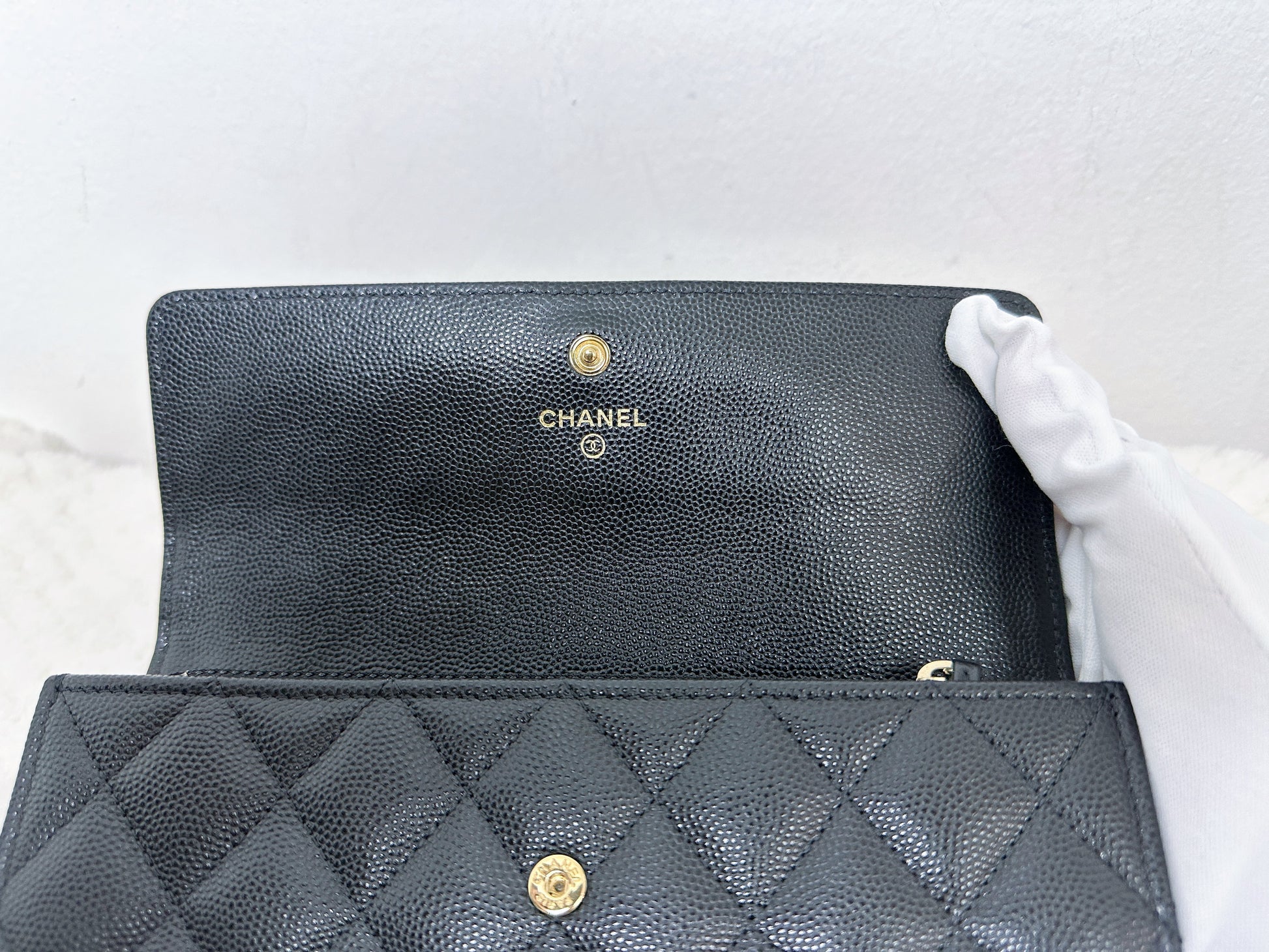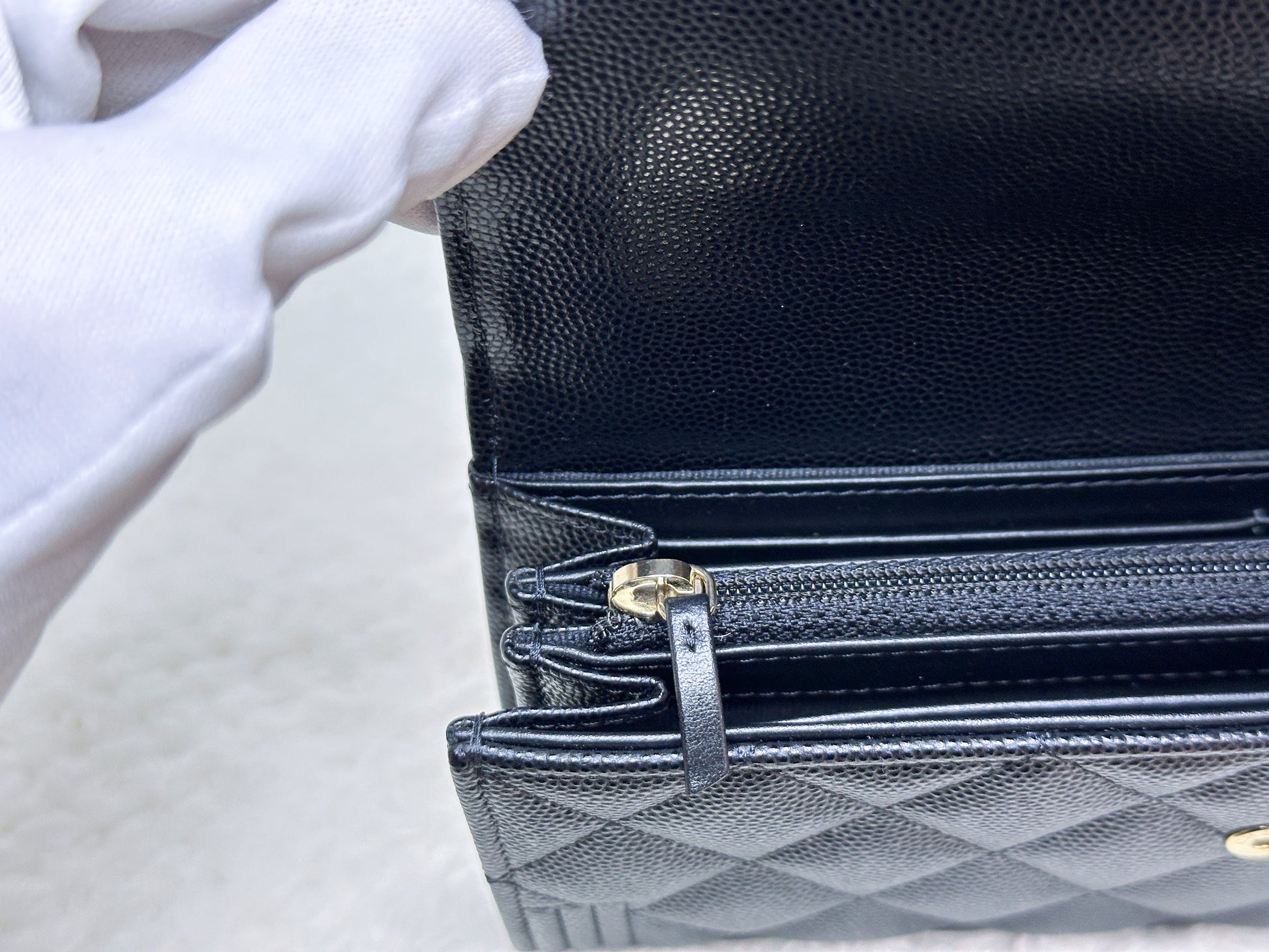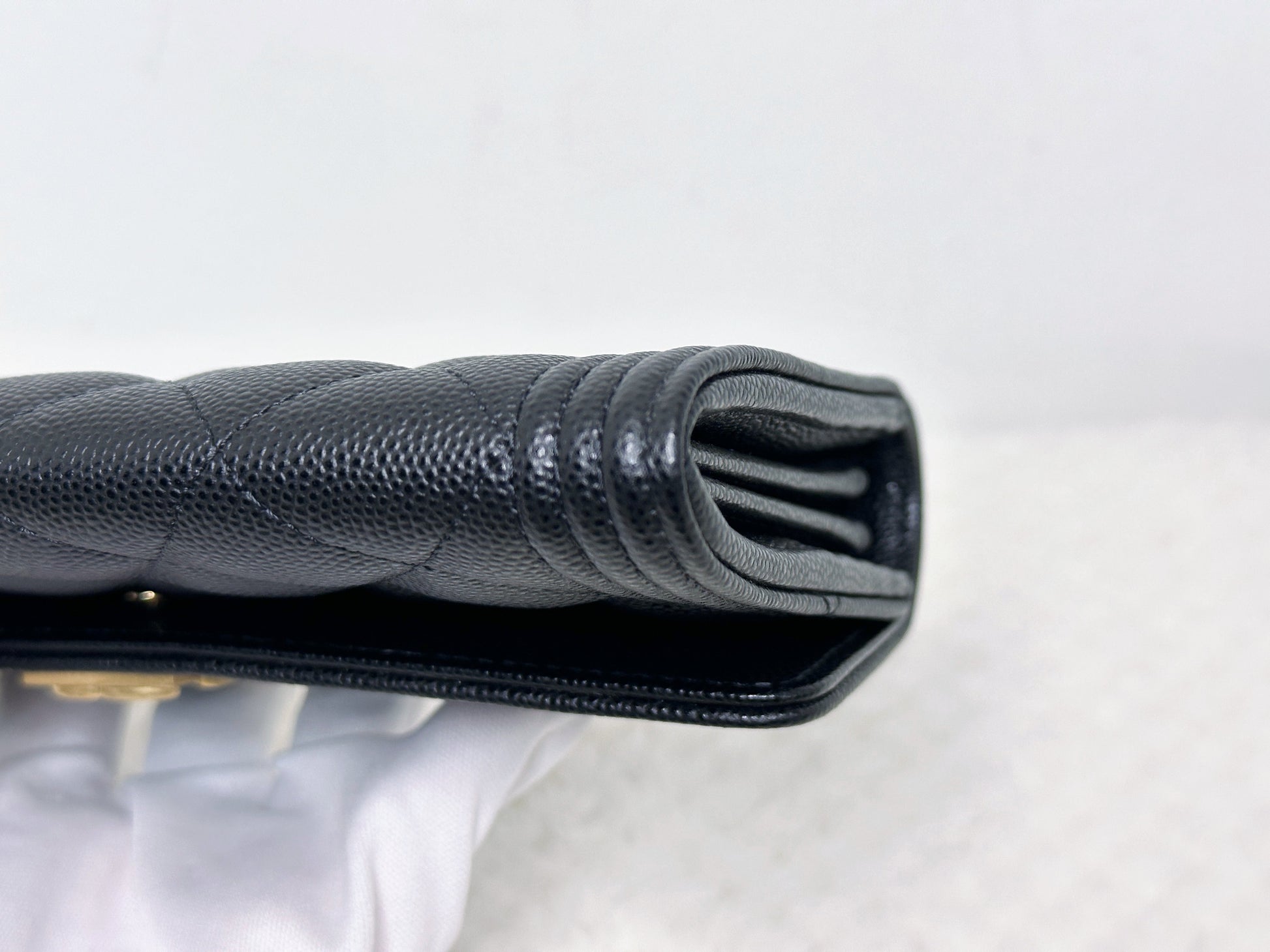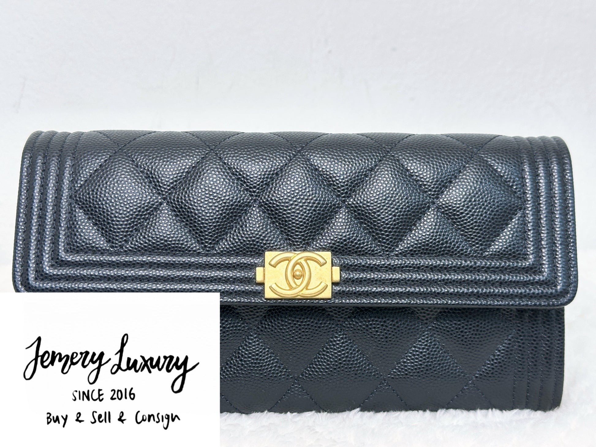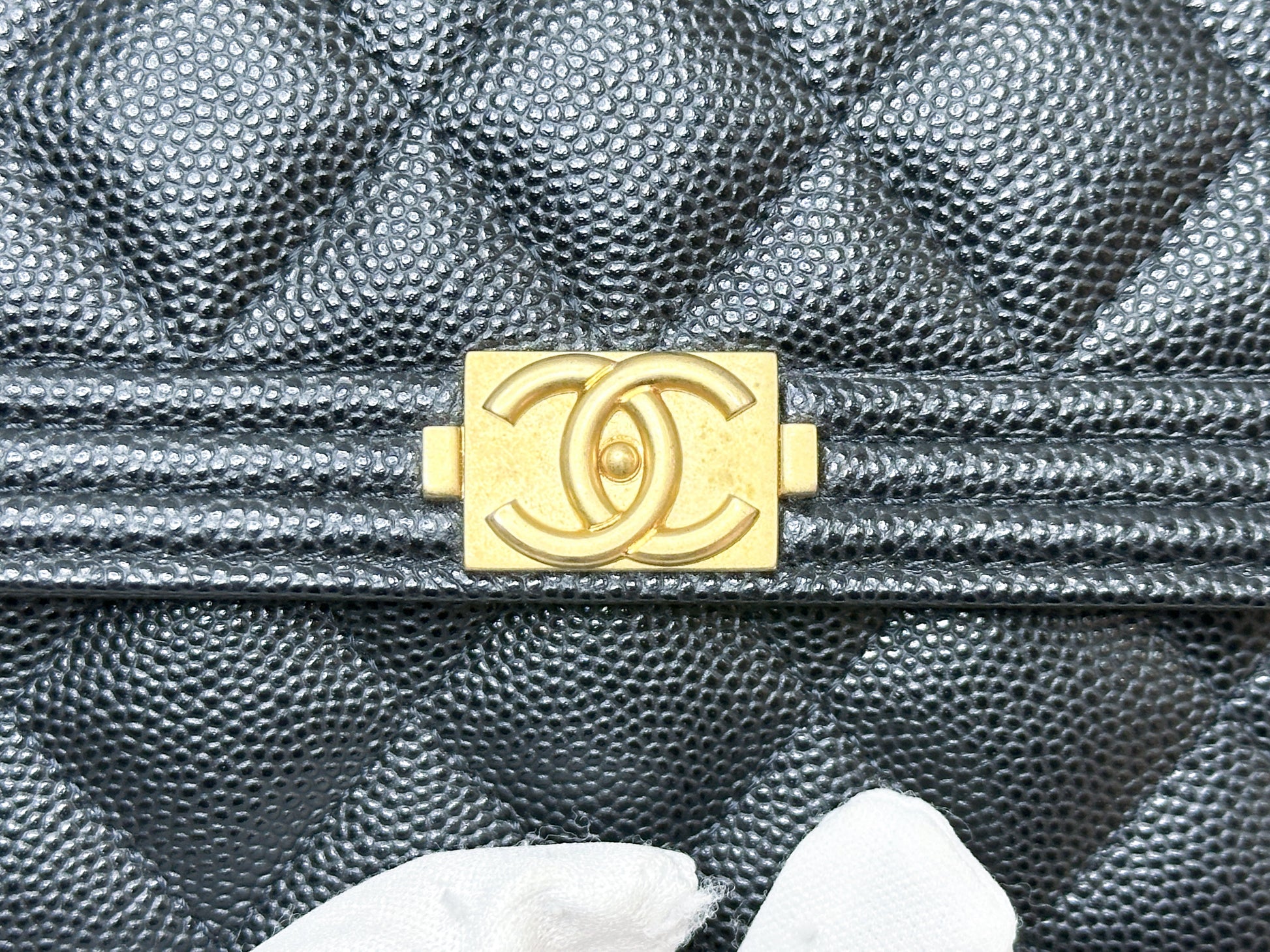 CHANEL Black Quilted Caviar Large Boy Gusset Flap Wallet 3199 holo card