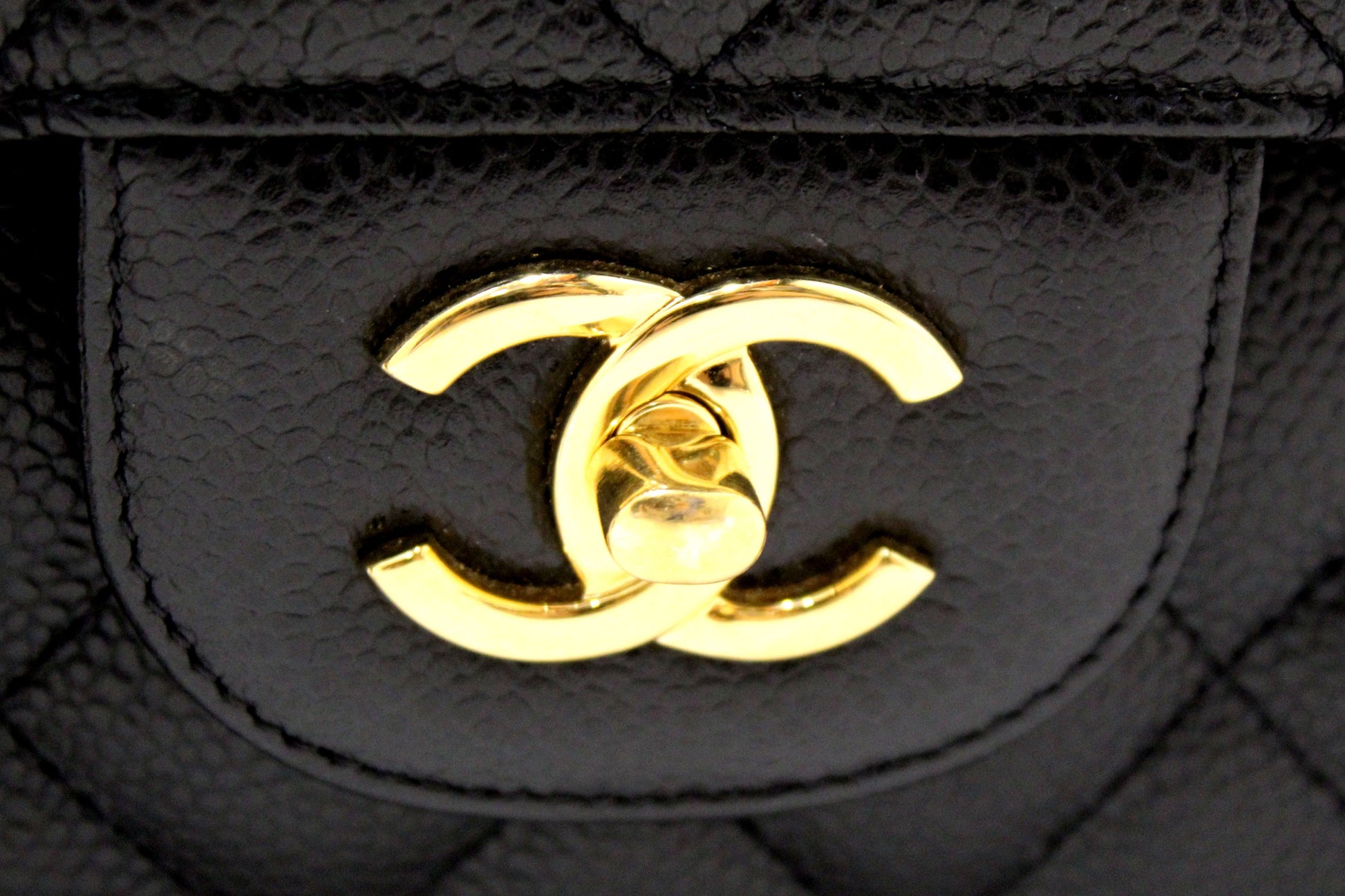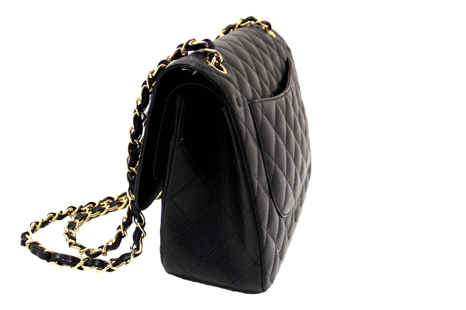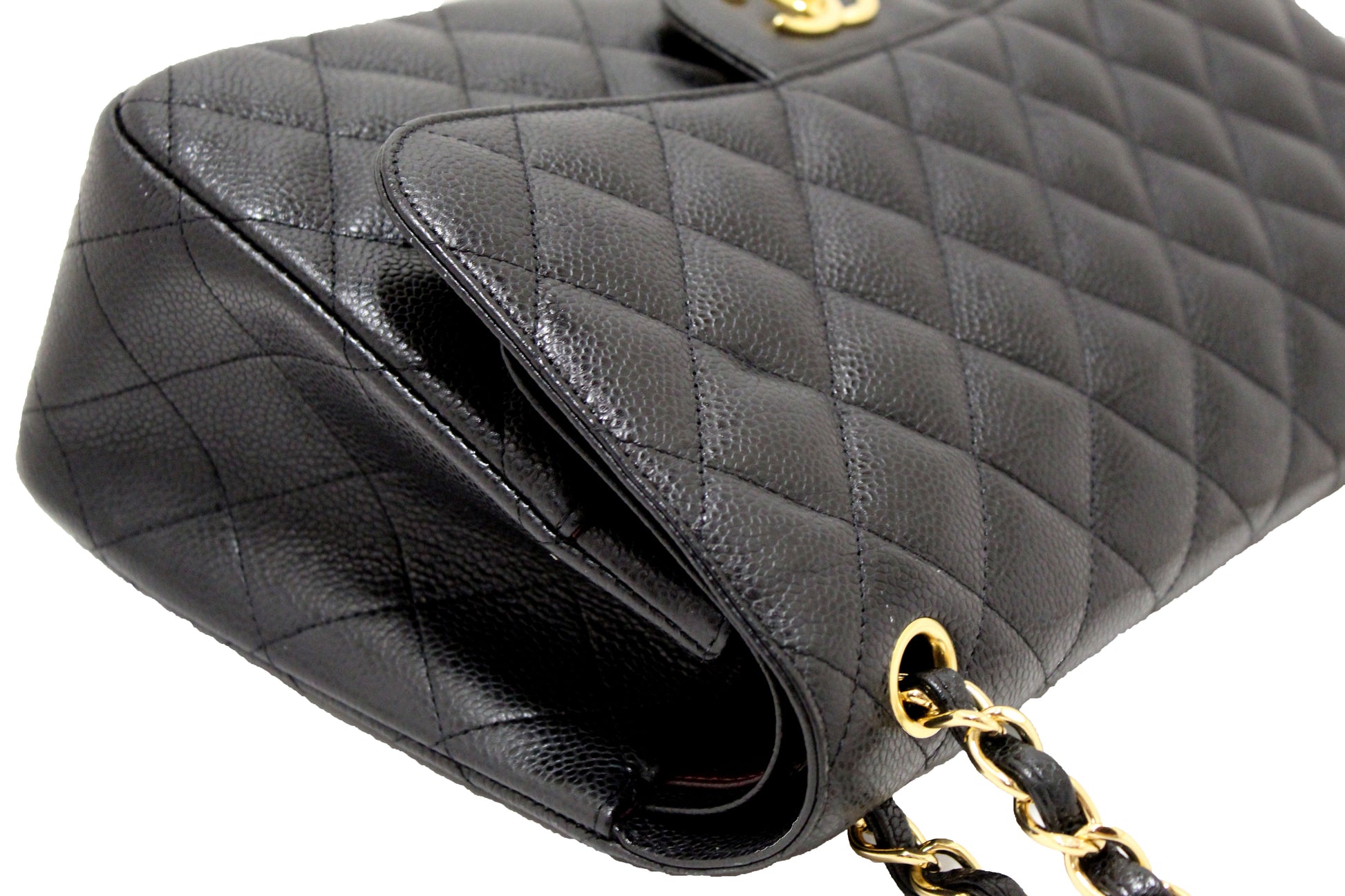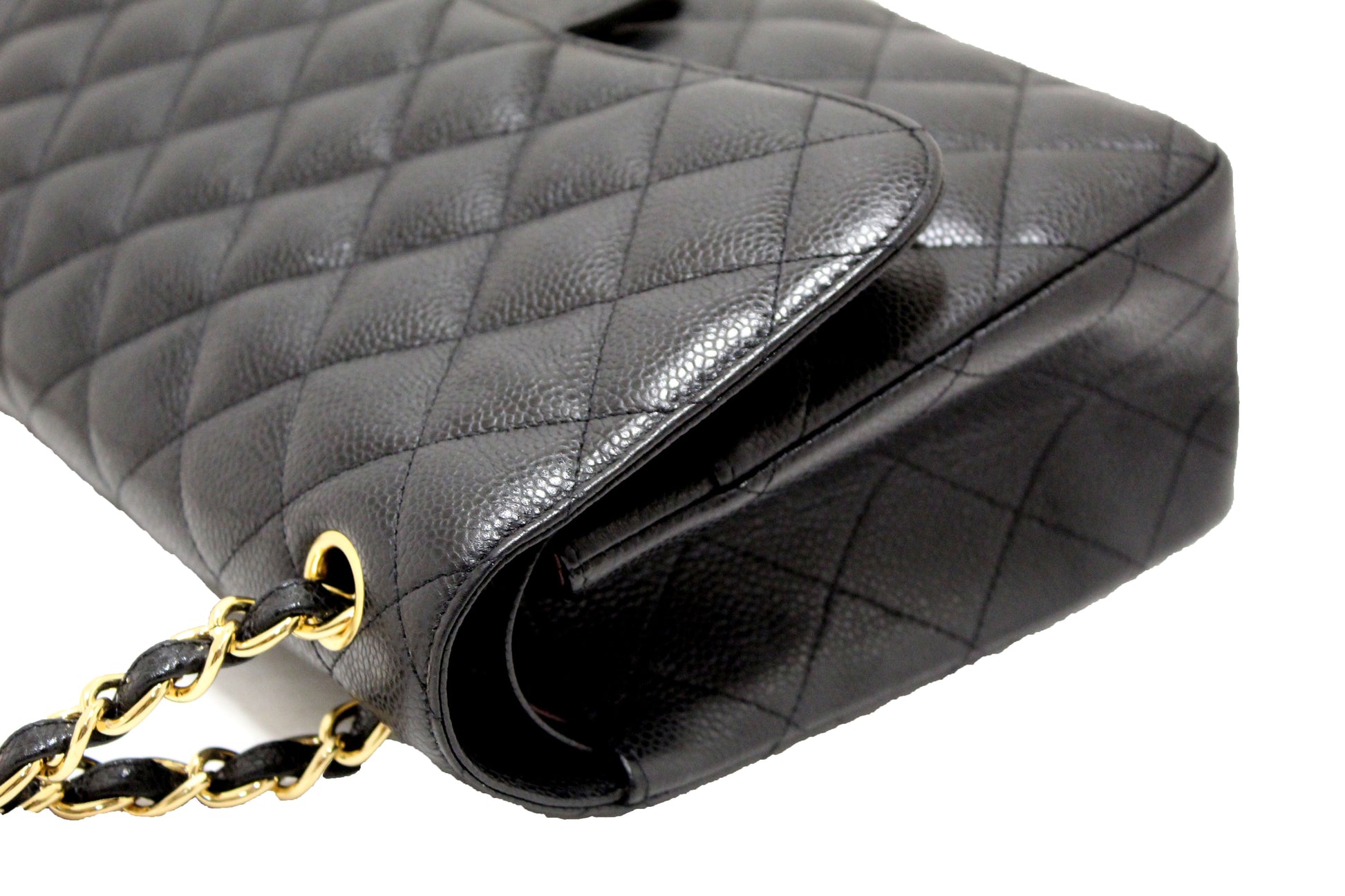 Chanel Black Quilted Caviar Leather Classic Jumbo Double Flap Bag