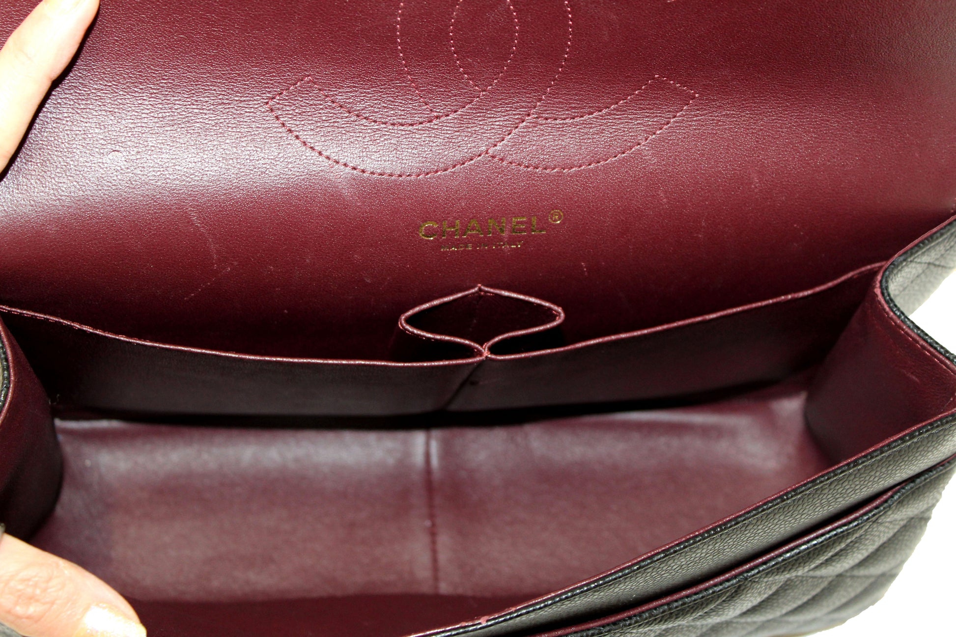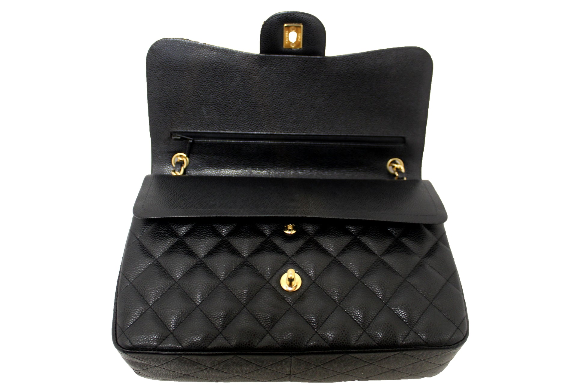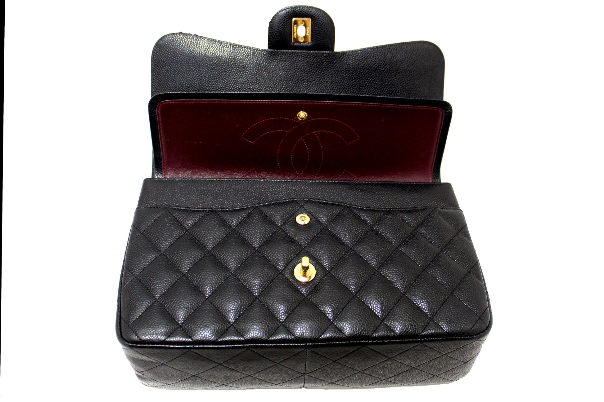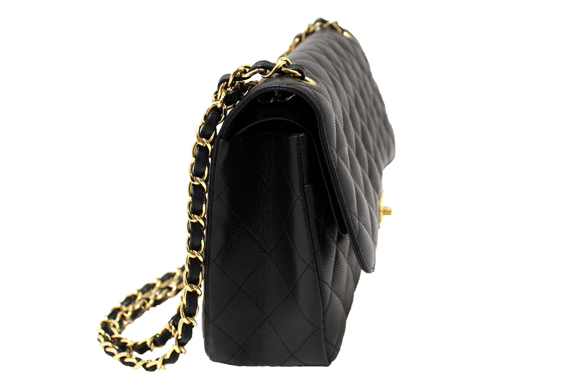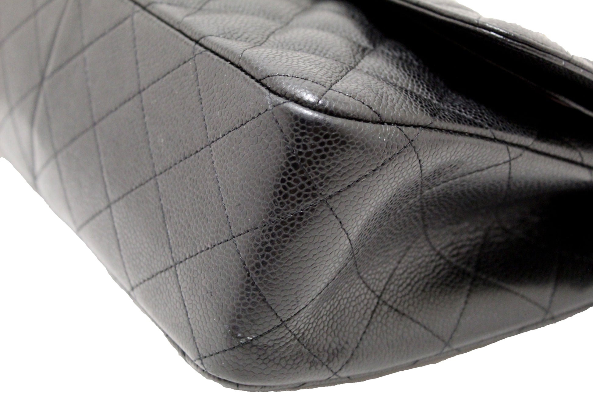 Chanel Black Quilted Caviar Leather Classic Jumbo Double Flap Bag