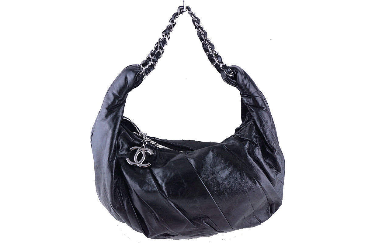 Chanel Black Ruched Luxury Hobo Tote Bag CC Charm