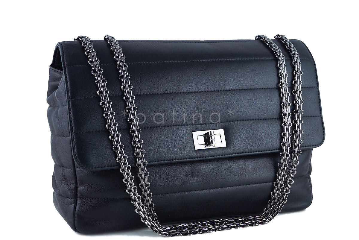 Chanel Black Soft Lambskin Bar-Quilted Classic Jumbo Reissue Flap Bag