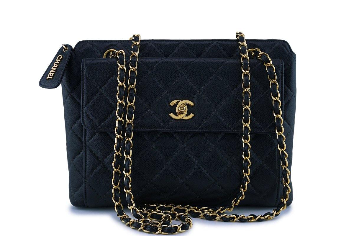 Chanel Black Vintage Caviar Classic Quilted Flap Shopper Tote Bag
