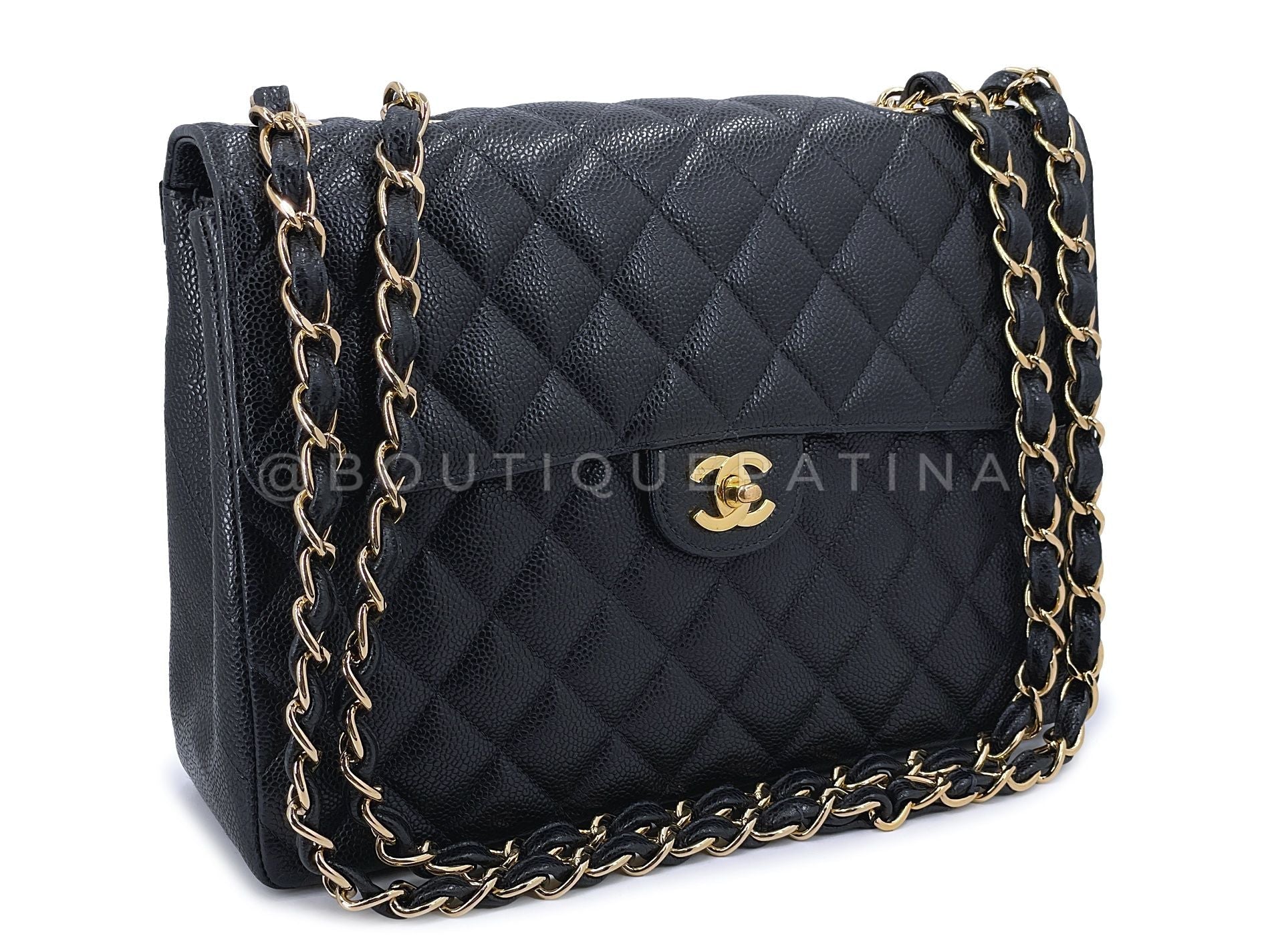 Chanel Black Vintage Caviar Jumbo Flap Bag 2004 Classic 24k GHW UVR