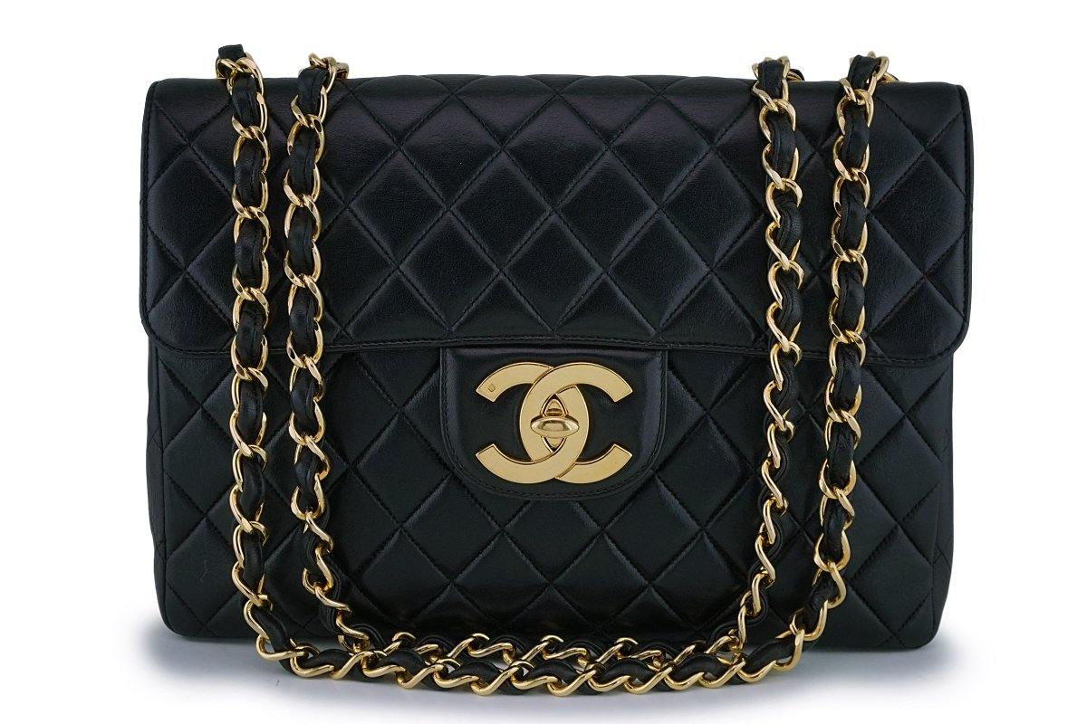 Chanel Black Vintage Lambskin Jumbo Classic Flap Bag 24k GHW
