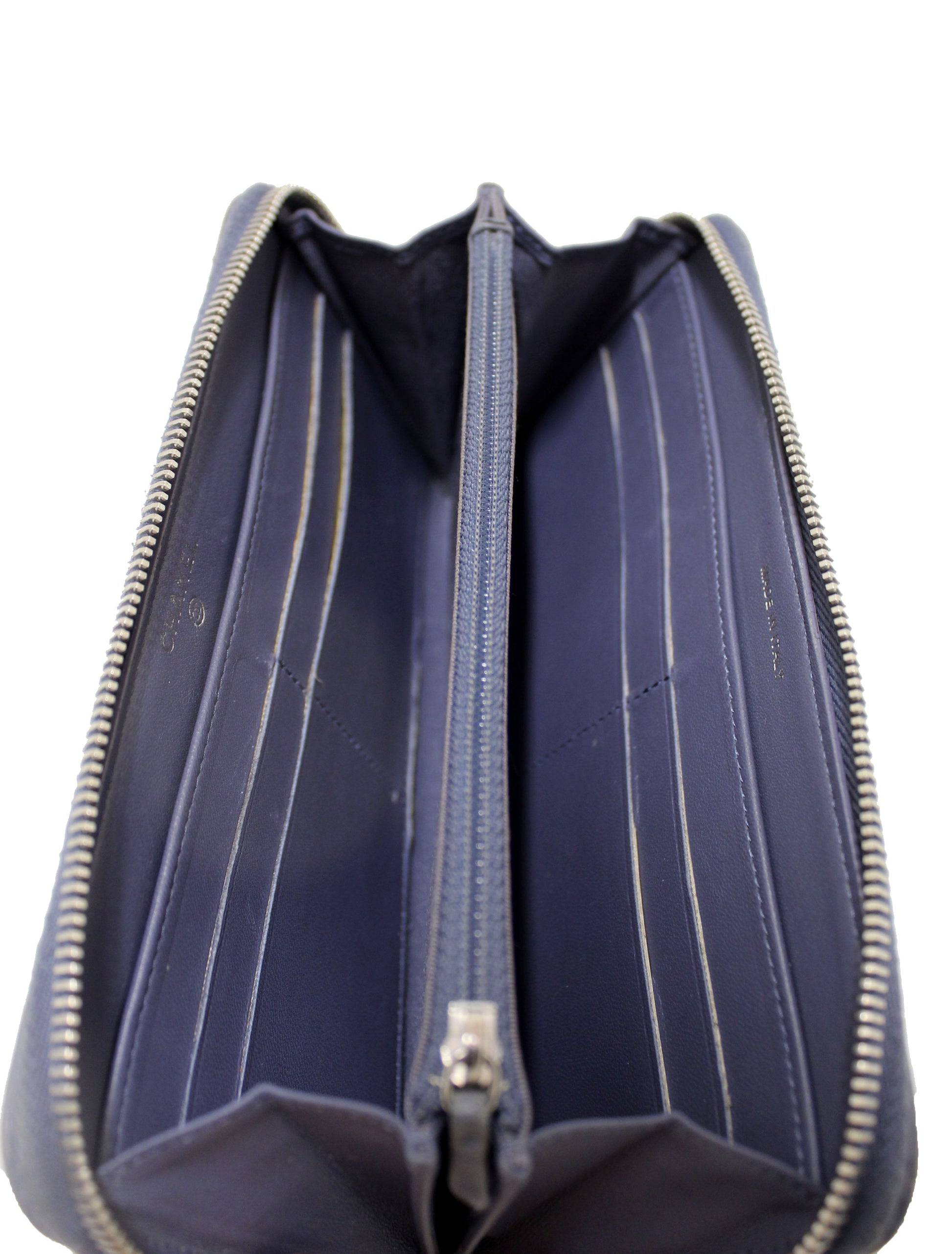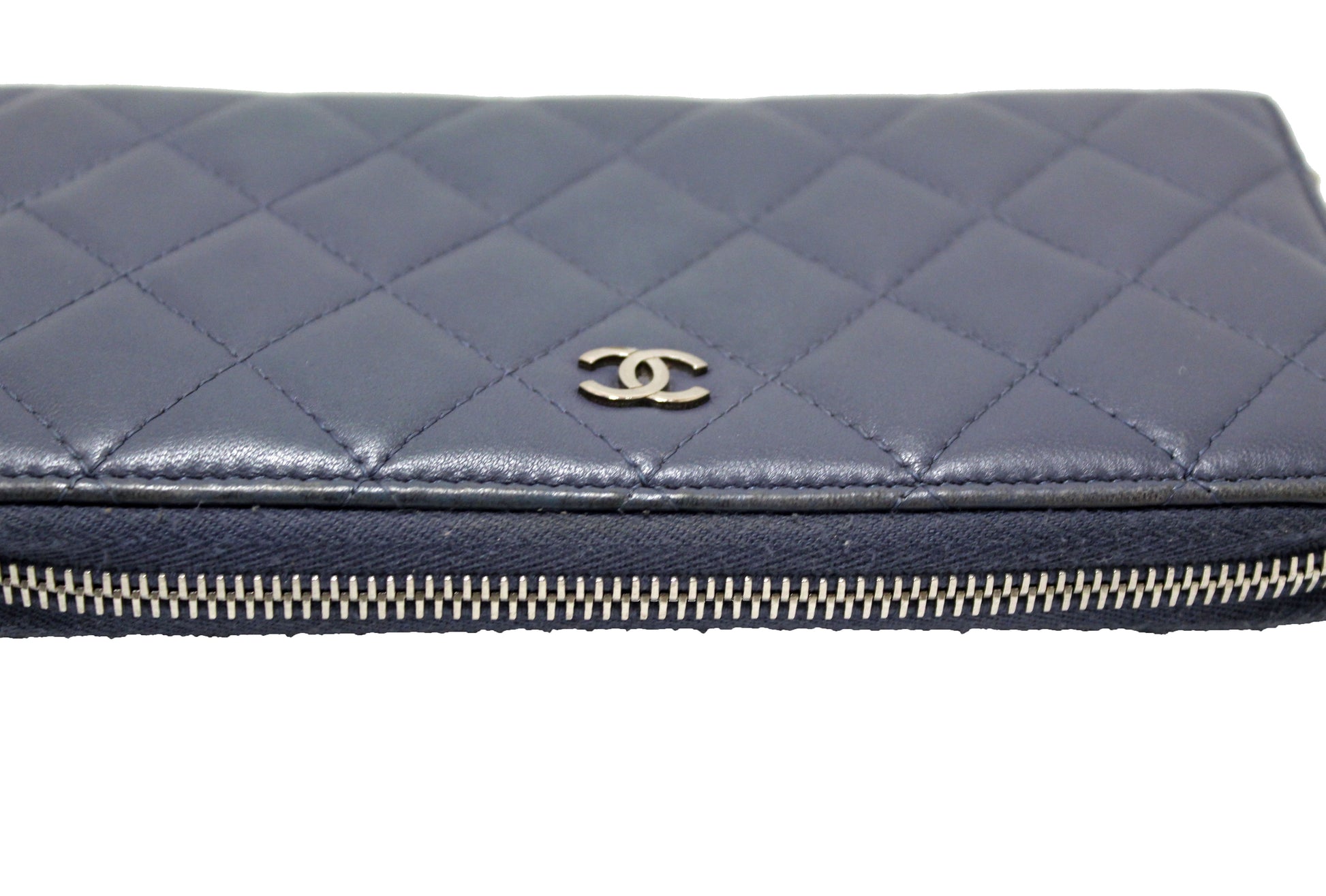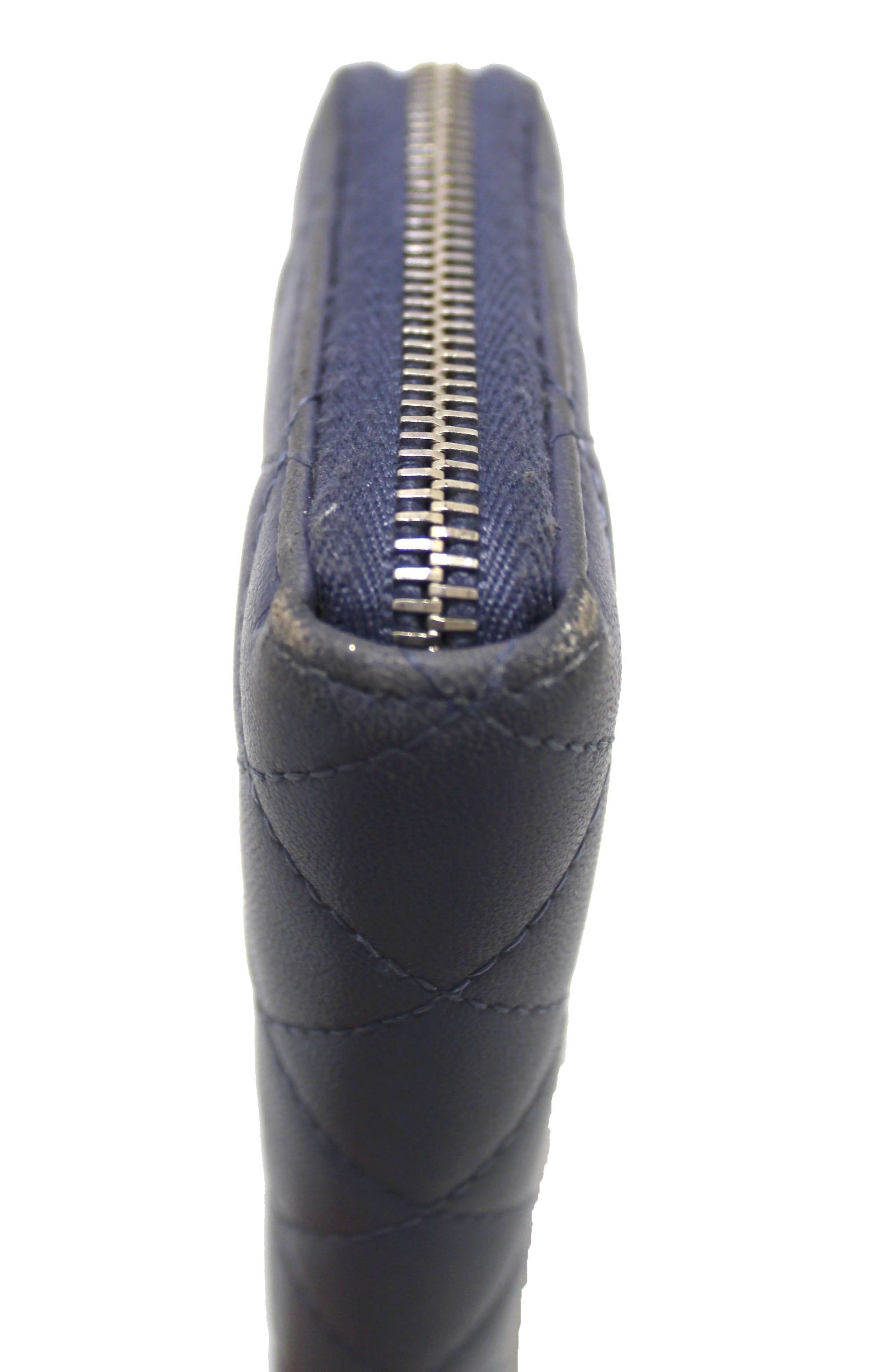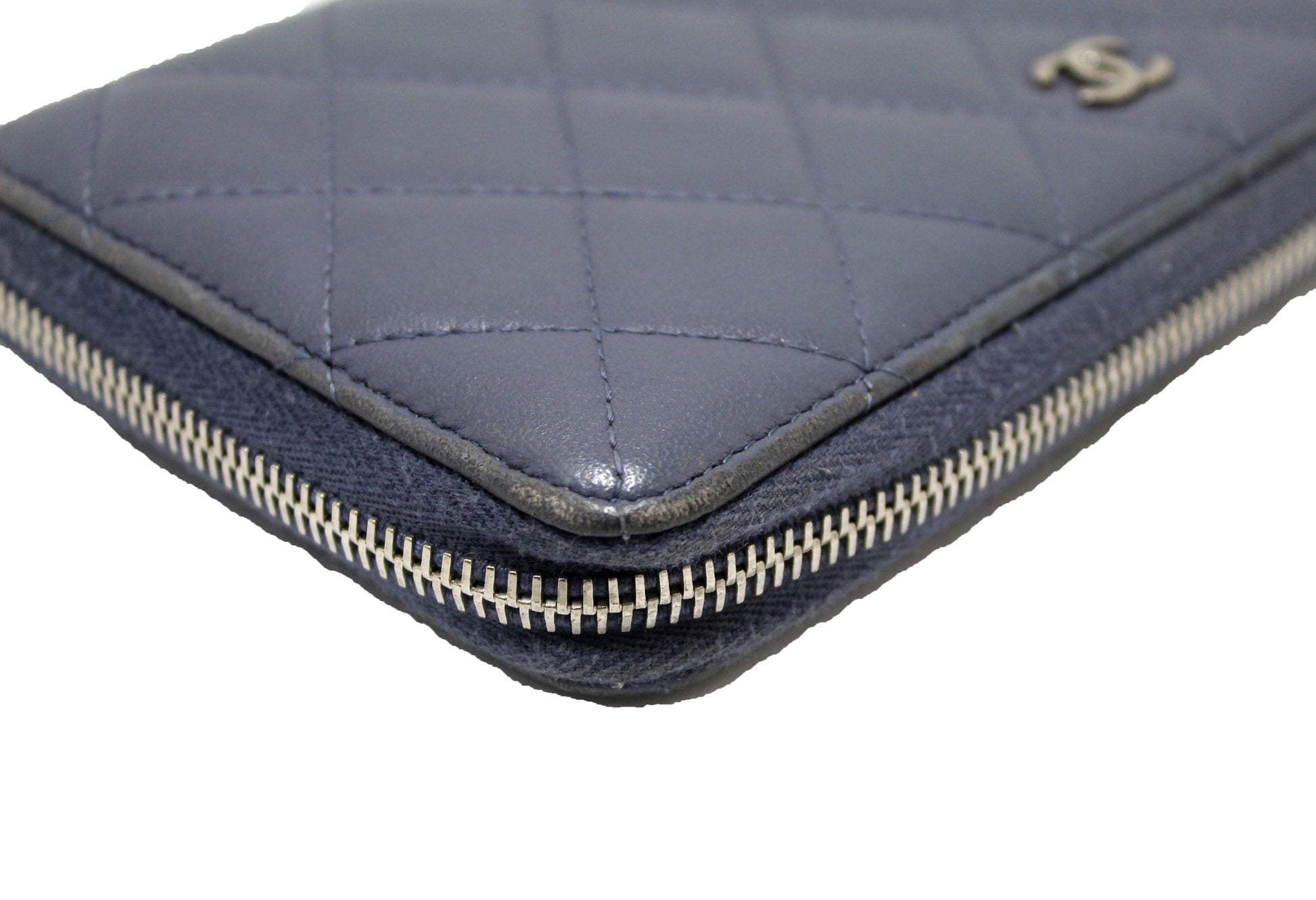 Chanel Blue Quilted Lambskin Leather Zippy Wallet