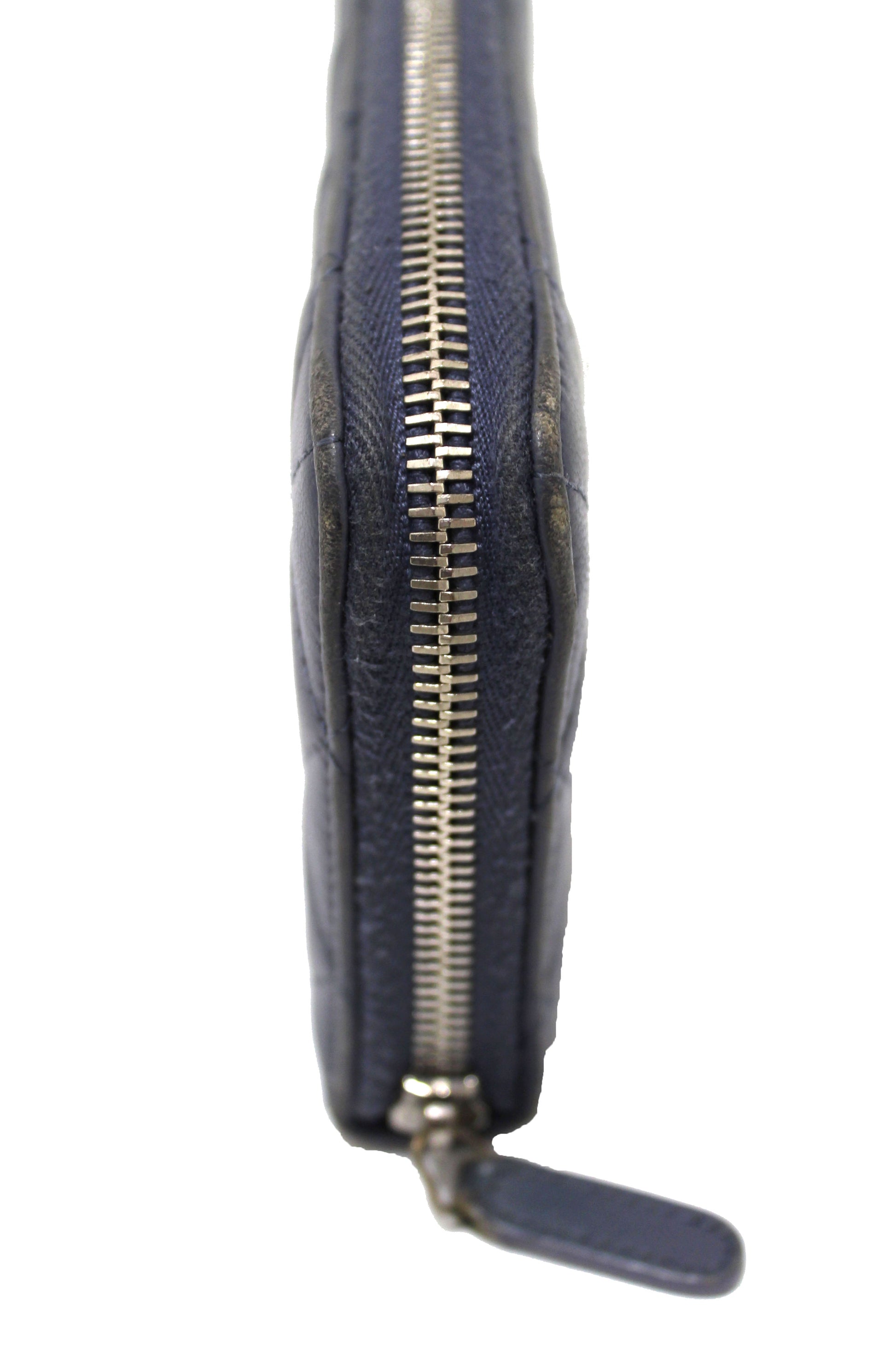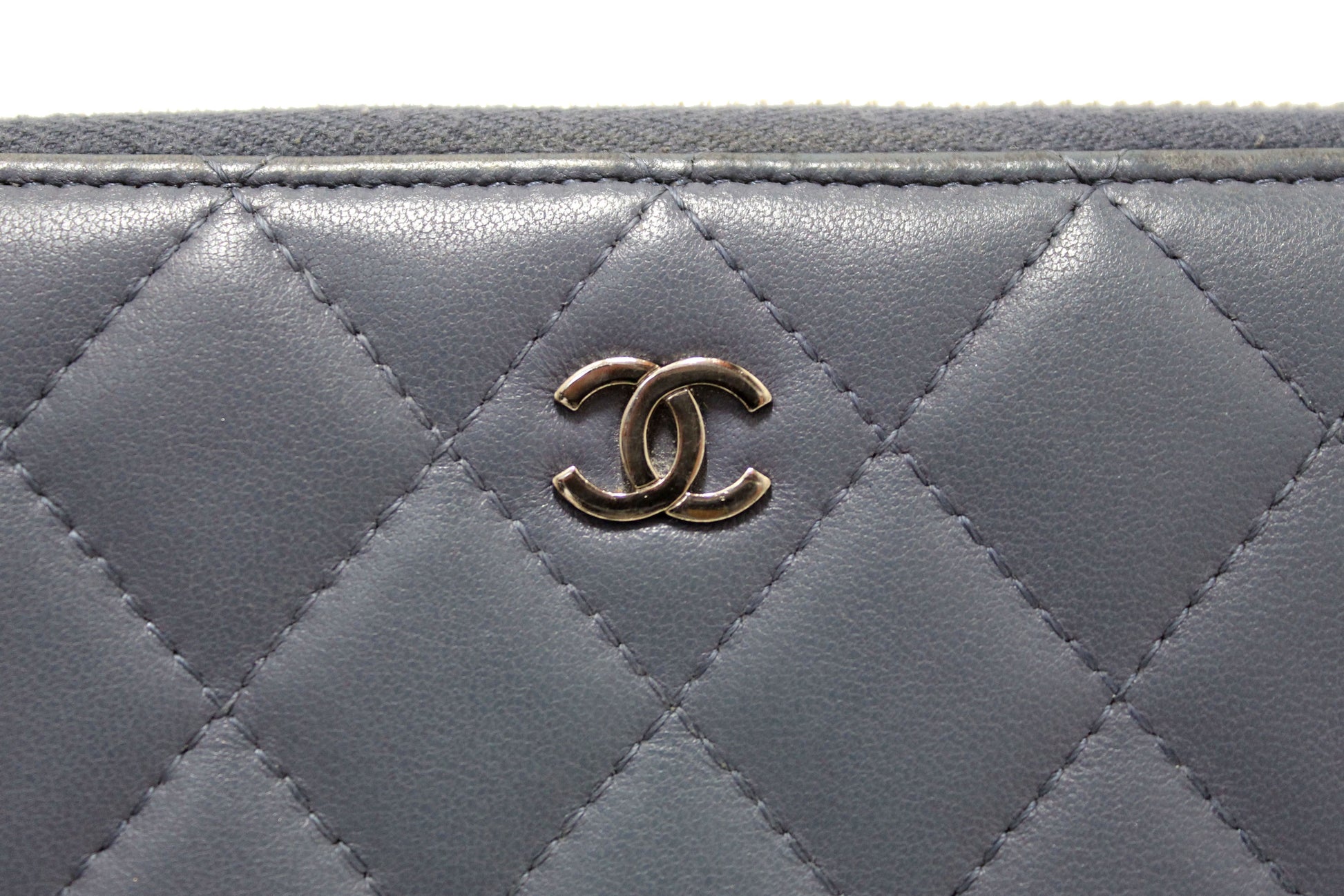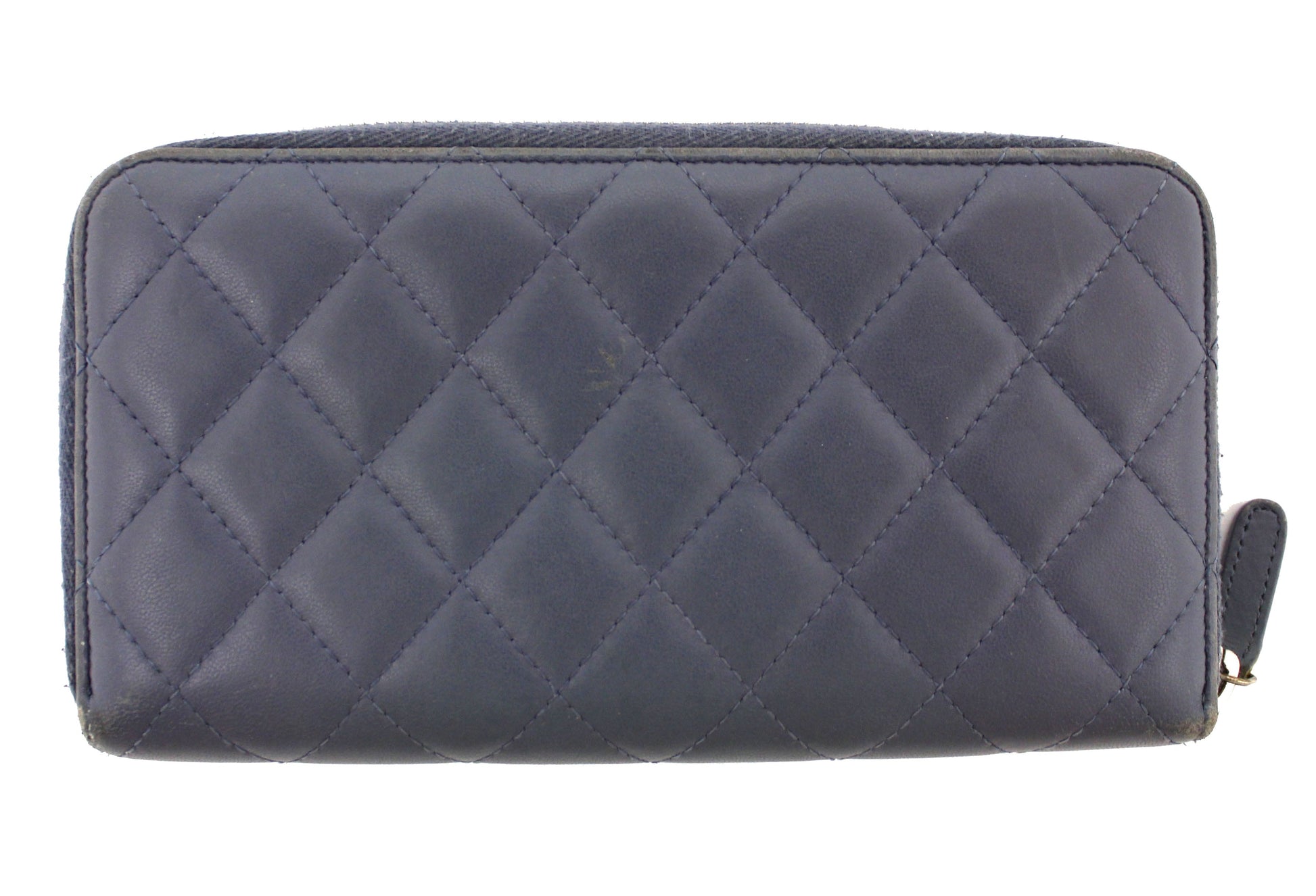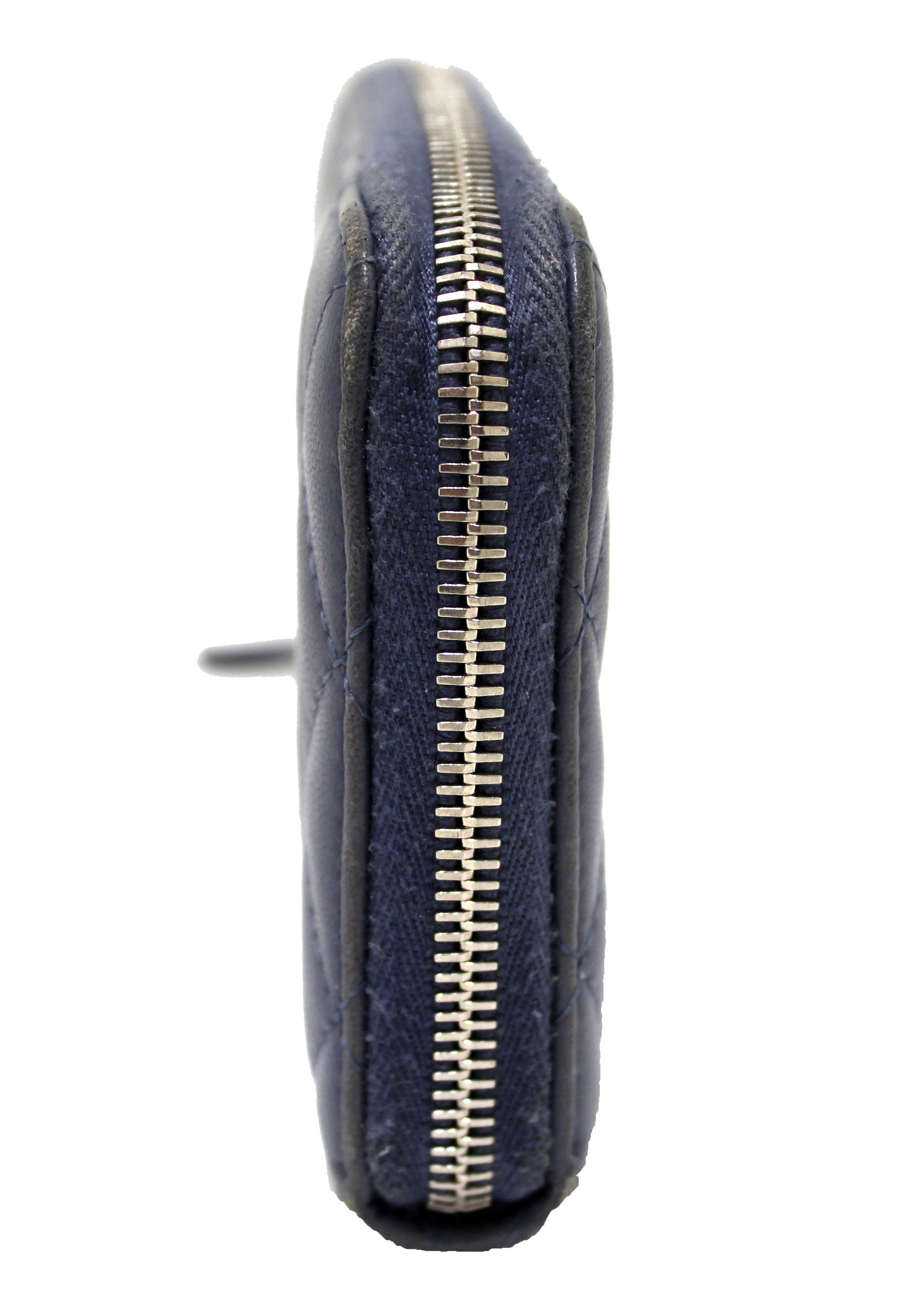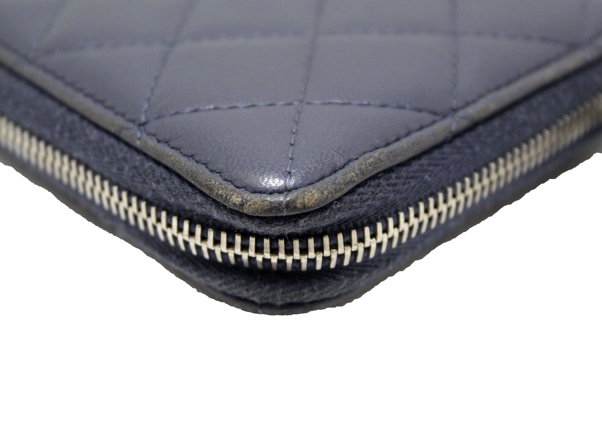 Chanel Blue Quilted Lambskin Leather Zippy Wallet