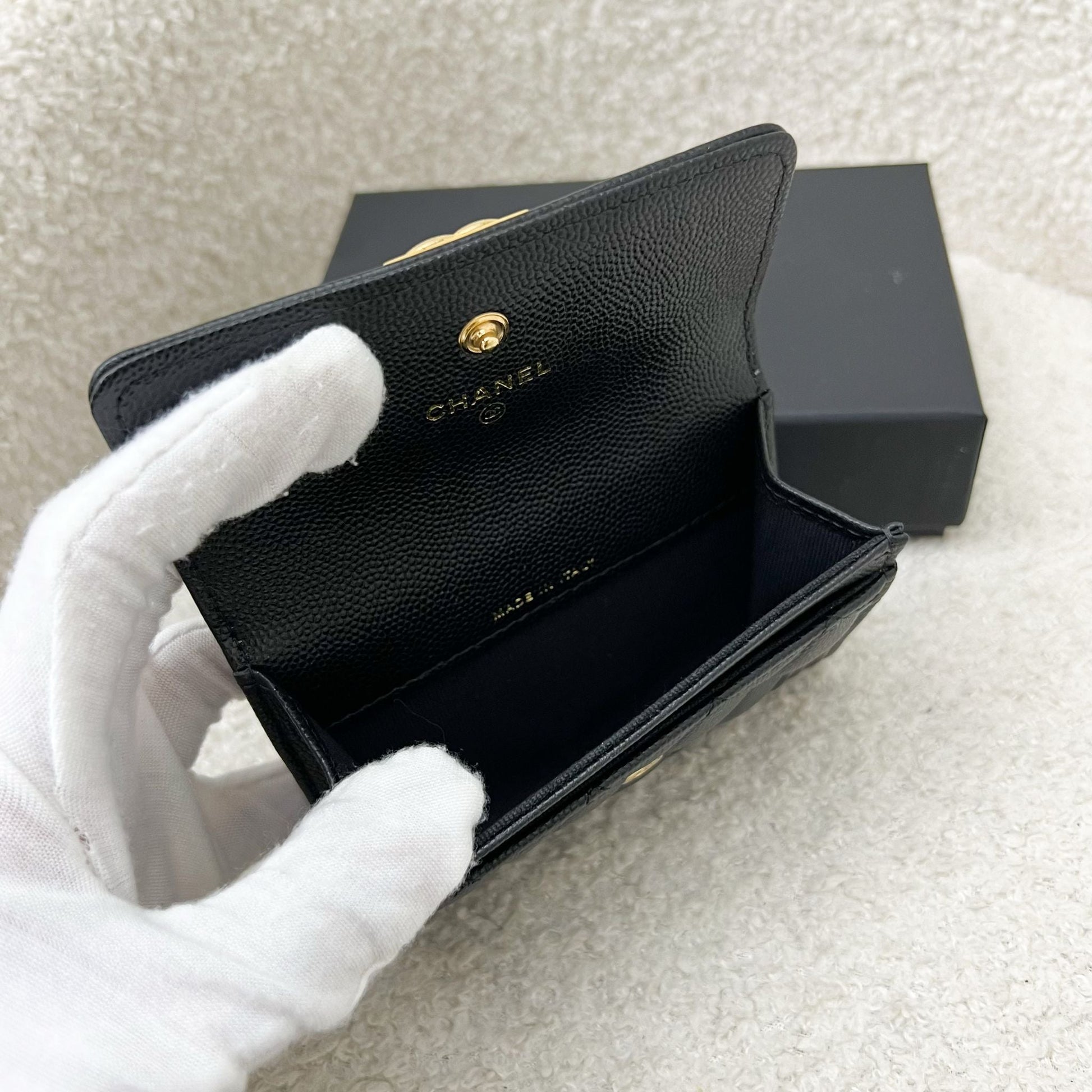 Chanel Boy Snap Card Holder in Black Caviar and LGHW