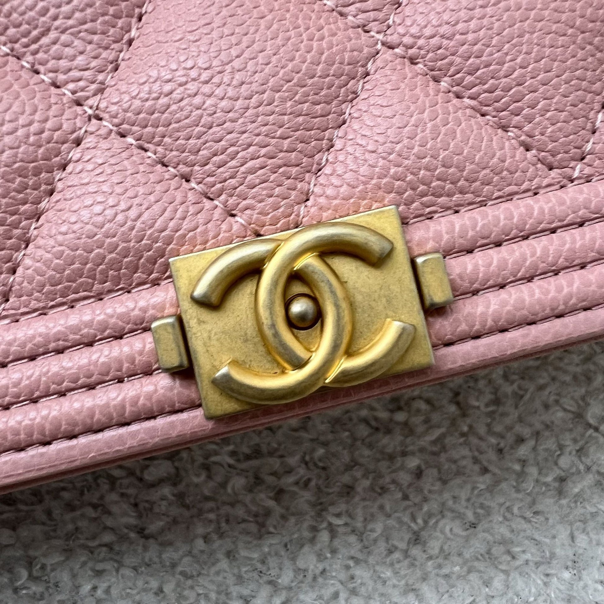 Chanel Boy Wallet on Chain WOC in Light Pink Caviar and AGHW