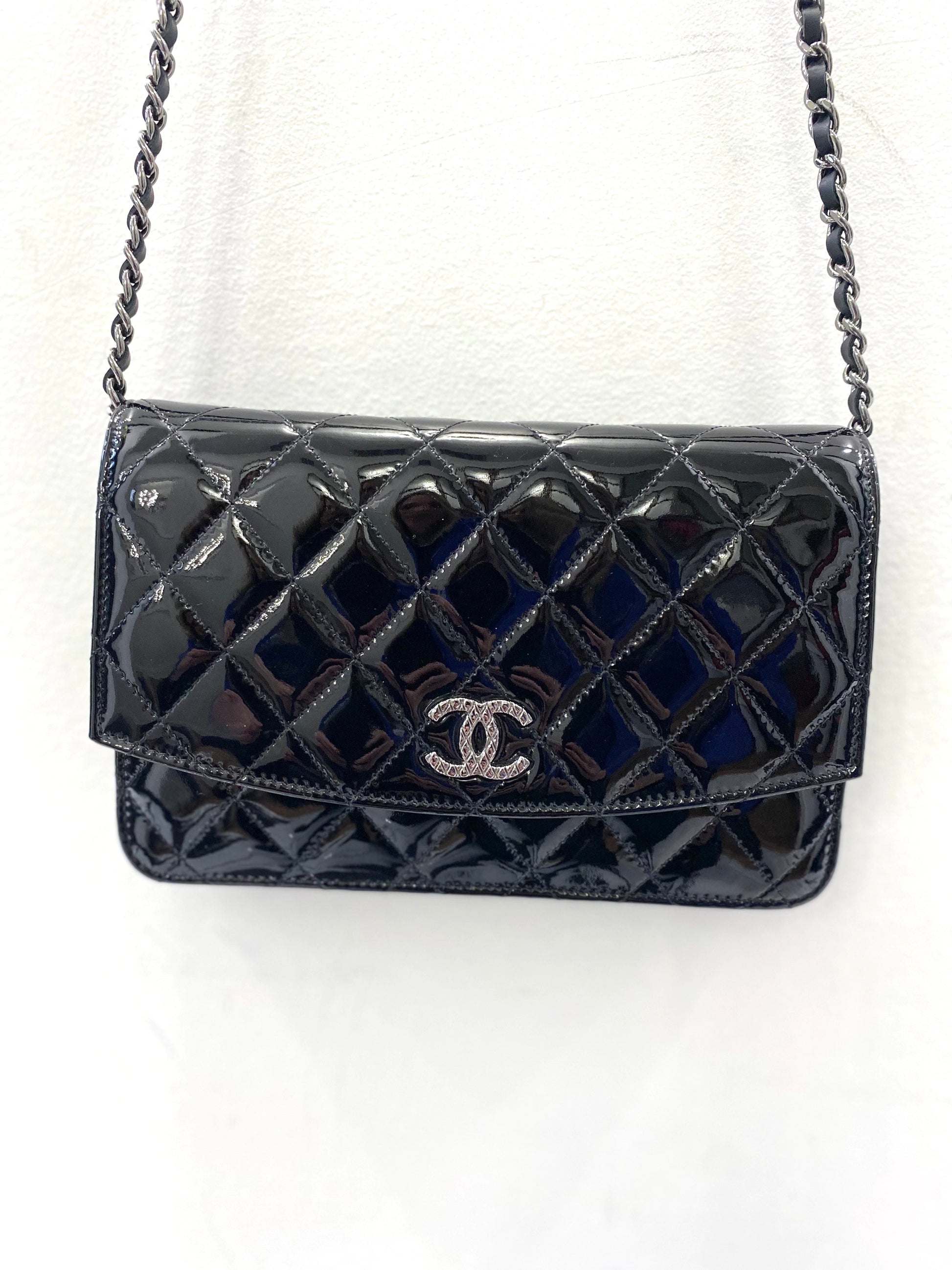 CHANEL BRILLIANT CC QUILTED PATENT WALLET ON CHAIN