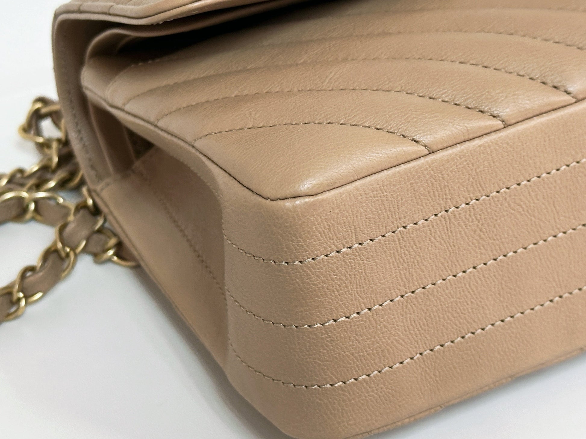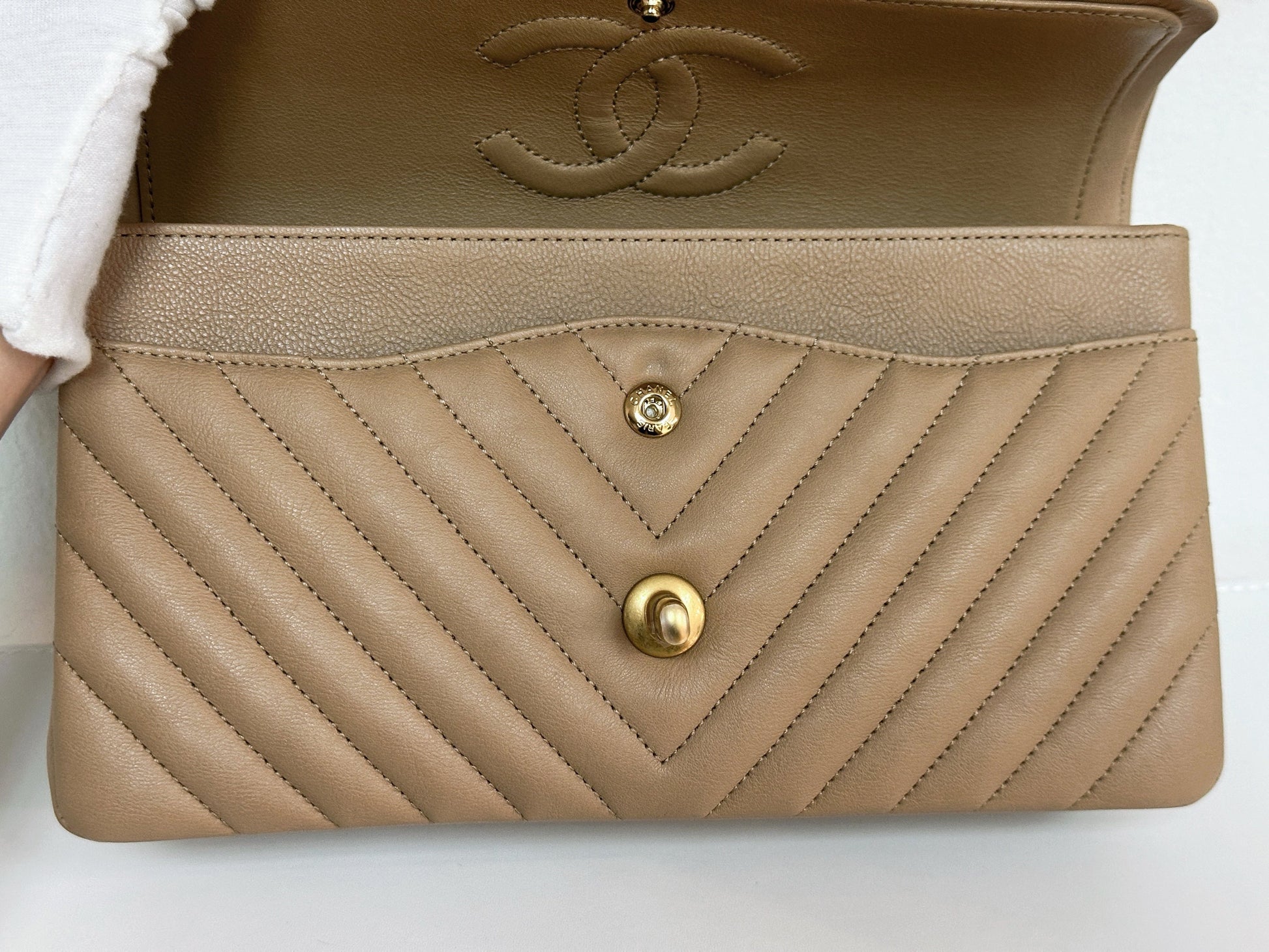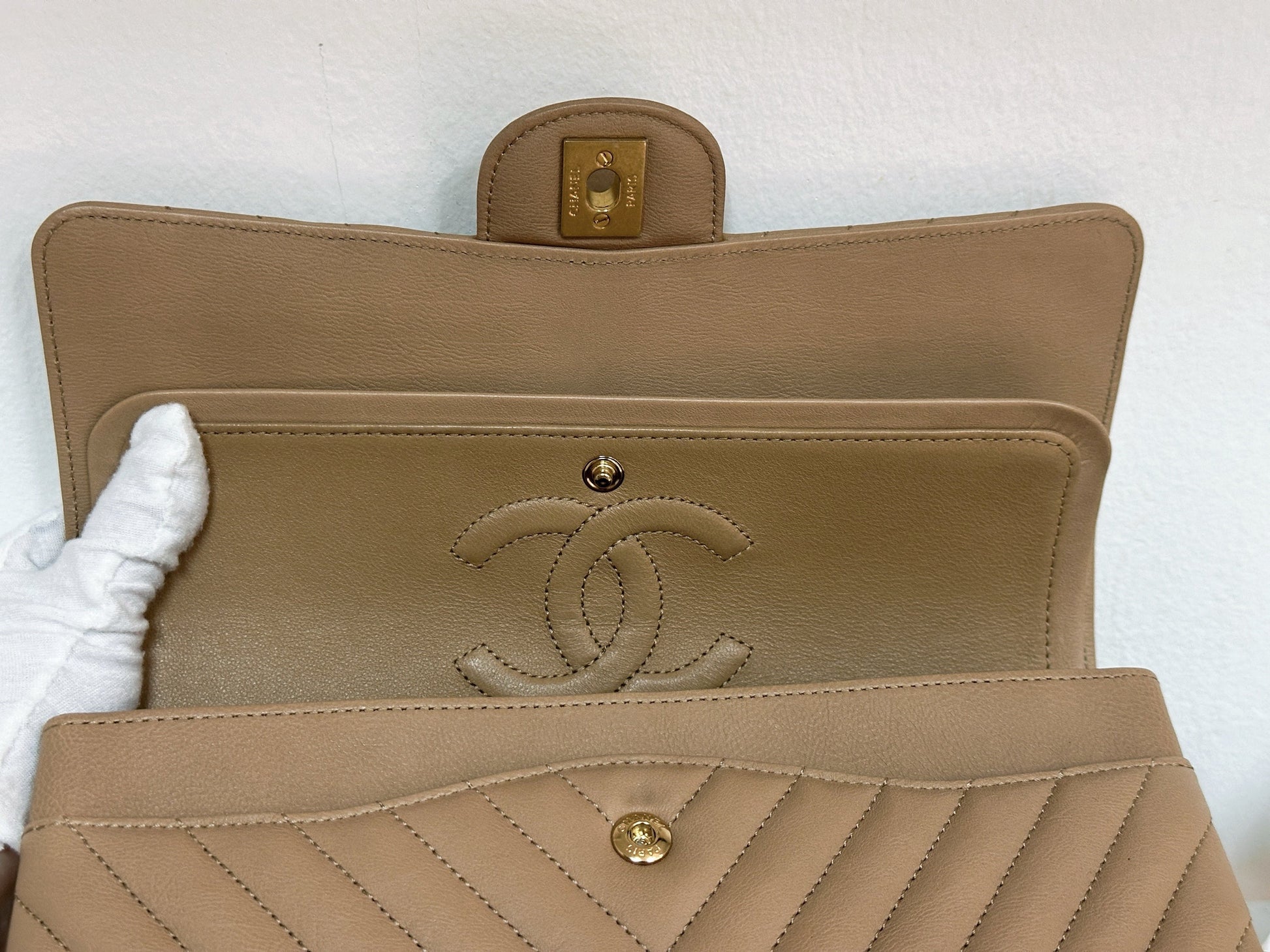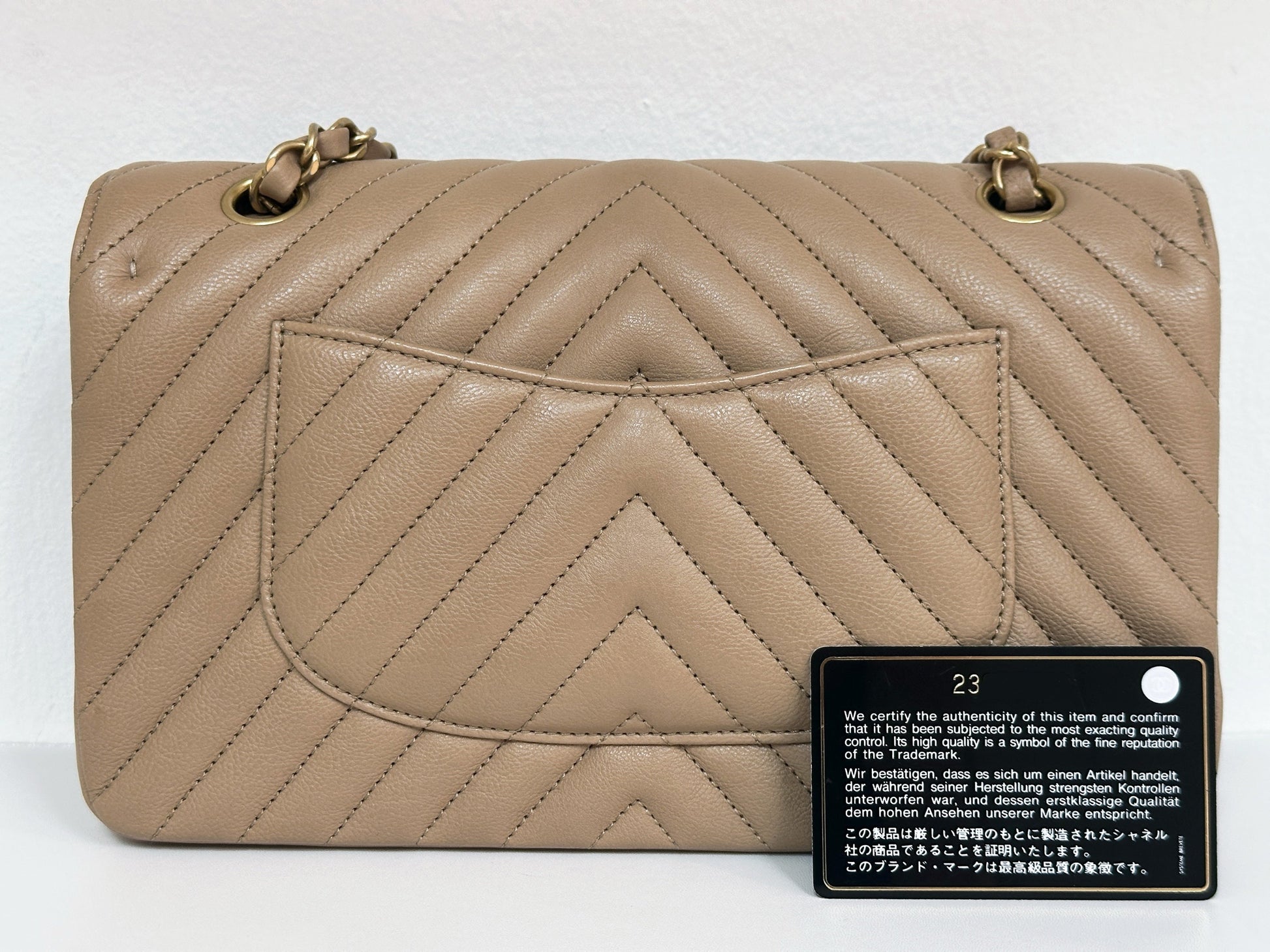 Chanel Calfskin Chevron Quilted Medium Double Flap Beige 2383 holo card