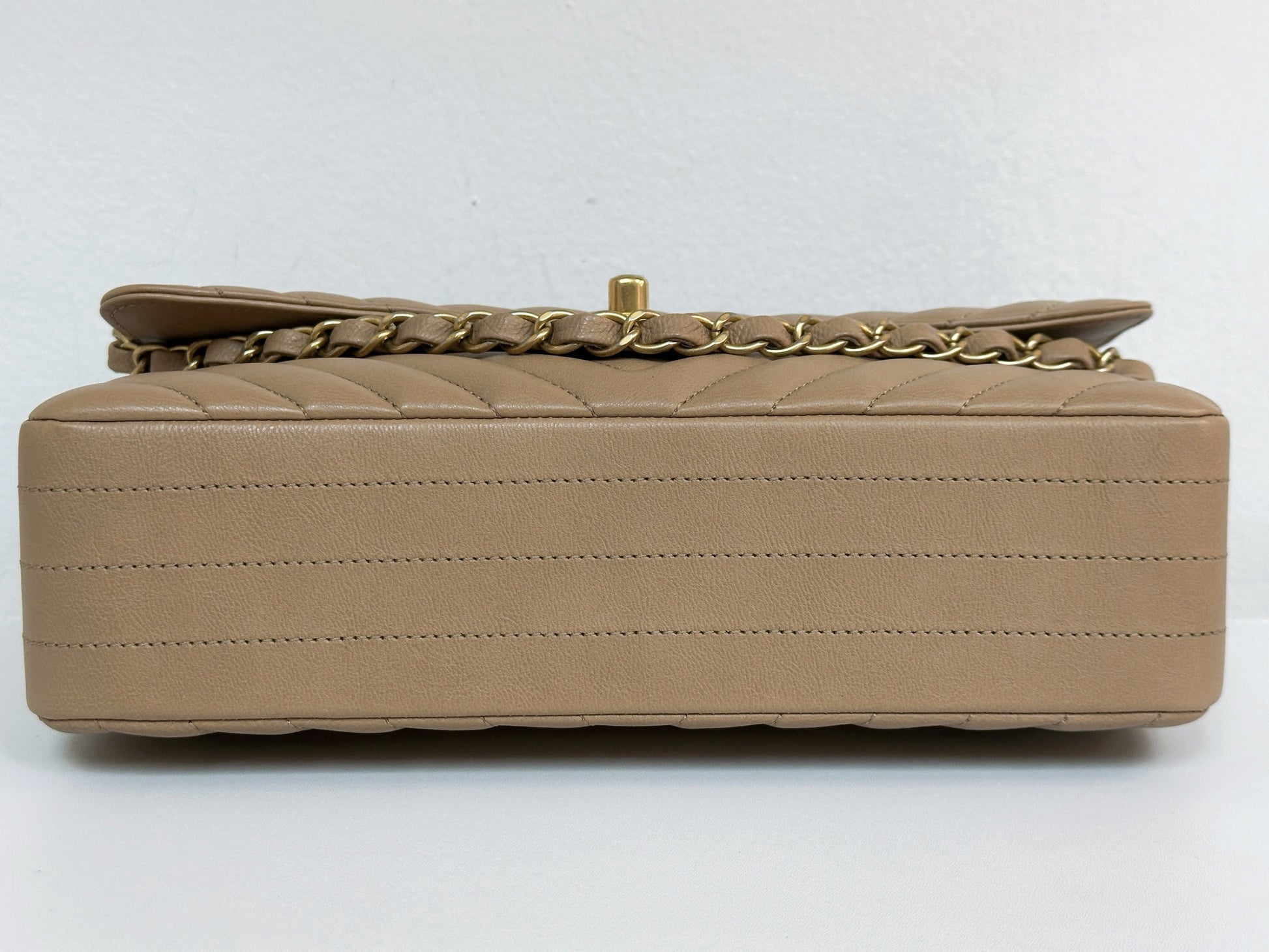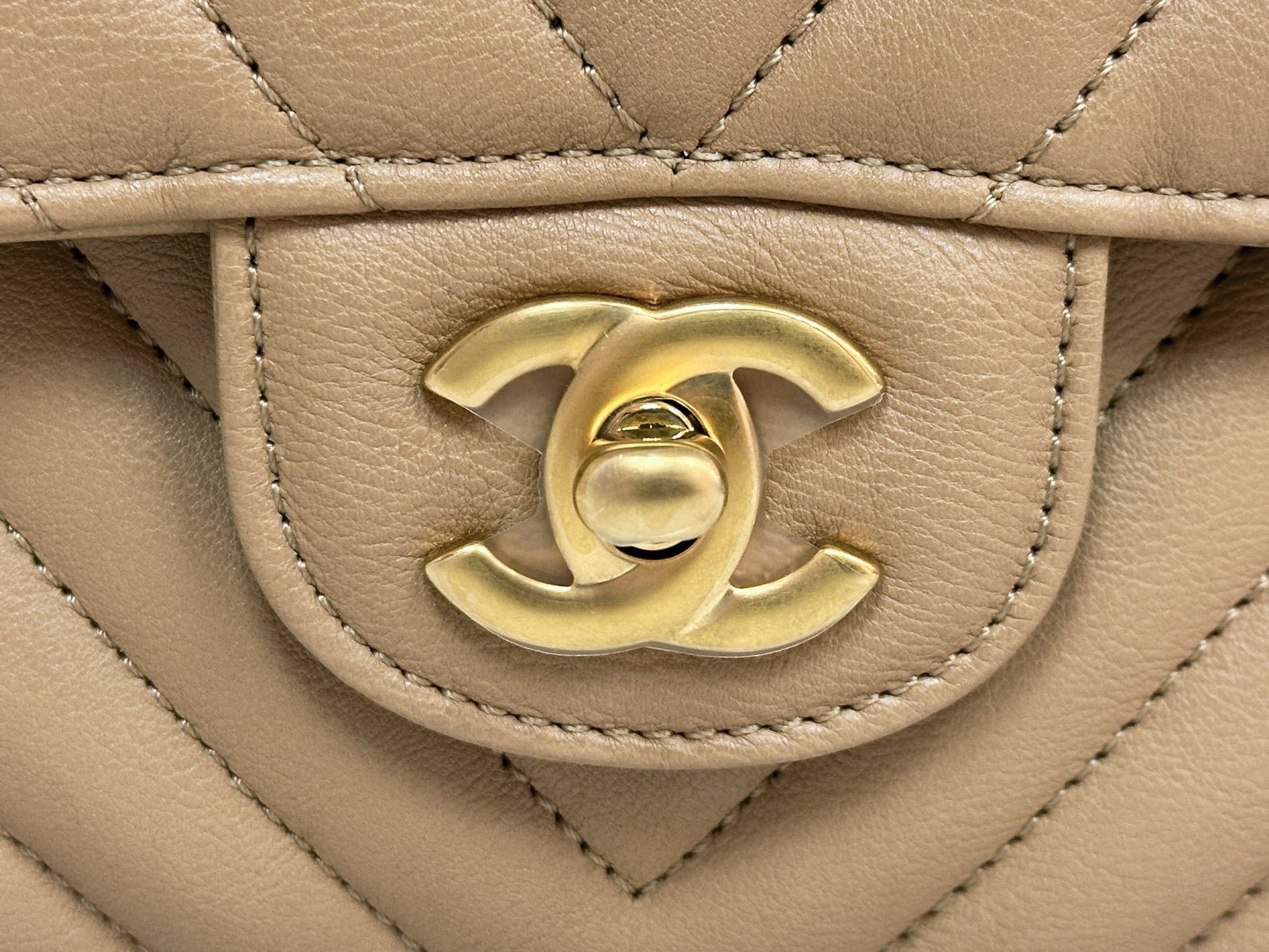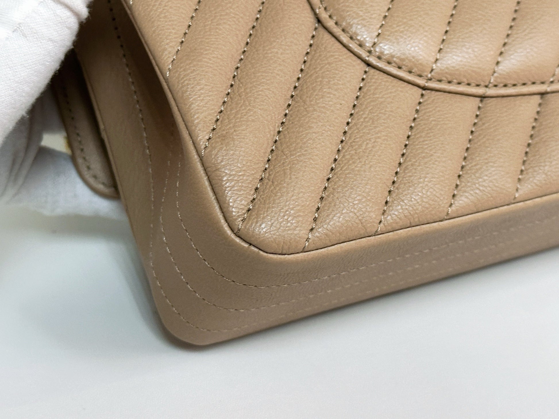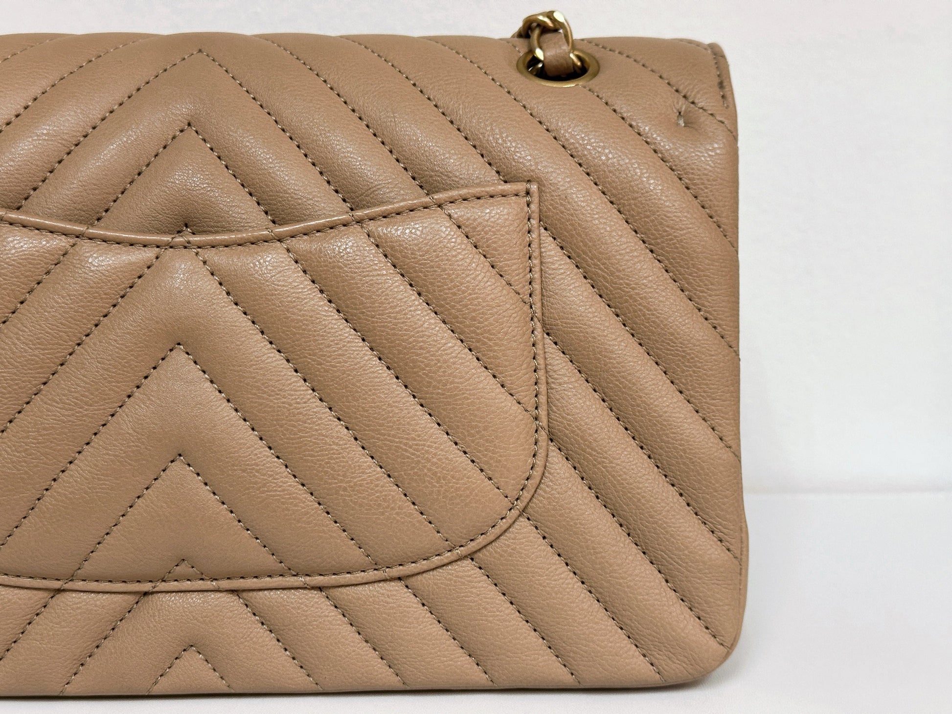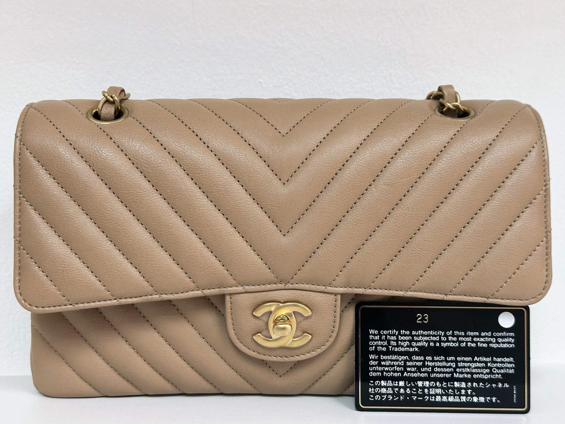 Chanel Calfskin Chevron Quilted Medium Double Flap Beige 2383 holo card