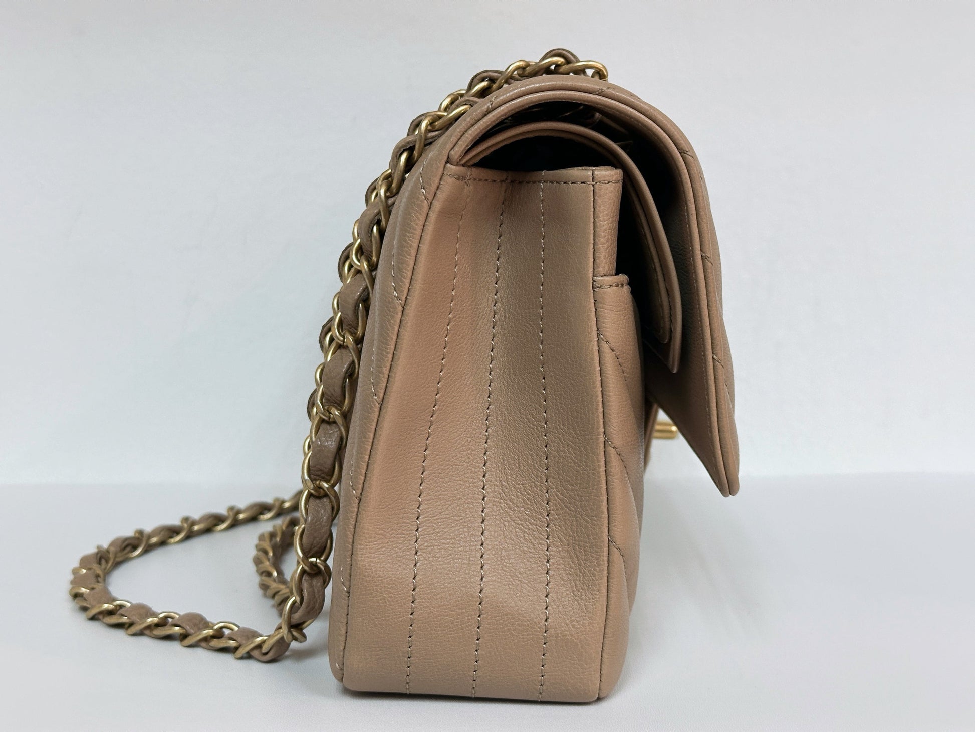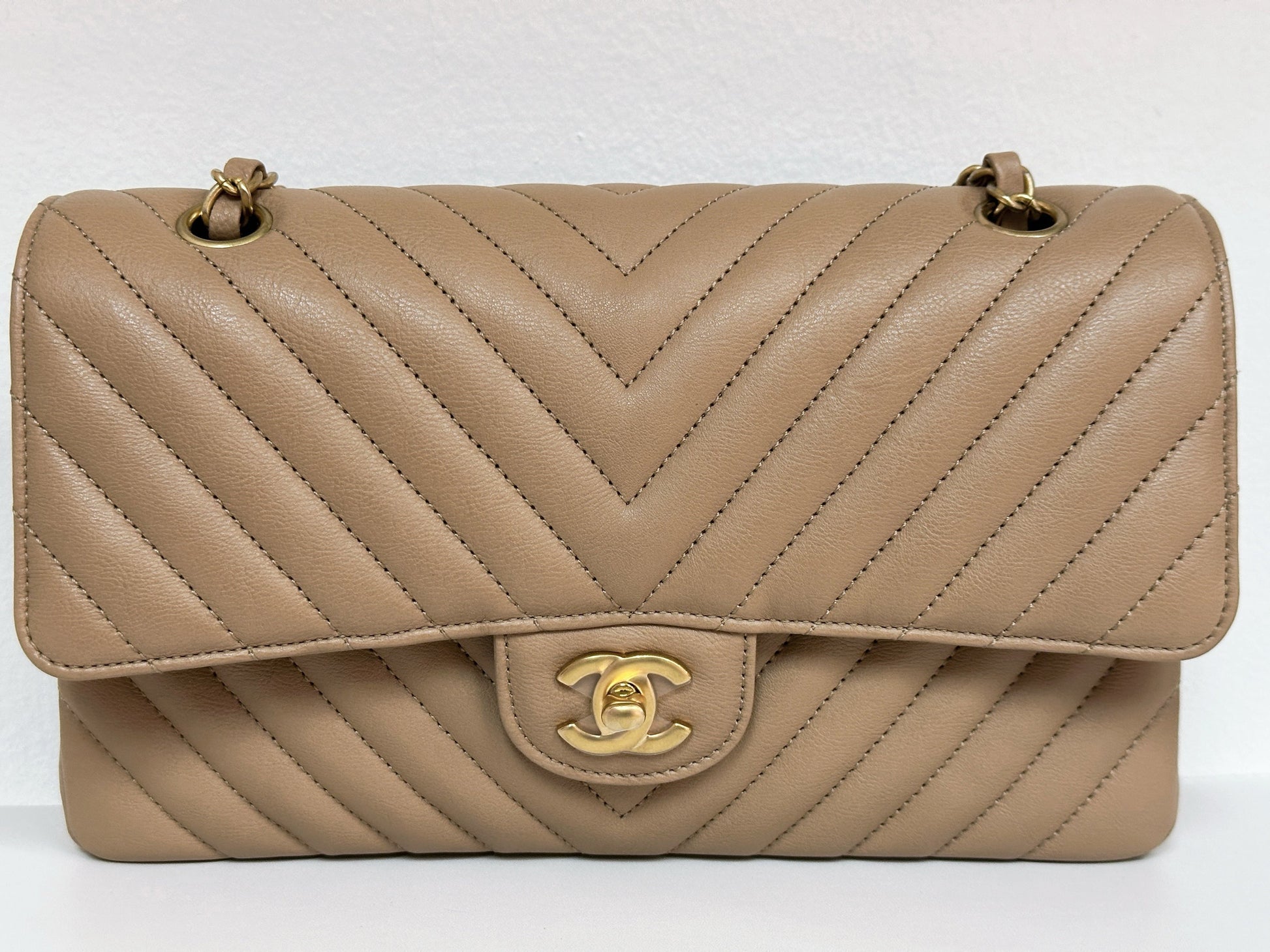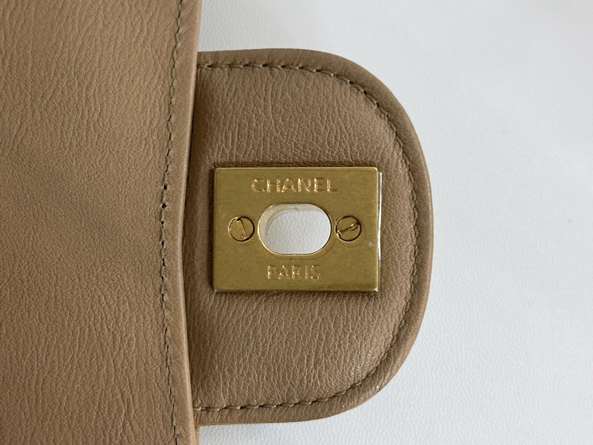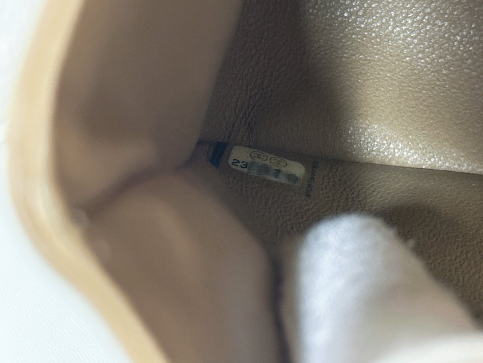 Chanel Calfskin Chevron Quilted Medium Double Flap Beige 2383 holo card