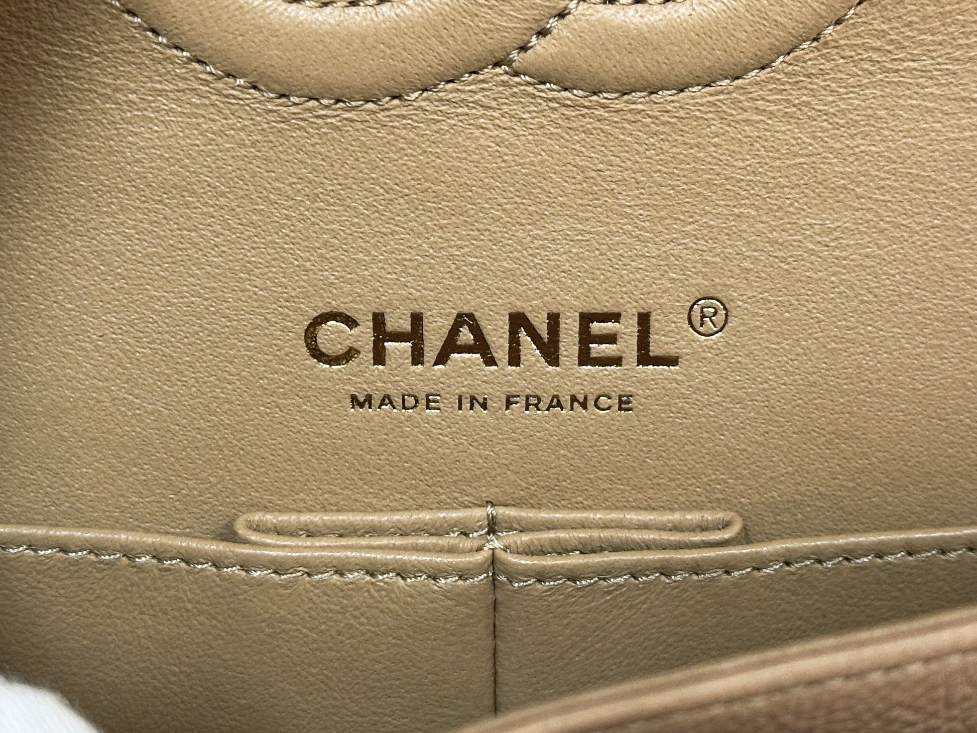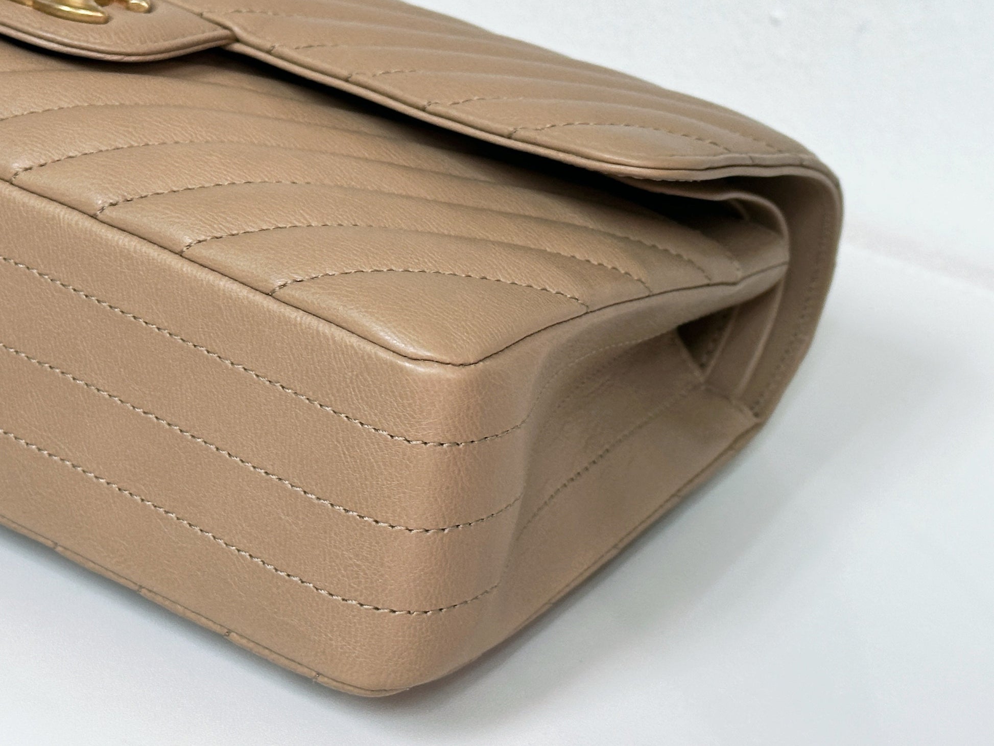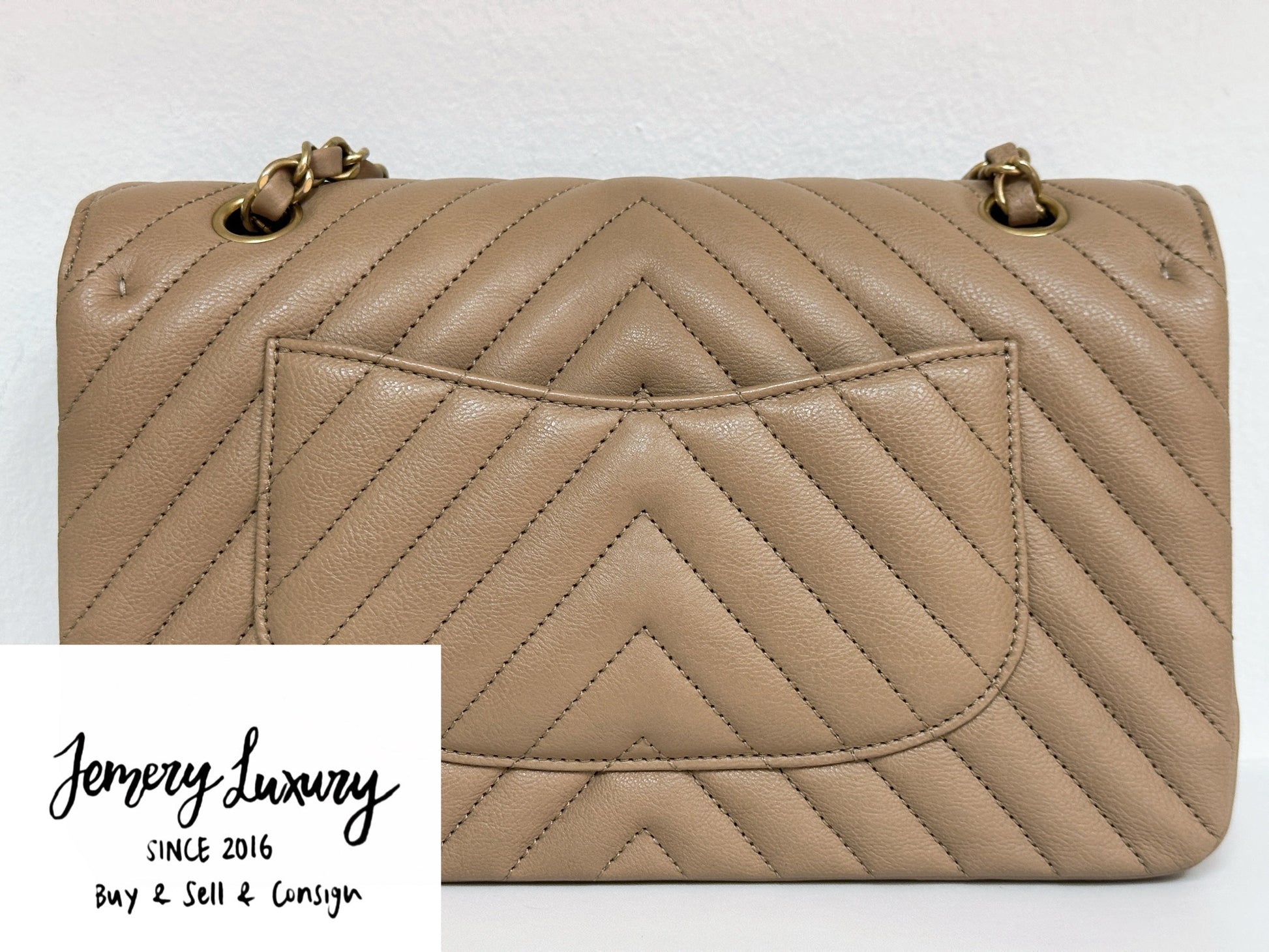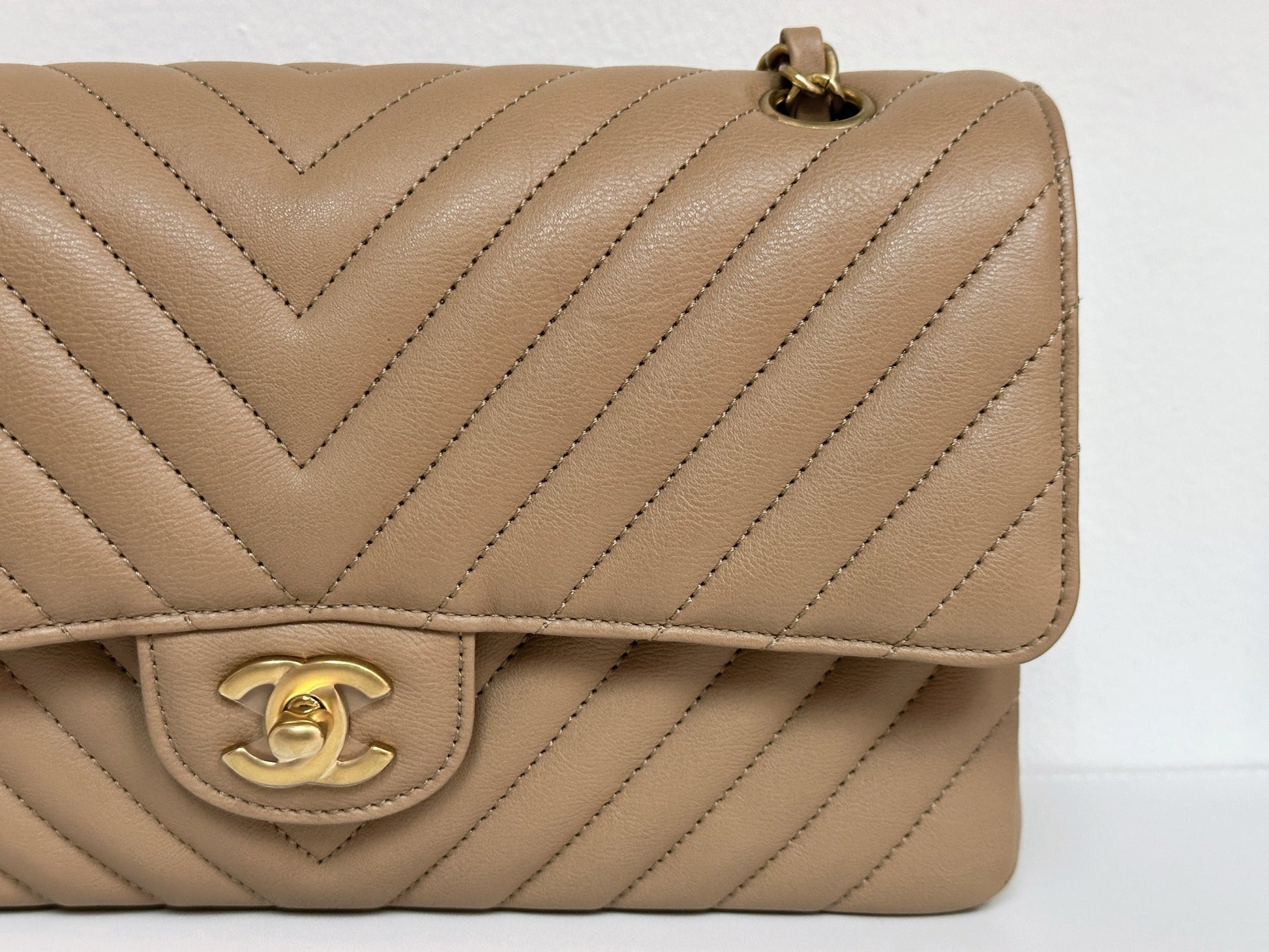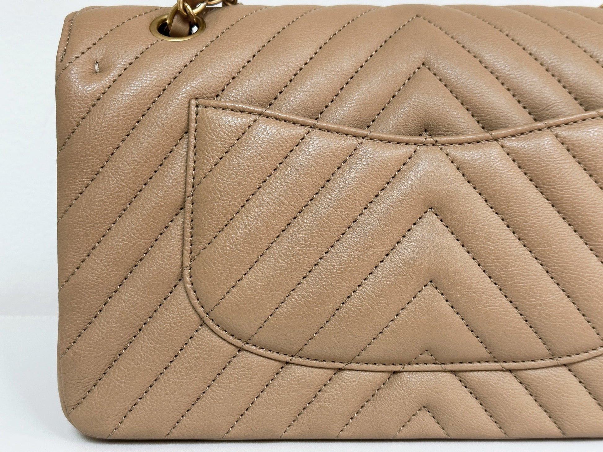 Chanel Calfskin Chevron Quilted Medium Double Flap Beige 2383 holo card