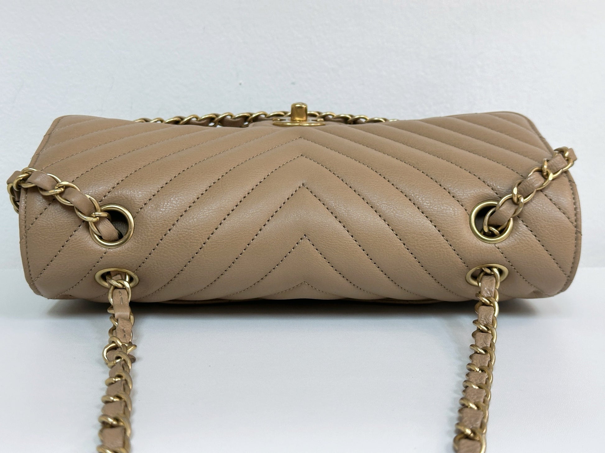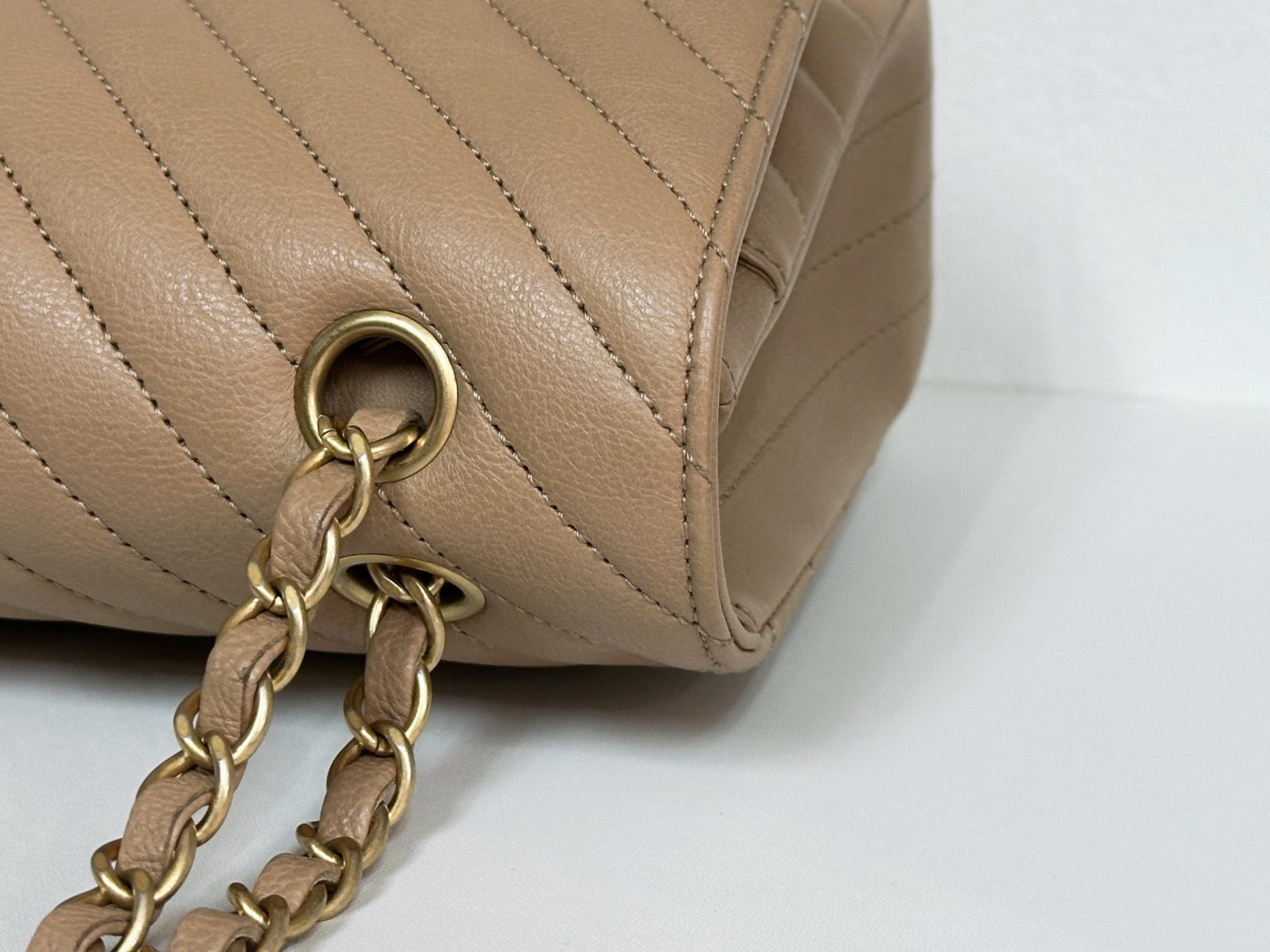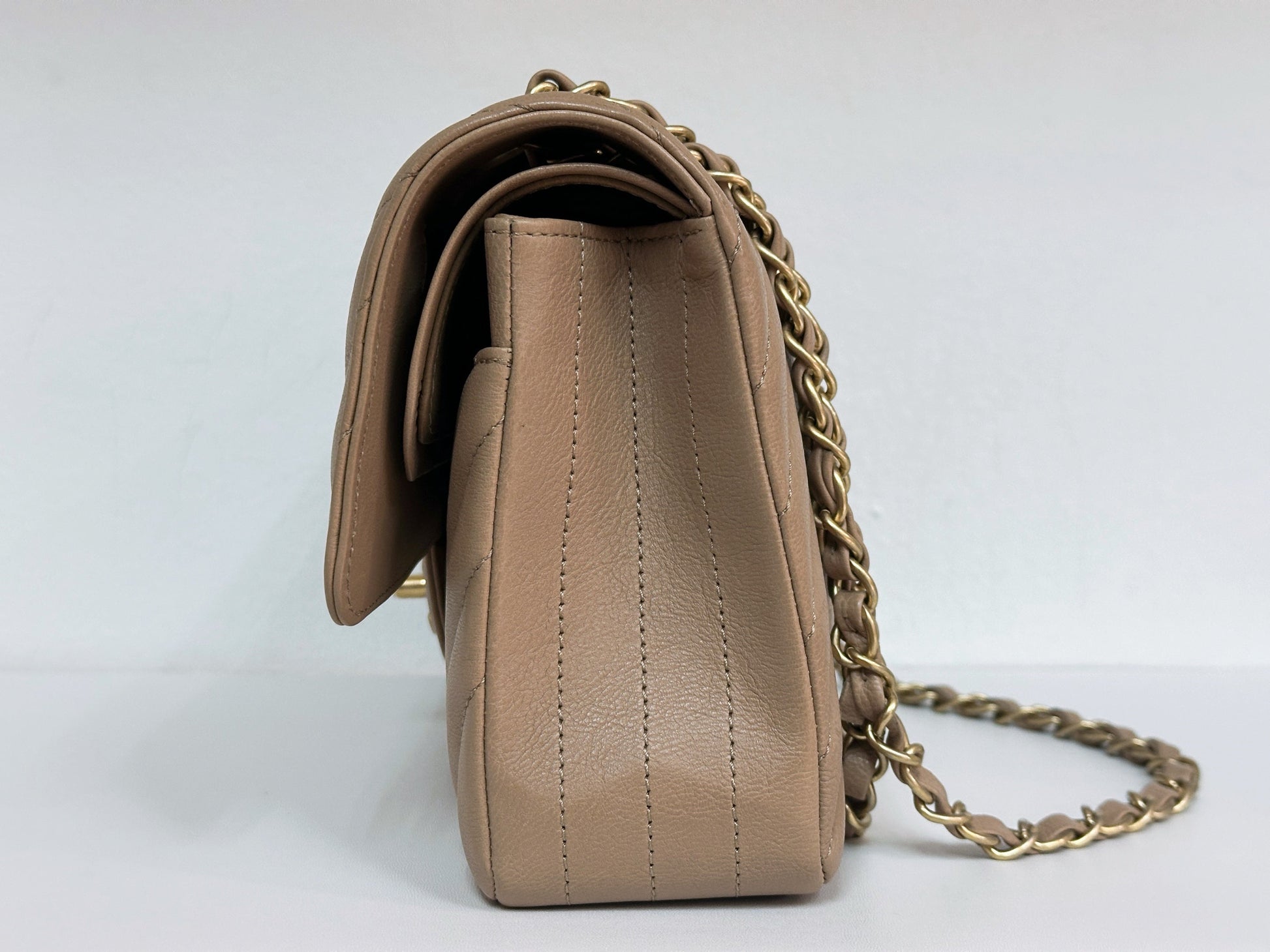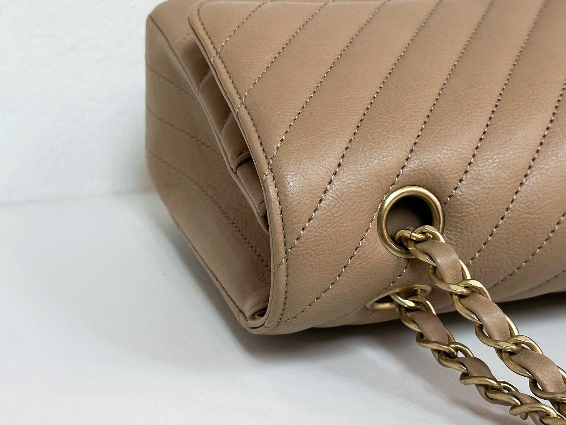 Chanel Calfskin Chevron Quilted Medium Double Flap Beige 2383 holo card