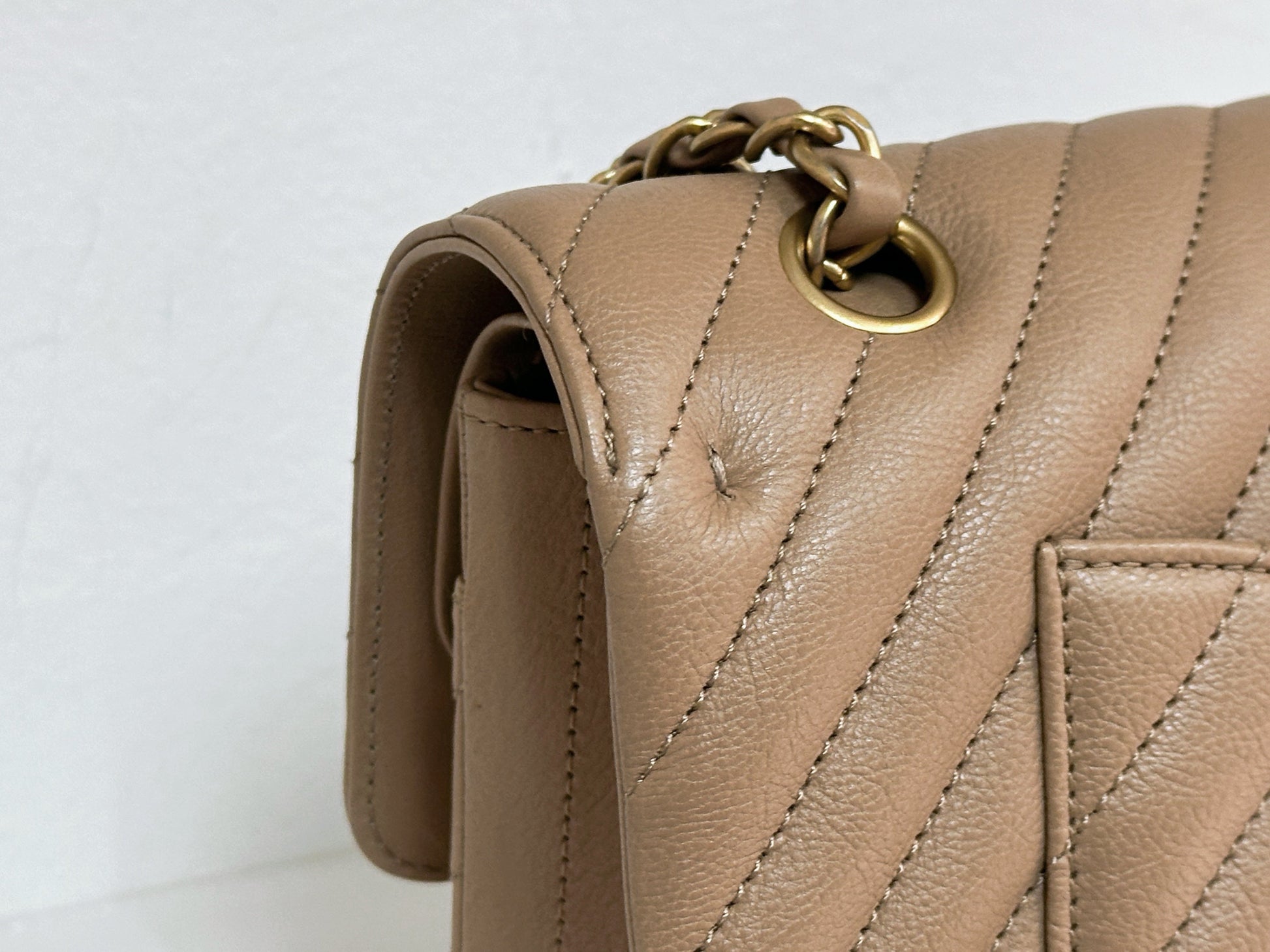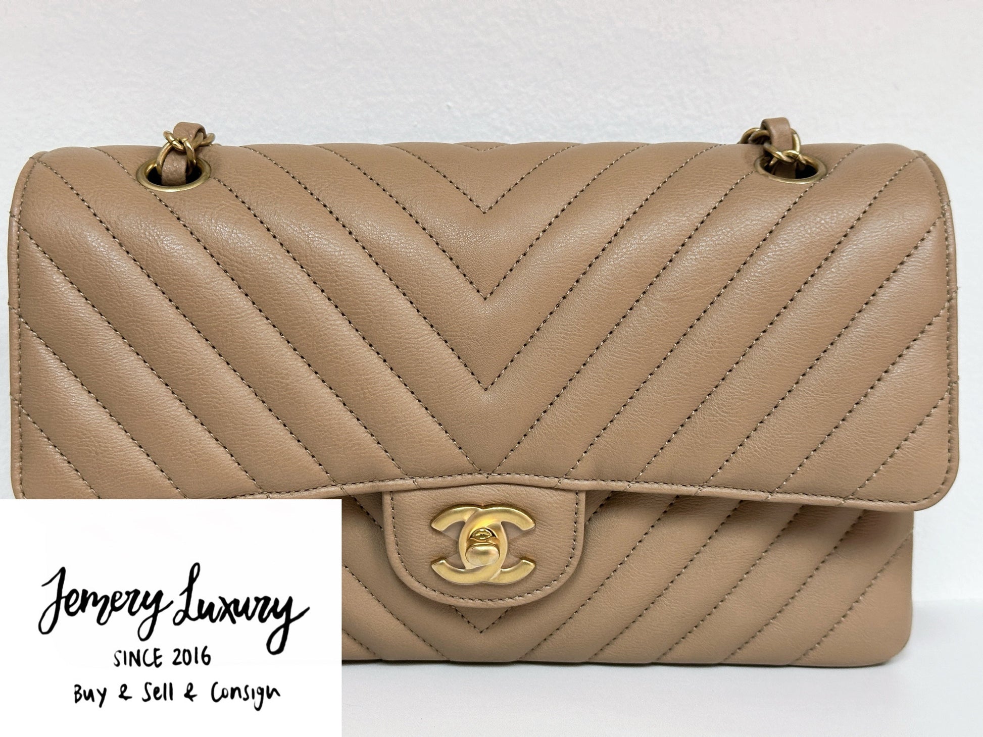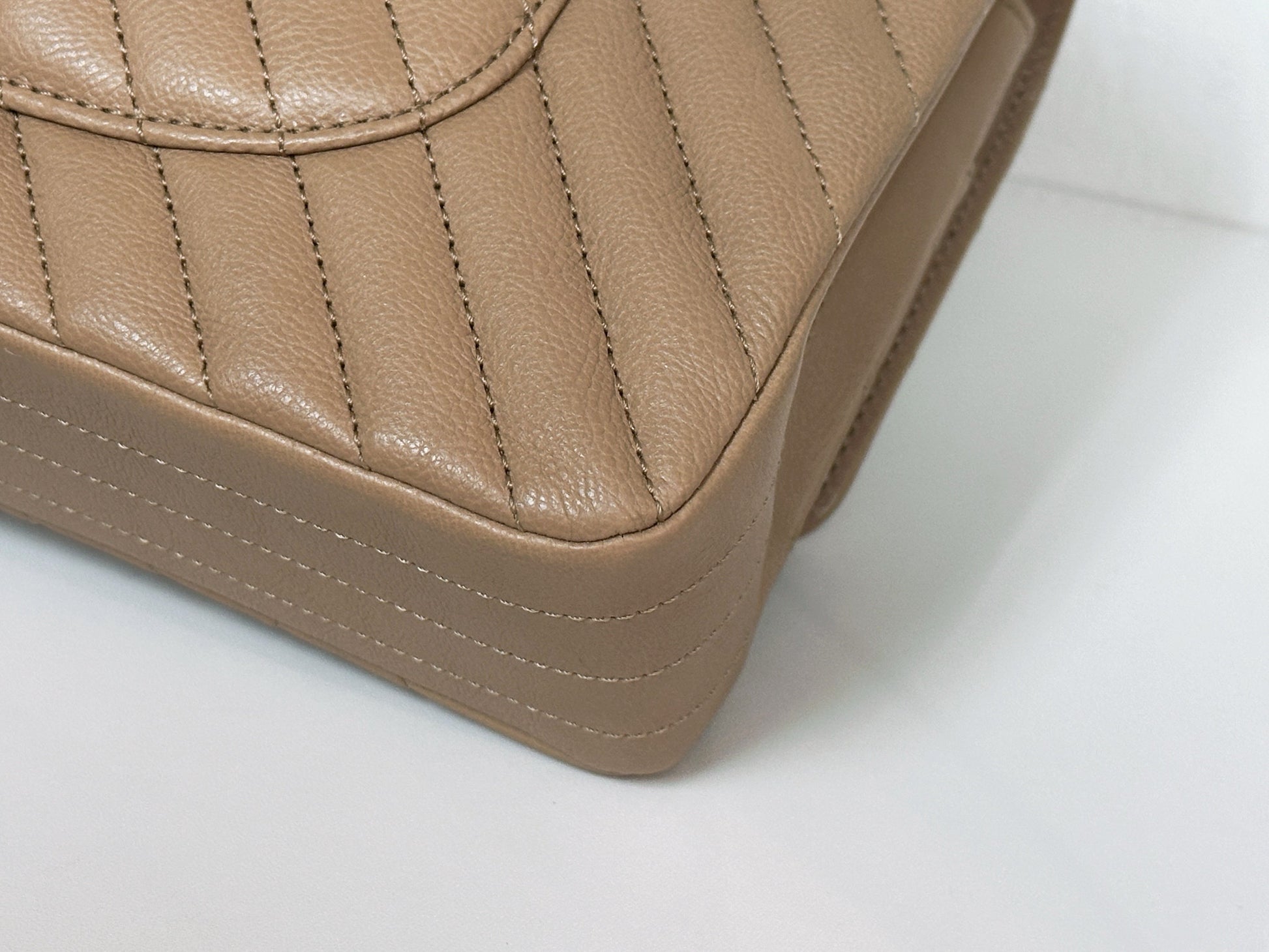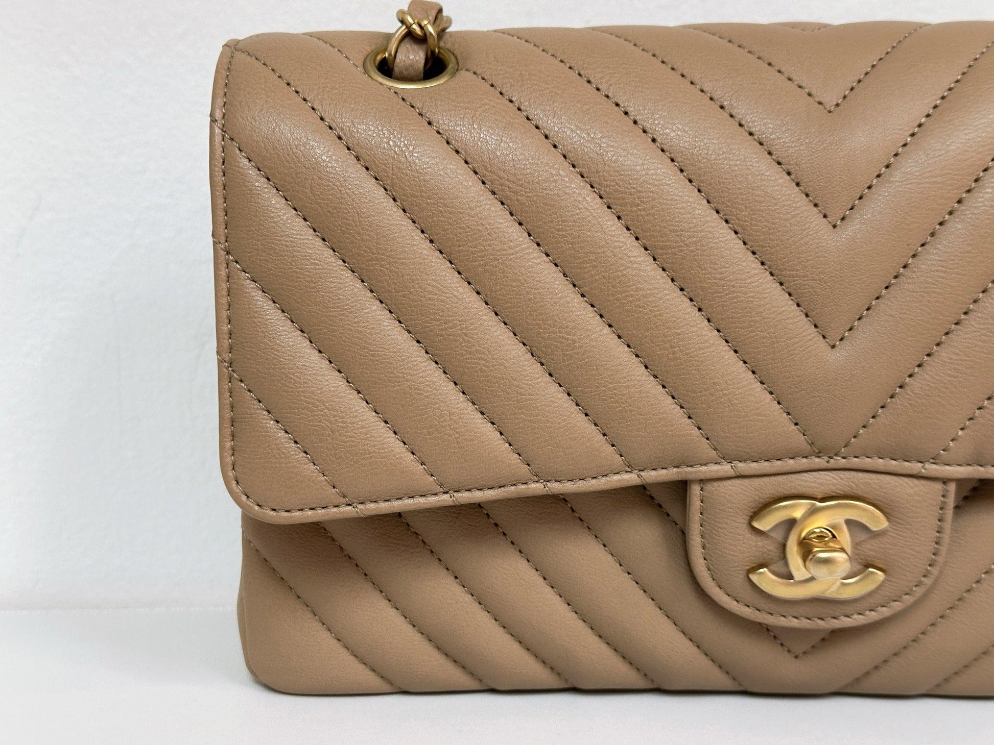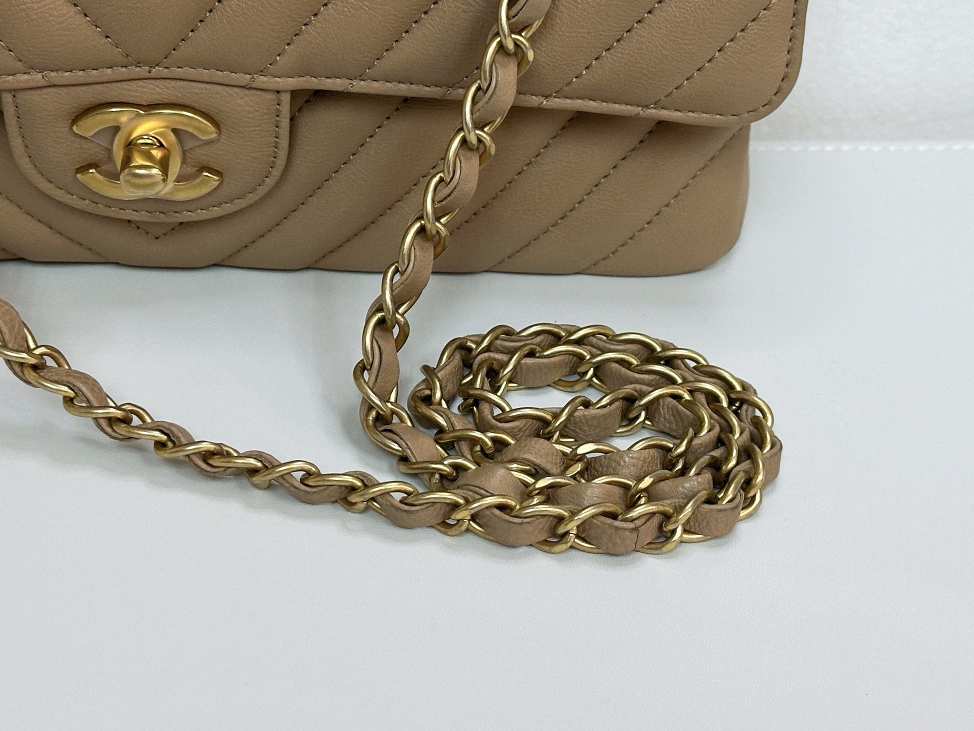 Chanel Calfskin Chevron Quilted Medium Double Flap Beige 2383 holo card